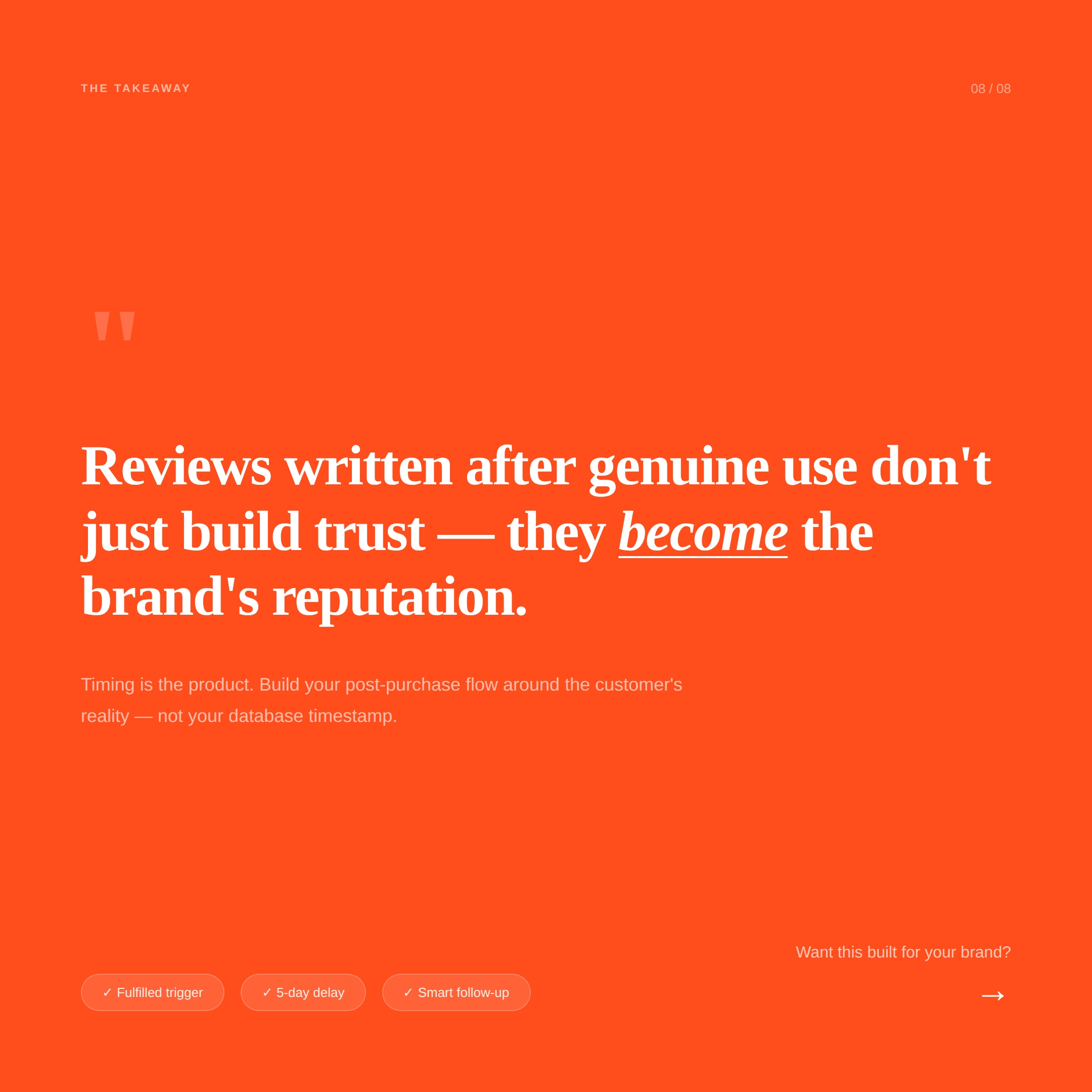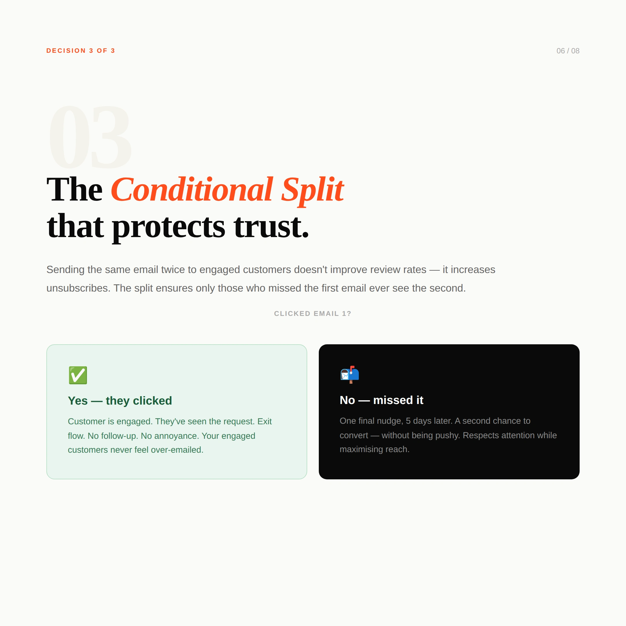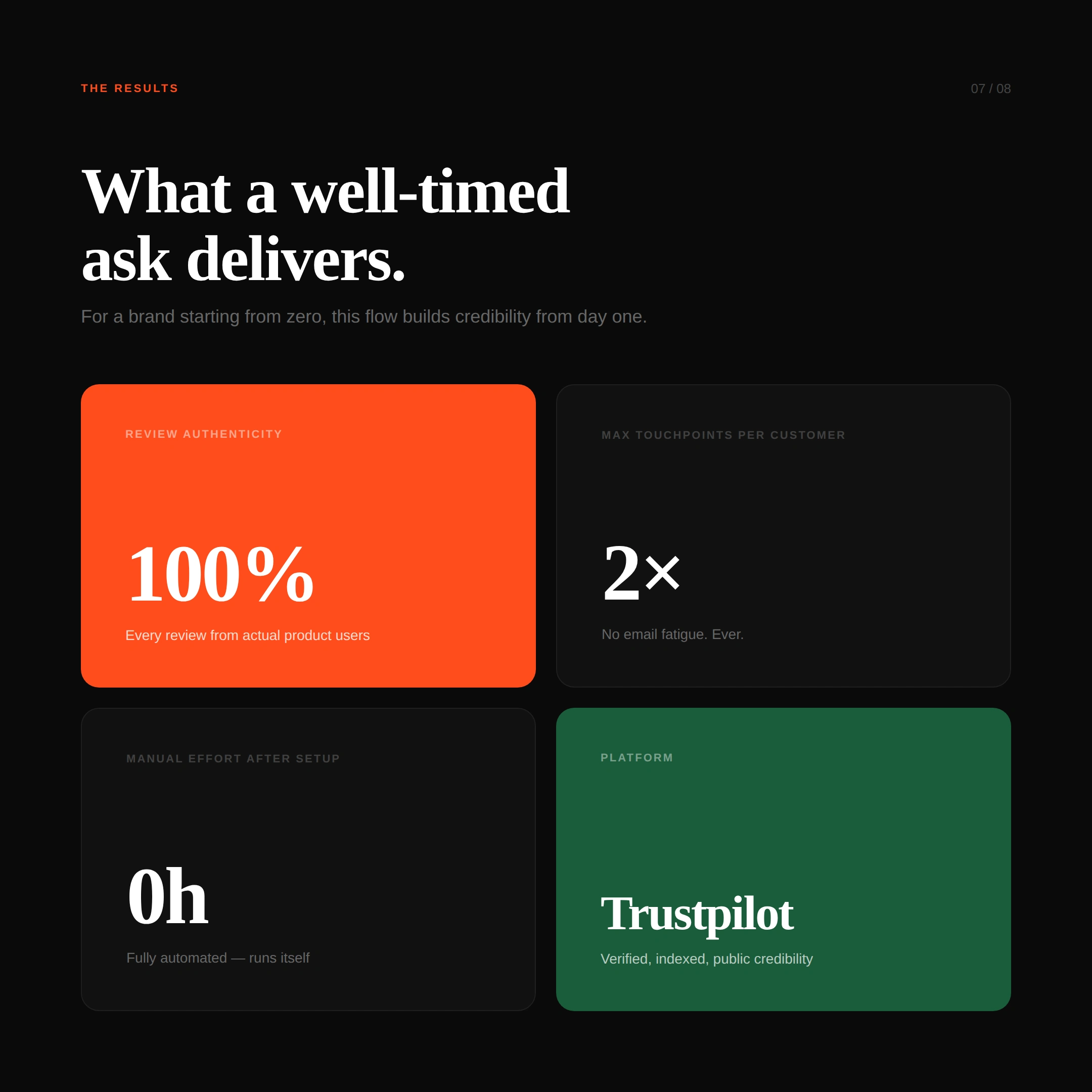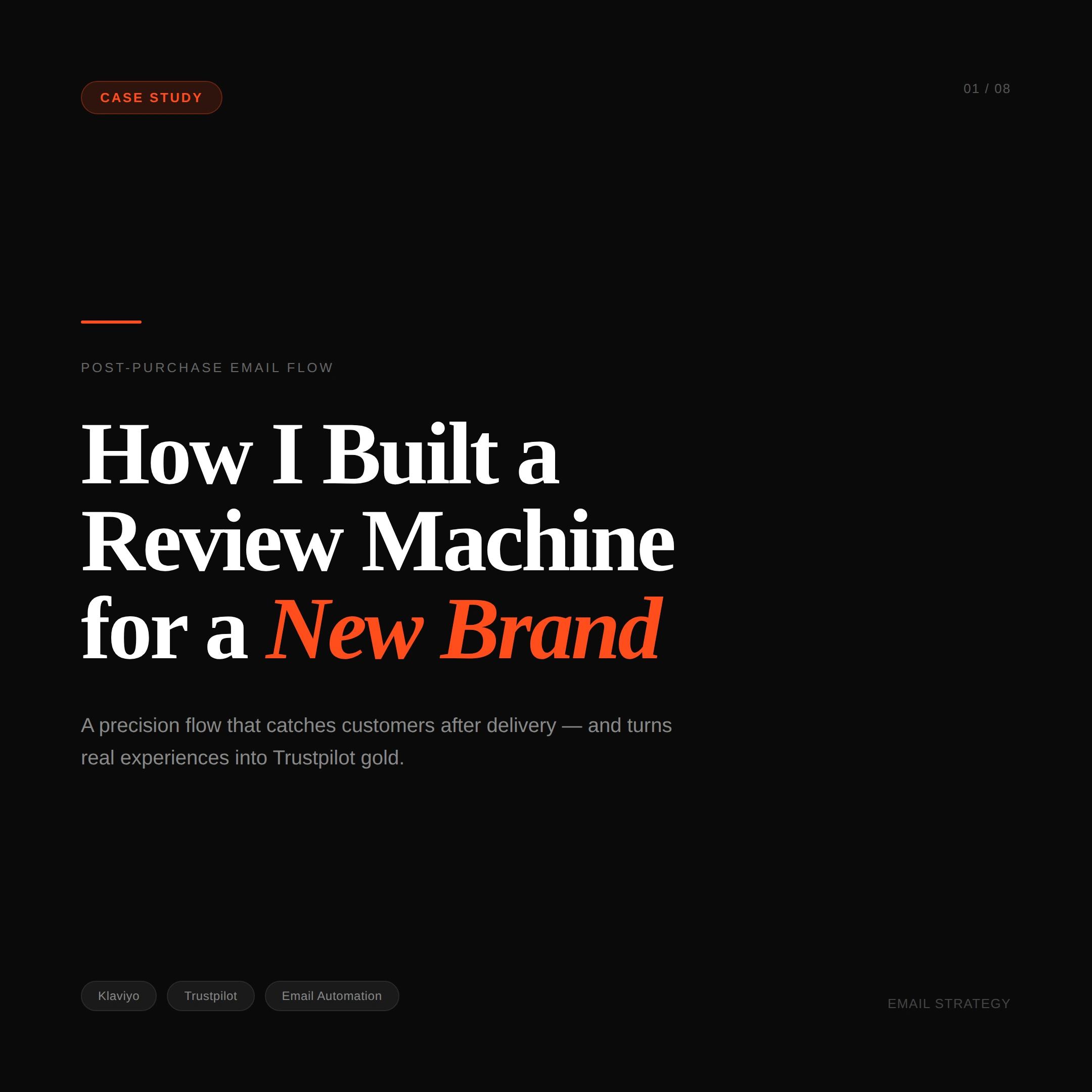 Designed and built a fully automated post-purchase email flow to help an e-commerce brand collect authentic Trustpilot reviews while protecting their reputation