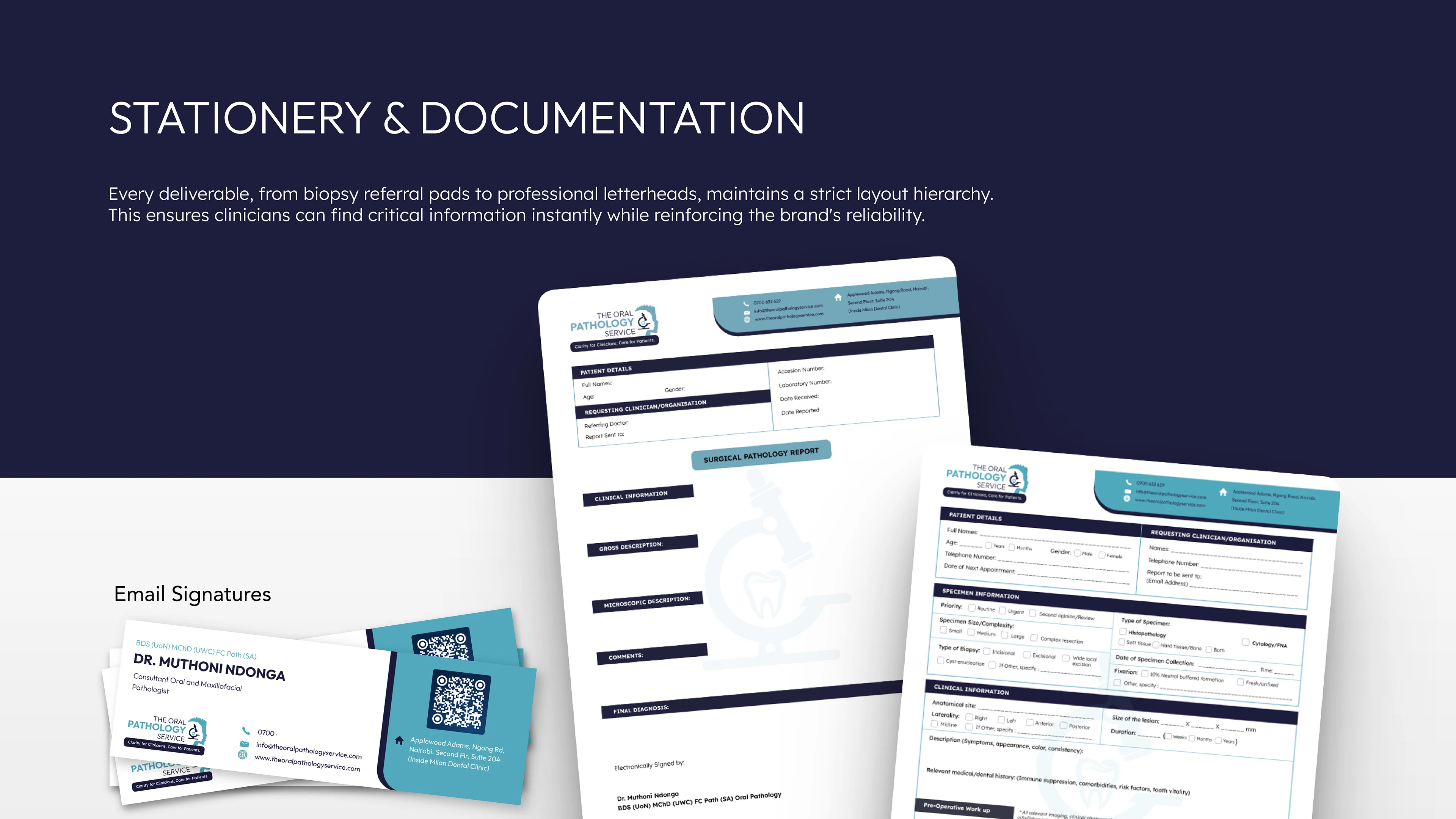 The Challenge: How do you visualize the intersection of clinical pathology and patient-centered dental care? For The Oral Pathology Service (OPS), the goal was to move away from sterile, intimidating medical tropes and toward an identity that projects both "Clarity for Clinicians" and "Care for Patients."