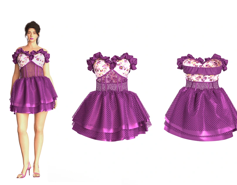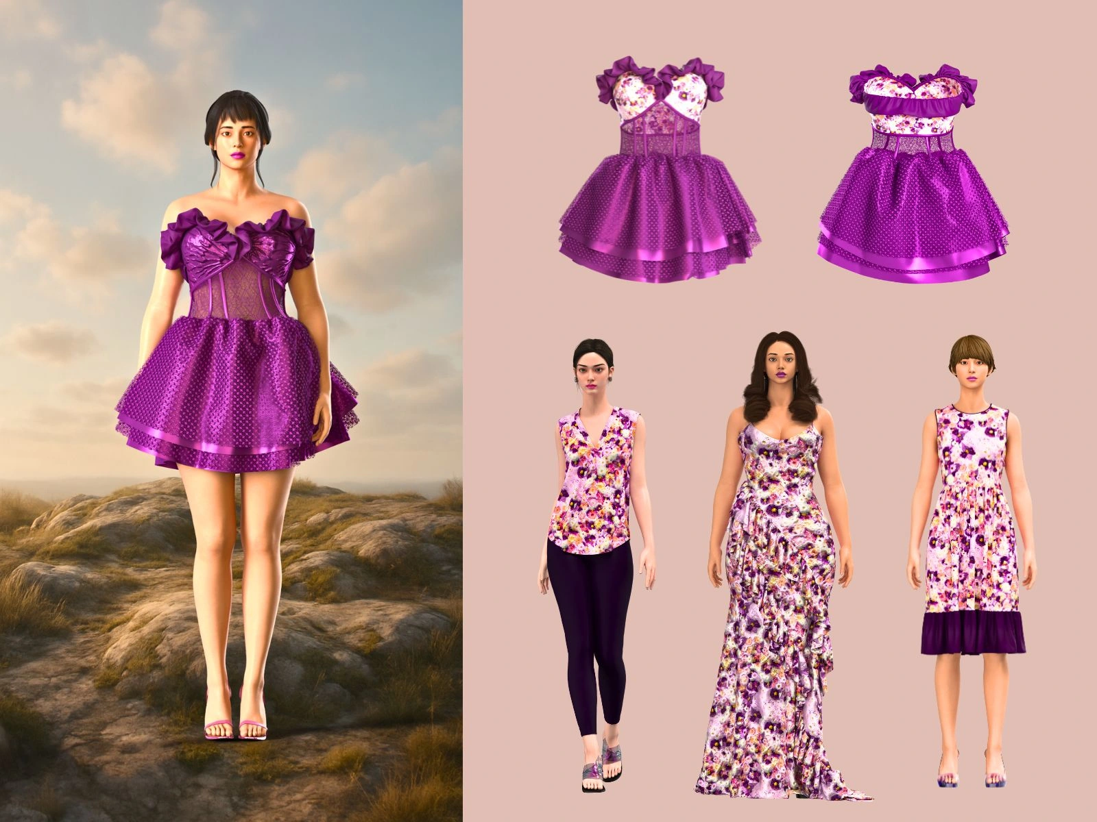 A Floral Symphony" 3D collection with 4 styles—casual, elegant, playful & flirty—crafted from one floral print, rendered with realistic detail