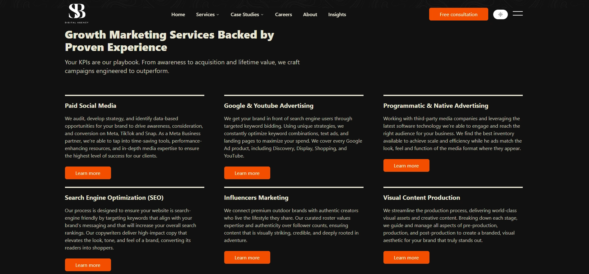 SB Digital Agency is a boutique performance marketing firm focused on outdoor and premium DTC brands.