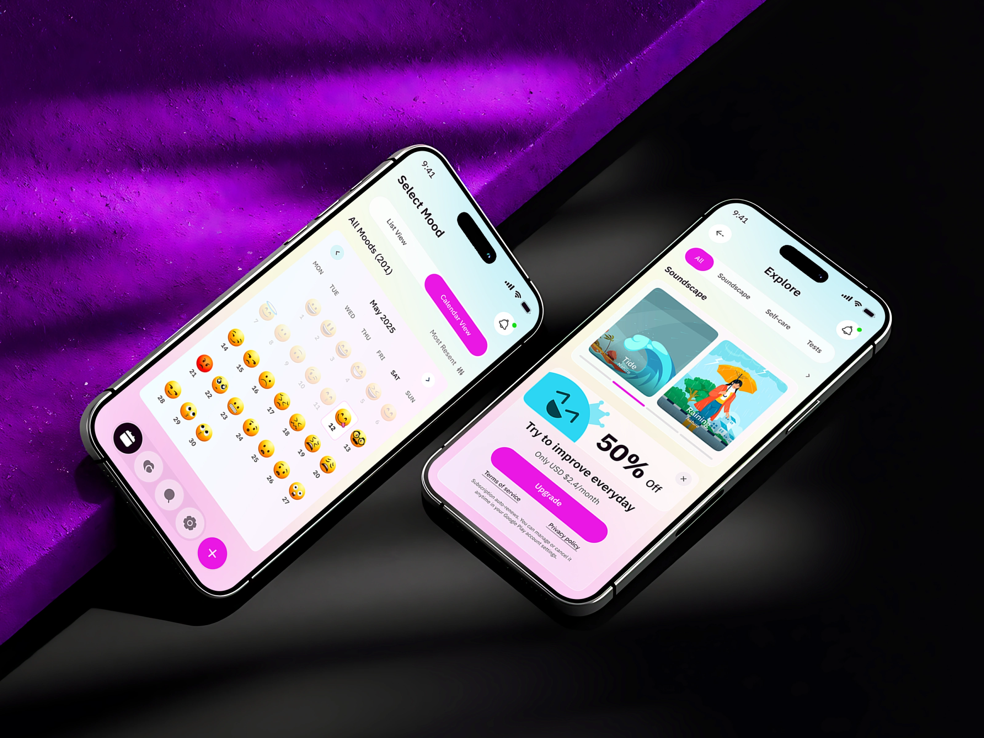 Our mental health app is designed to help you feel better every day. Explore calming soundscapes, self-care tools.