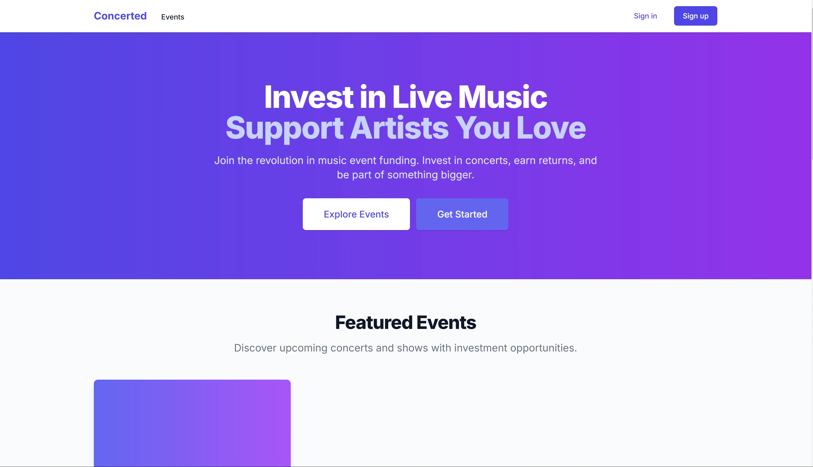 A revolutionary platform for music event funding where fans can invest in concerts, earn returns, and support their favorite artists.