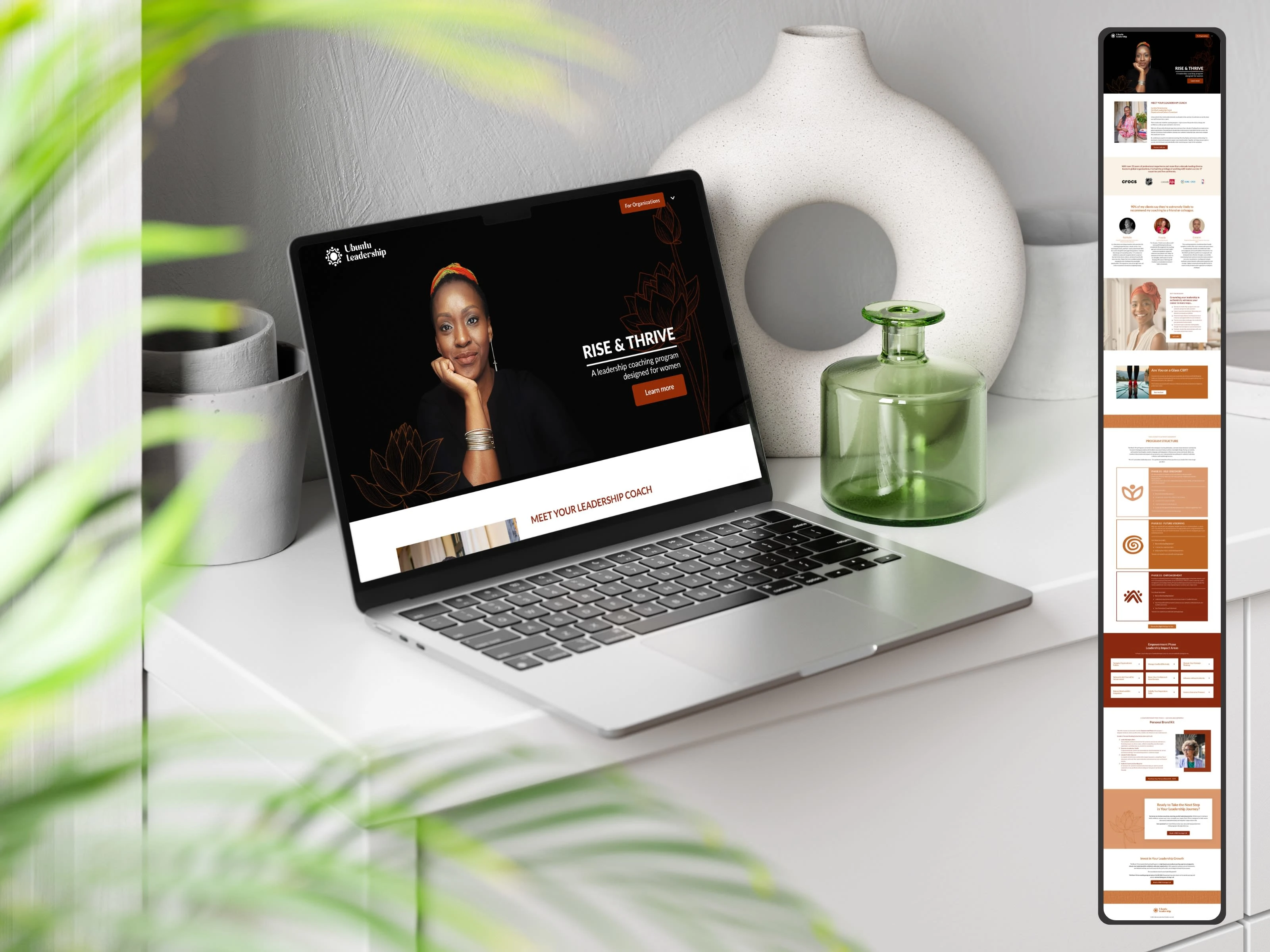 I redesigned the entire web experience for Ubuntu Leadership on Kajabi. I handled the design, branding alignment, layout strategy, custom CSS enhancements, etc.