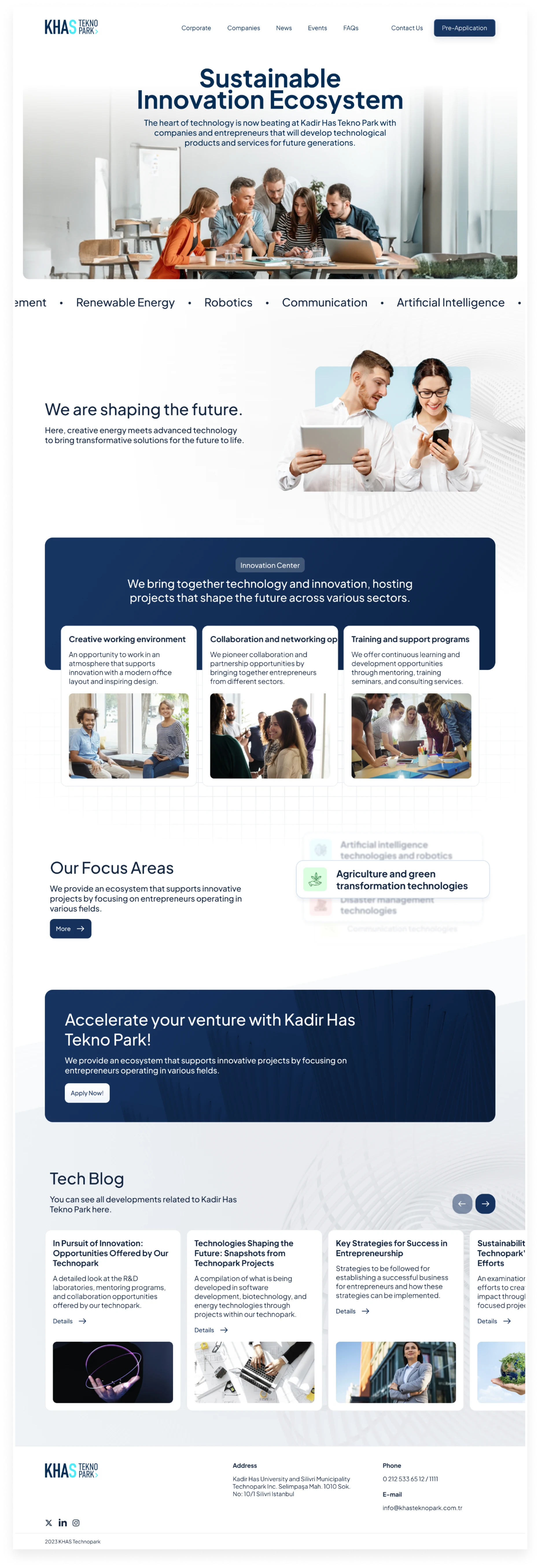 Modern, user-friendly website for KHAS Teknopark, showcasing innovation programs with clean design and intuitive navigation.