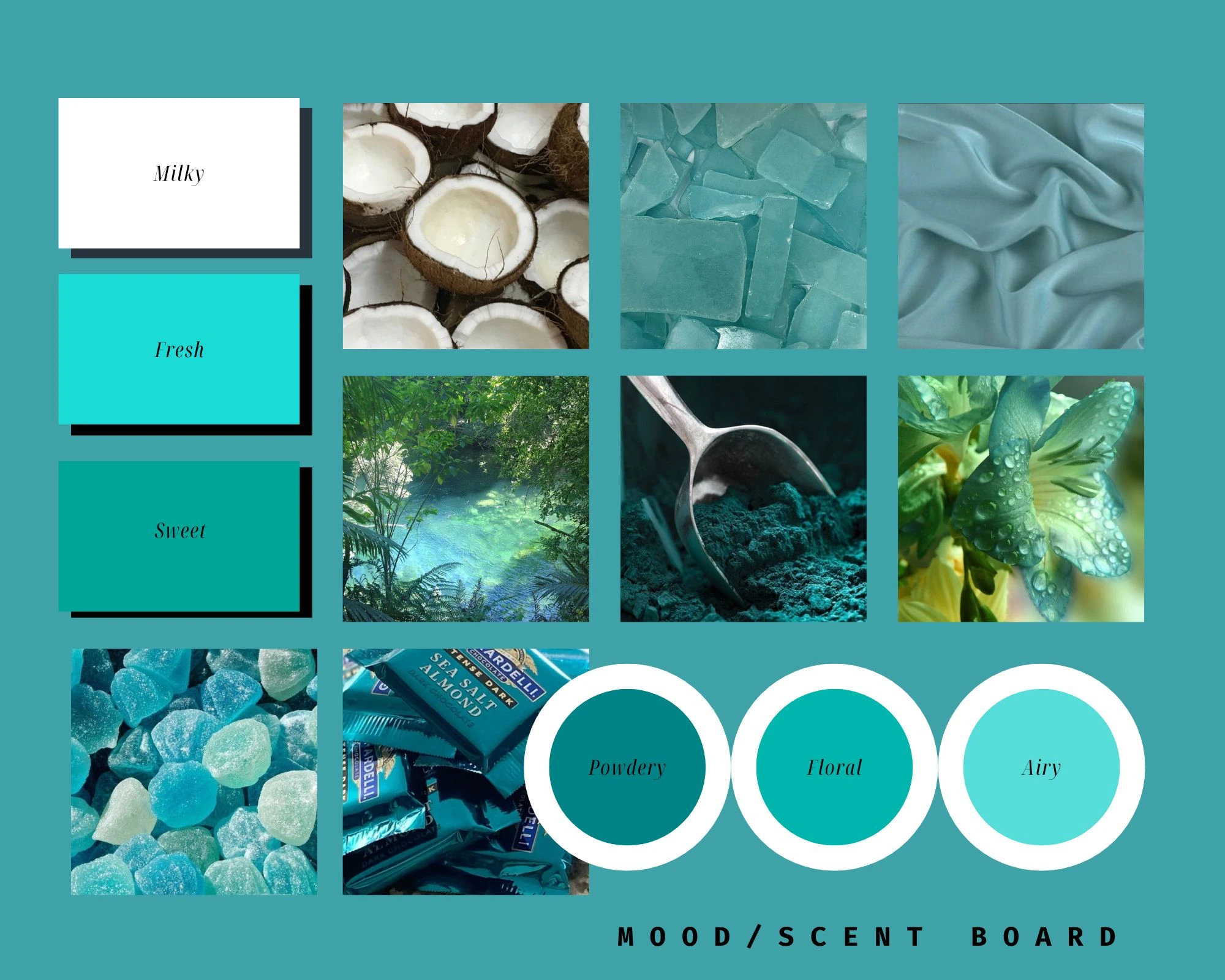 Veridian was born from a blue-green hue I branded into a mood. I chose blue-green - Veridian - and imagined it as a sensory-driven fragrance and body care line rooted in softness, freshness, and indulgence. I developed the scent board and visual language, crafting a brand that whispers luxury through texture, tone, and feeling. From the powdery sweetness of coconut to crisp botanicals, Veridian becammore than a color - it became a mood. ‘Veridian’ mirrors Byredo’s scent storytelling with a personal spin.
