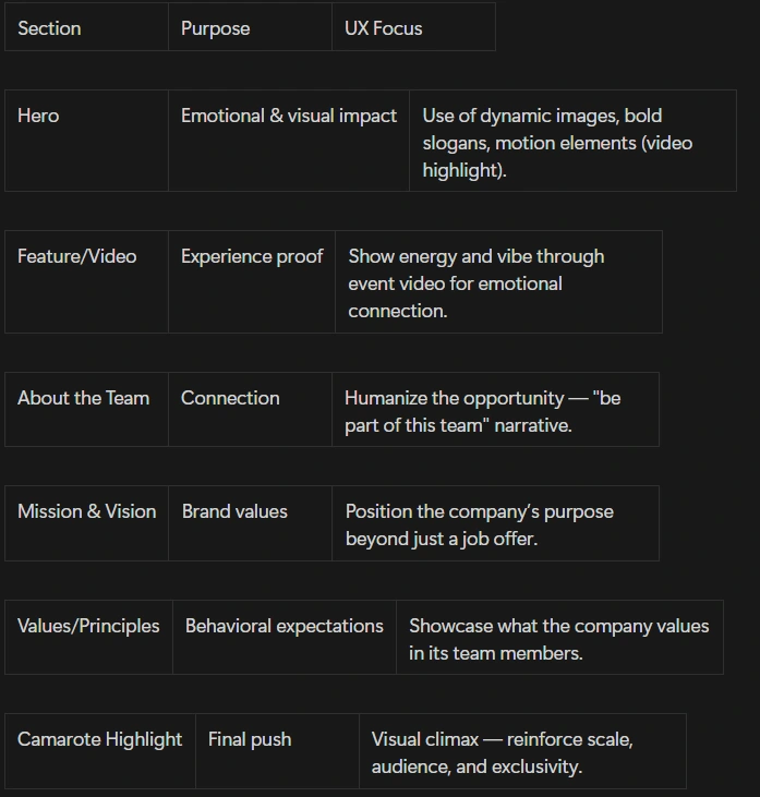 Create an engaging landing page to attract and convert people to work at Camarote Salvador during Carnaval — the most iconic VIP space of Brazil's biggest party.