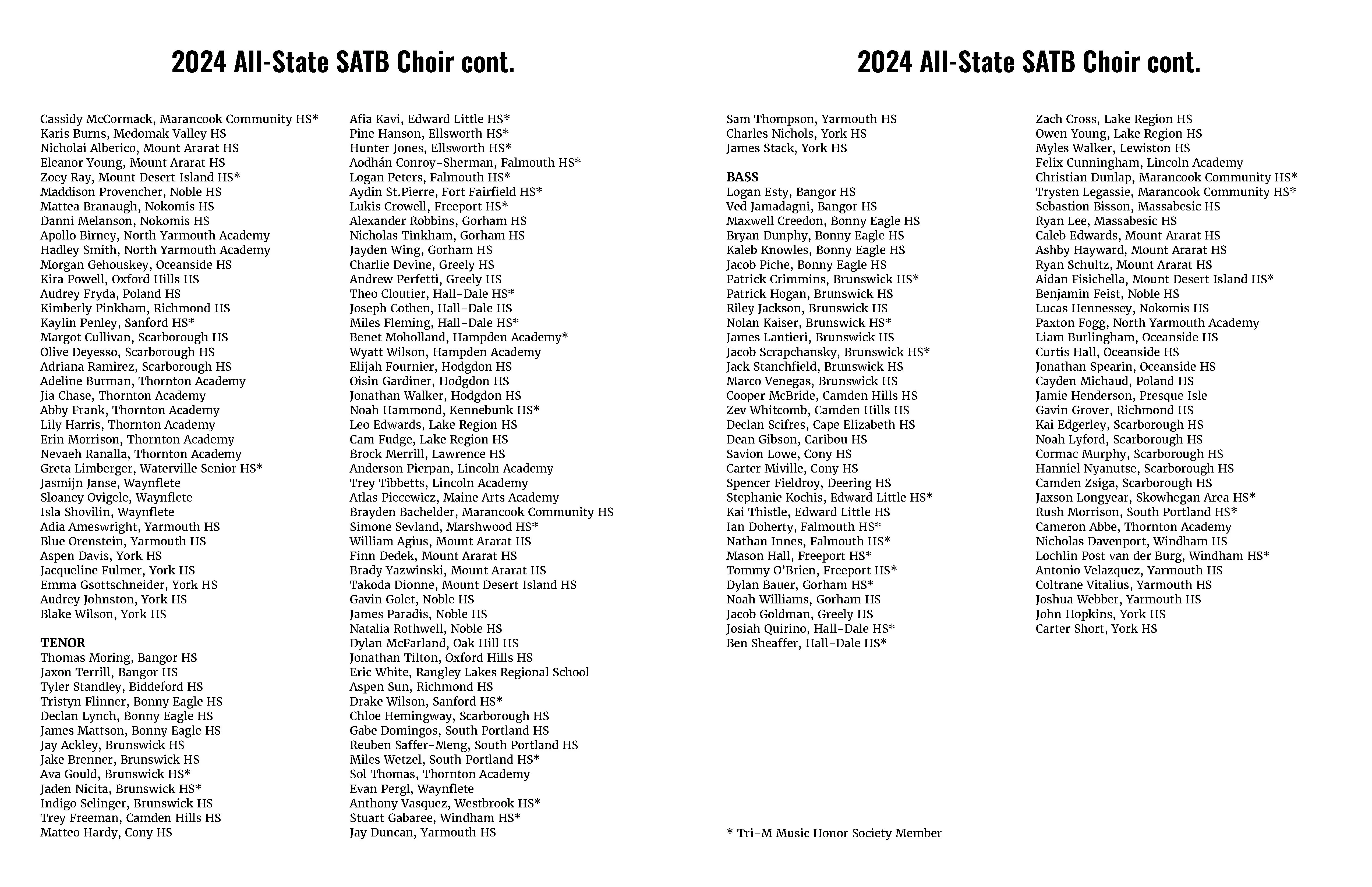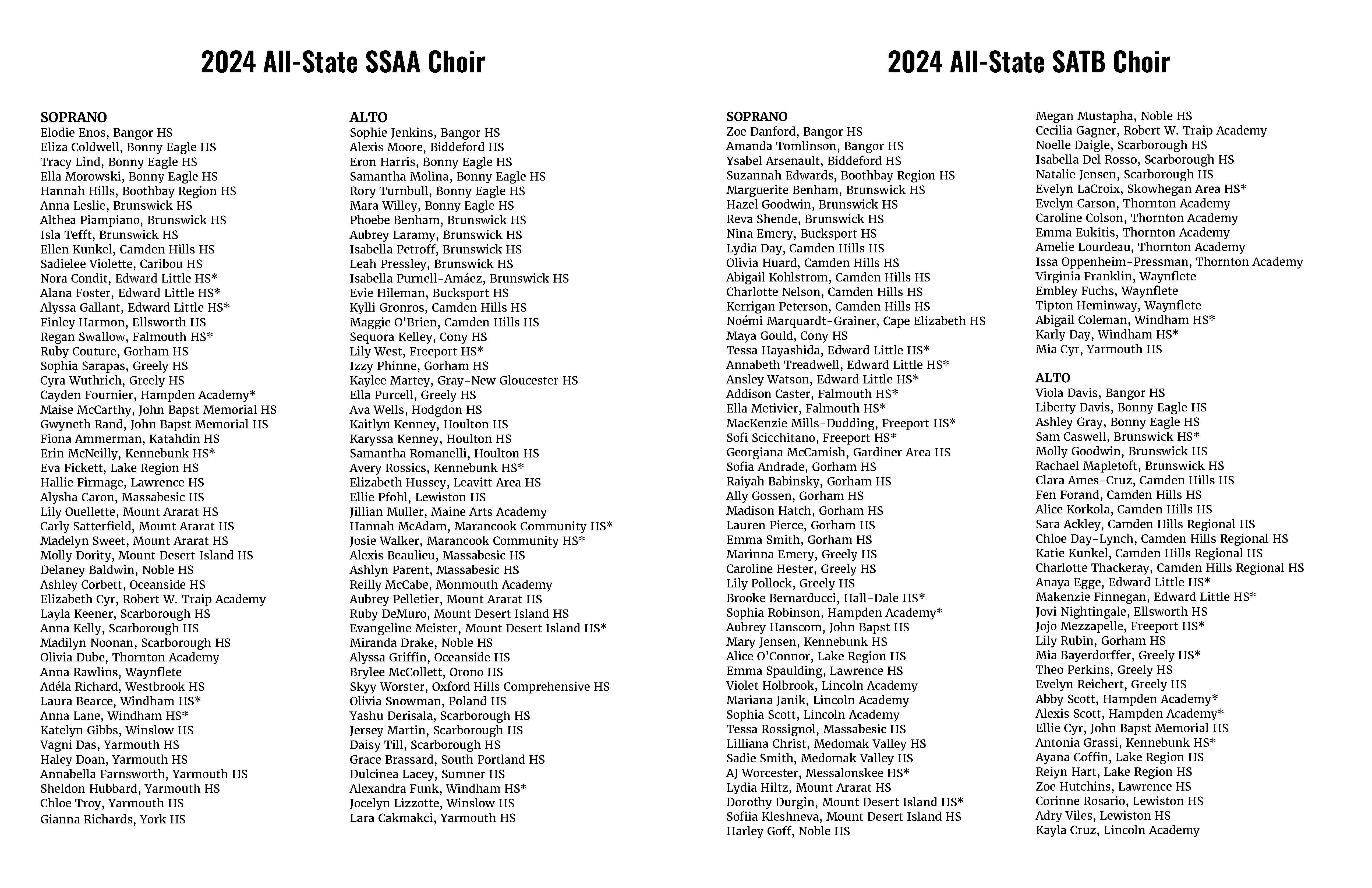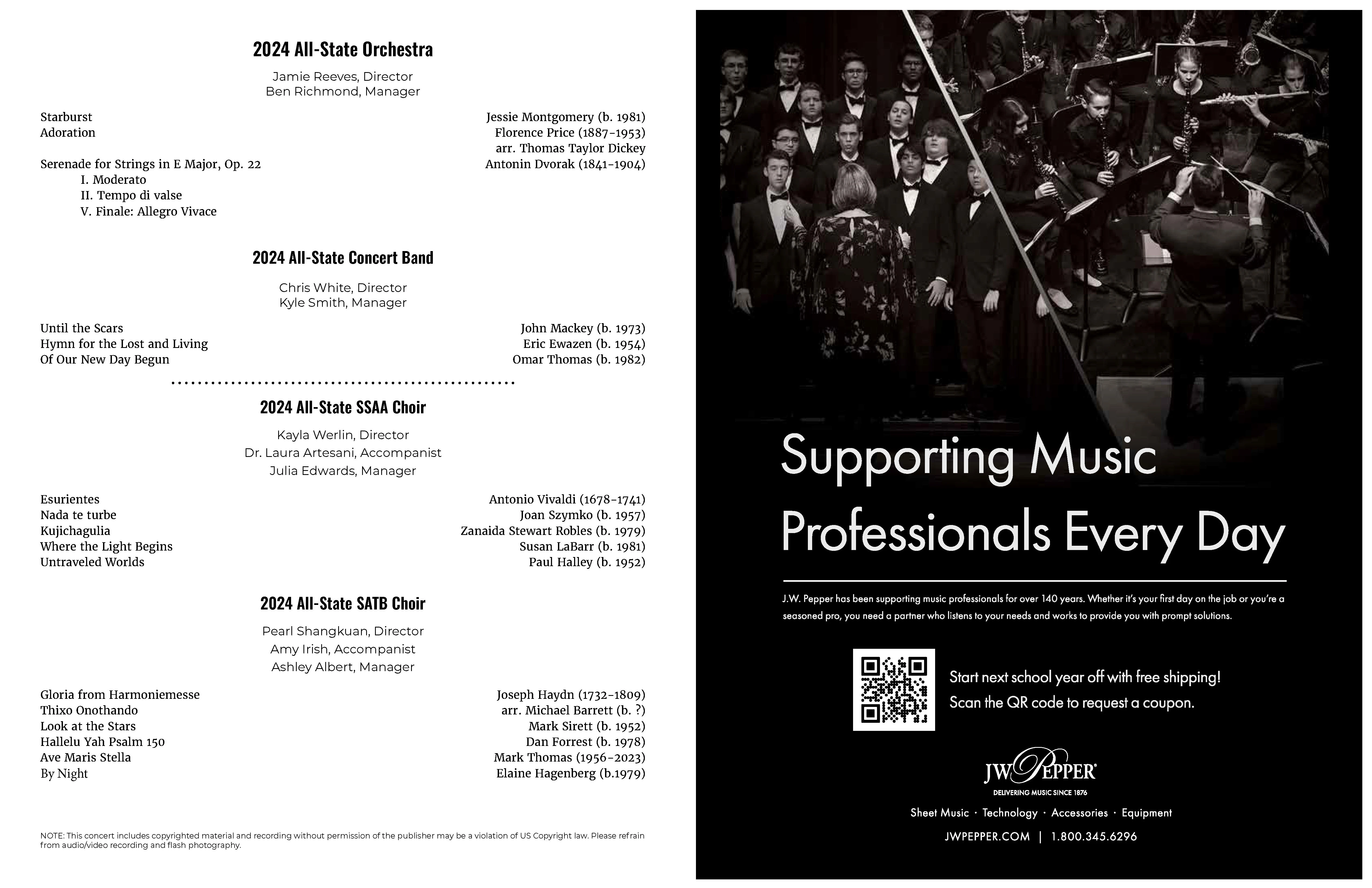 Concert Program creation for the Maine Music Educators Association 2024 All-State Festival.
