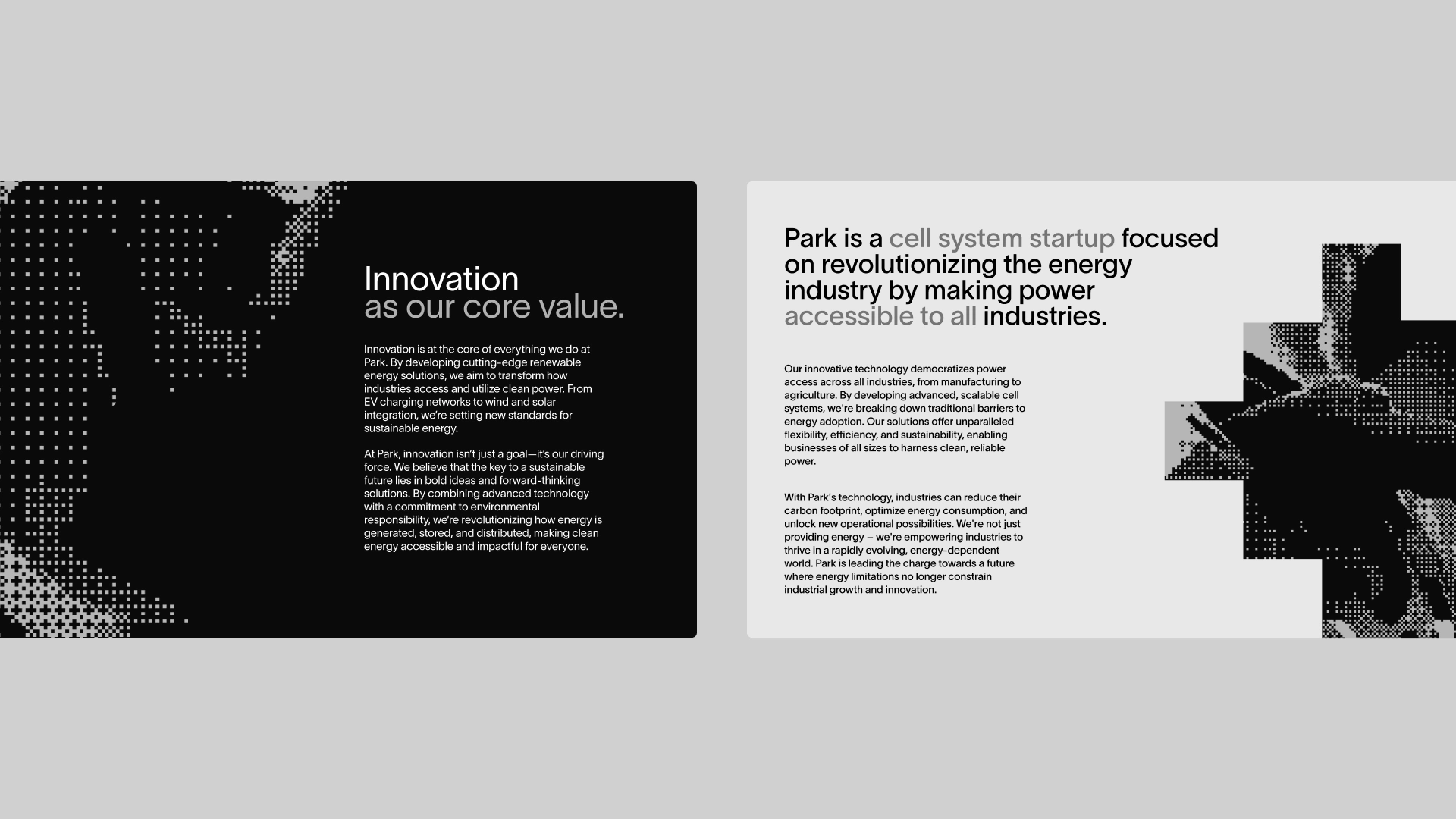 I collaborated with Park to create a disruptive brand identity that would feel completely opposite to what the industry is used to. Park now sets new standards in the industry and make clean energy more accessible and impactful for everyday life.