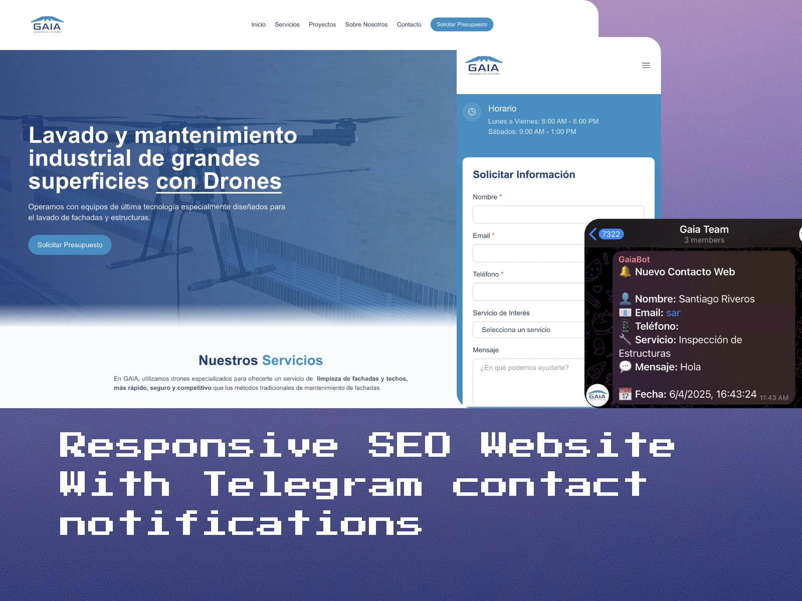 This Responsive SEO Website was made with next.js and deployed on a free vercel plan and when a user fills the contact form a notification is immediately sent to a telegram channel.