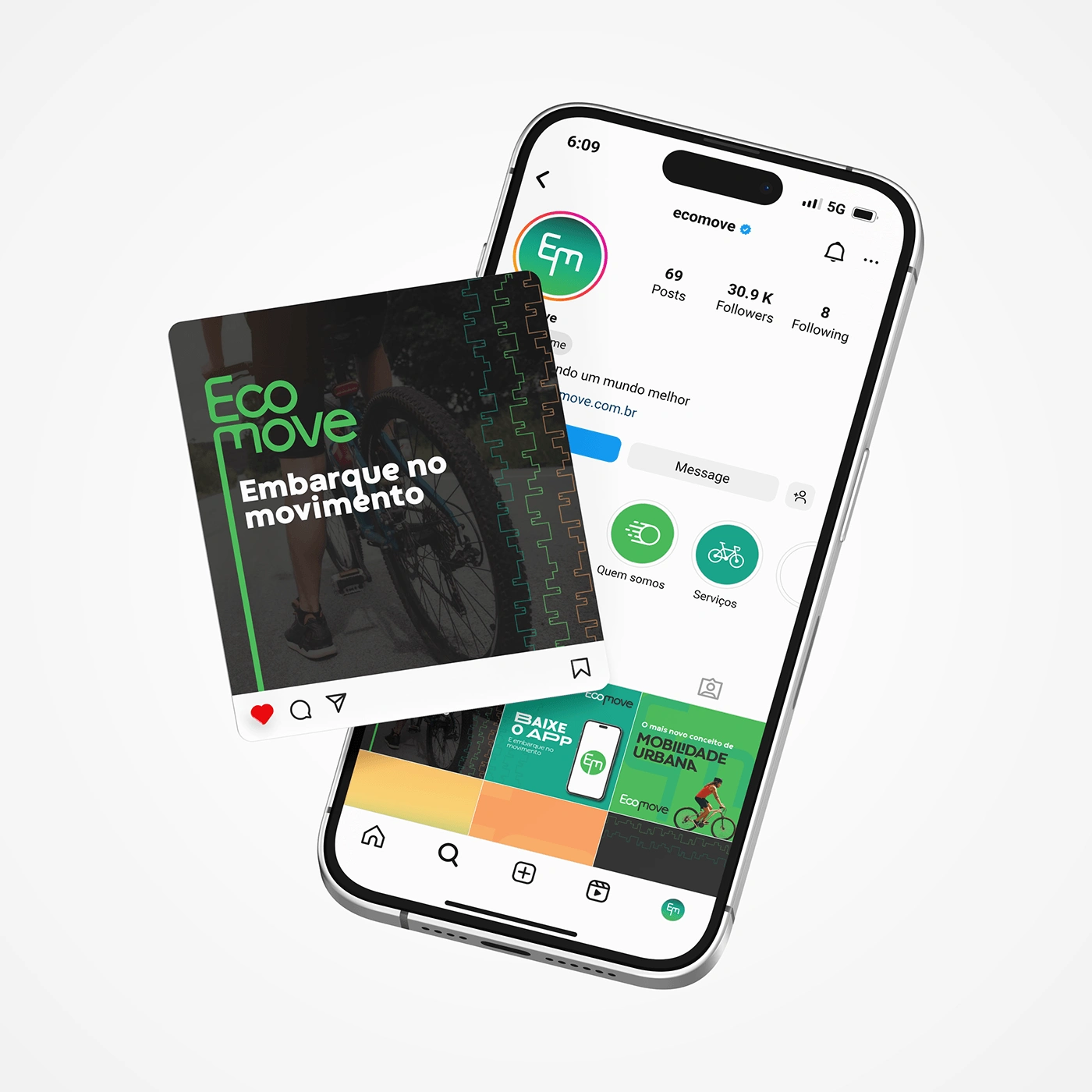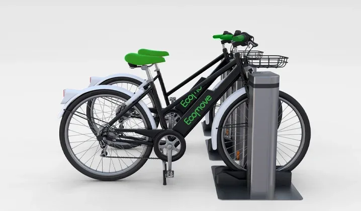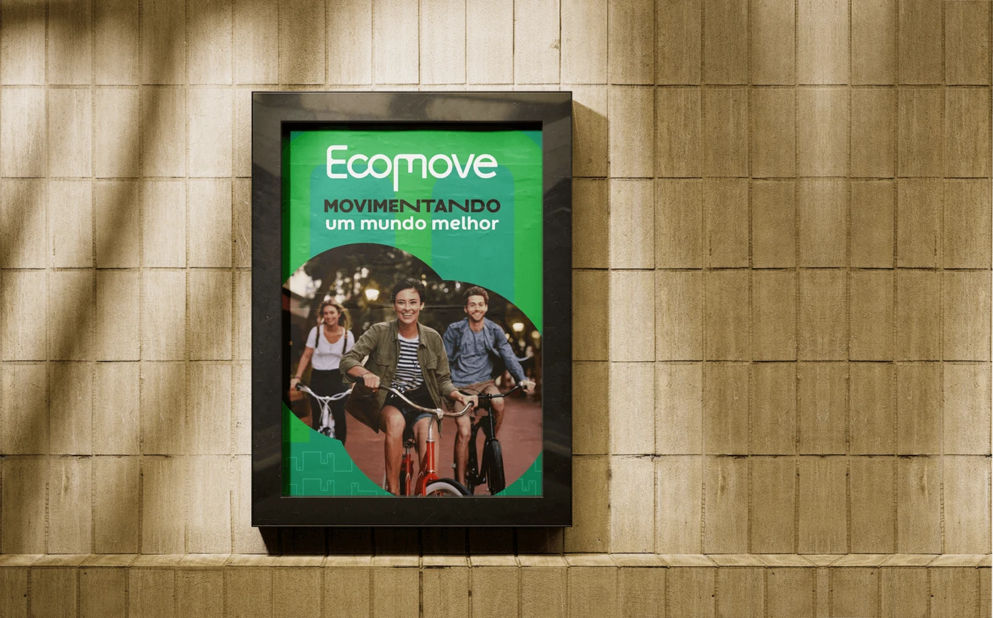 Fictional visual identity for the Ecomove brand, an urban mobility company (shared bicycles and scooters)