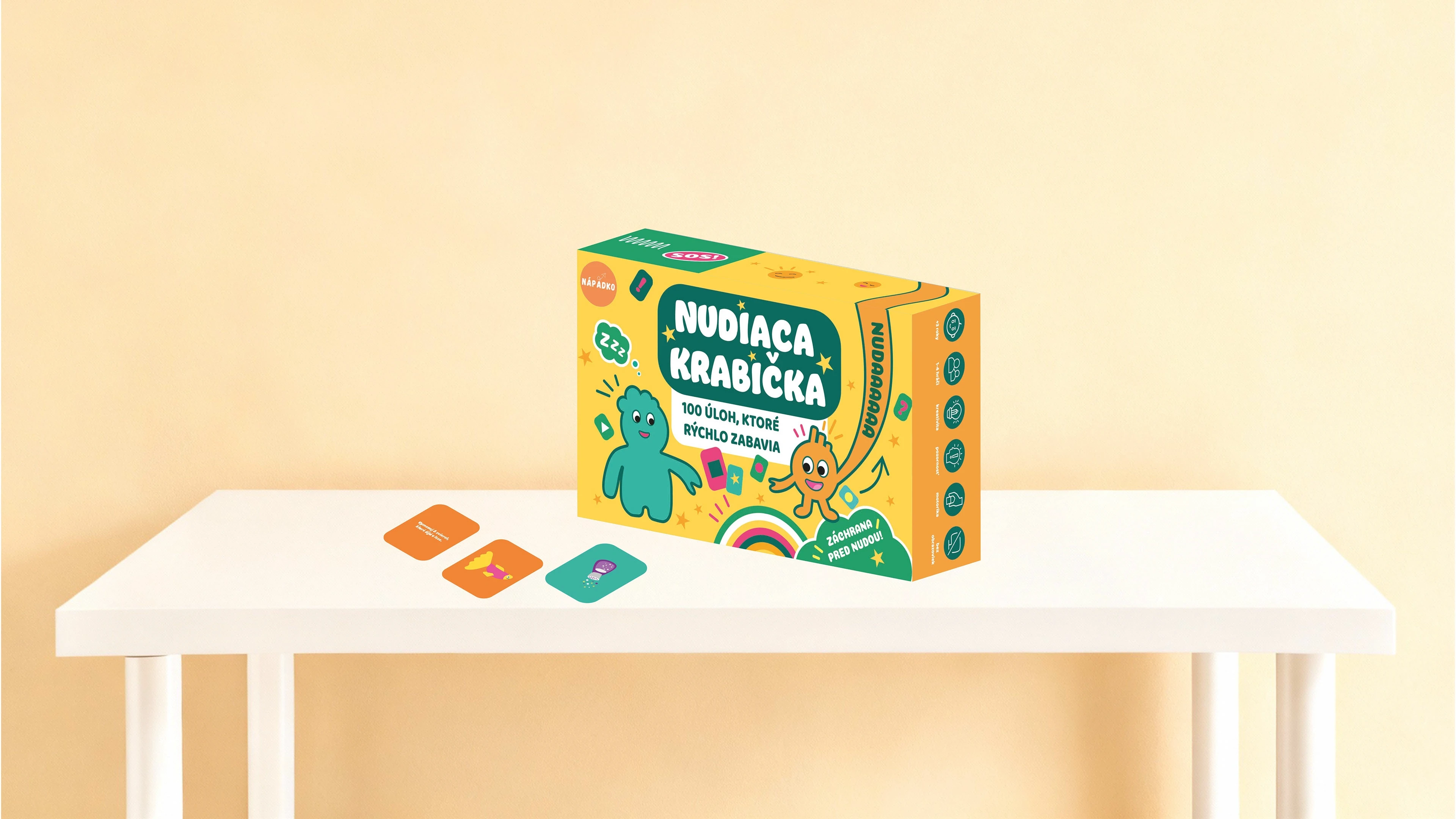 Visual identity, packaging and illustrations for a children’s activity box with playful characters and bright colors.