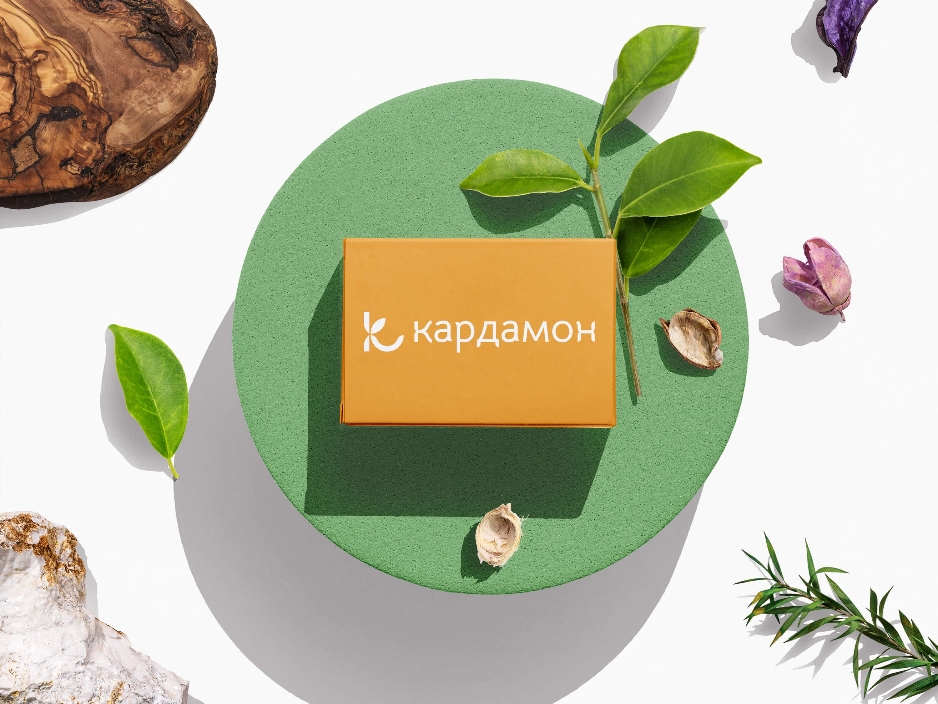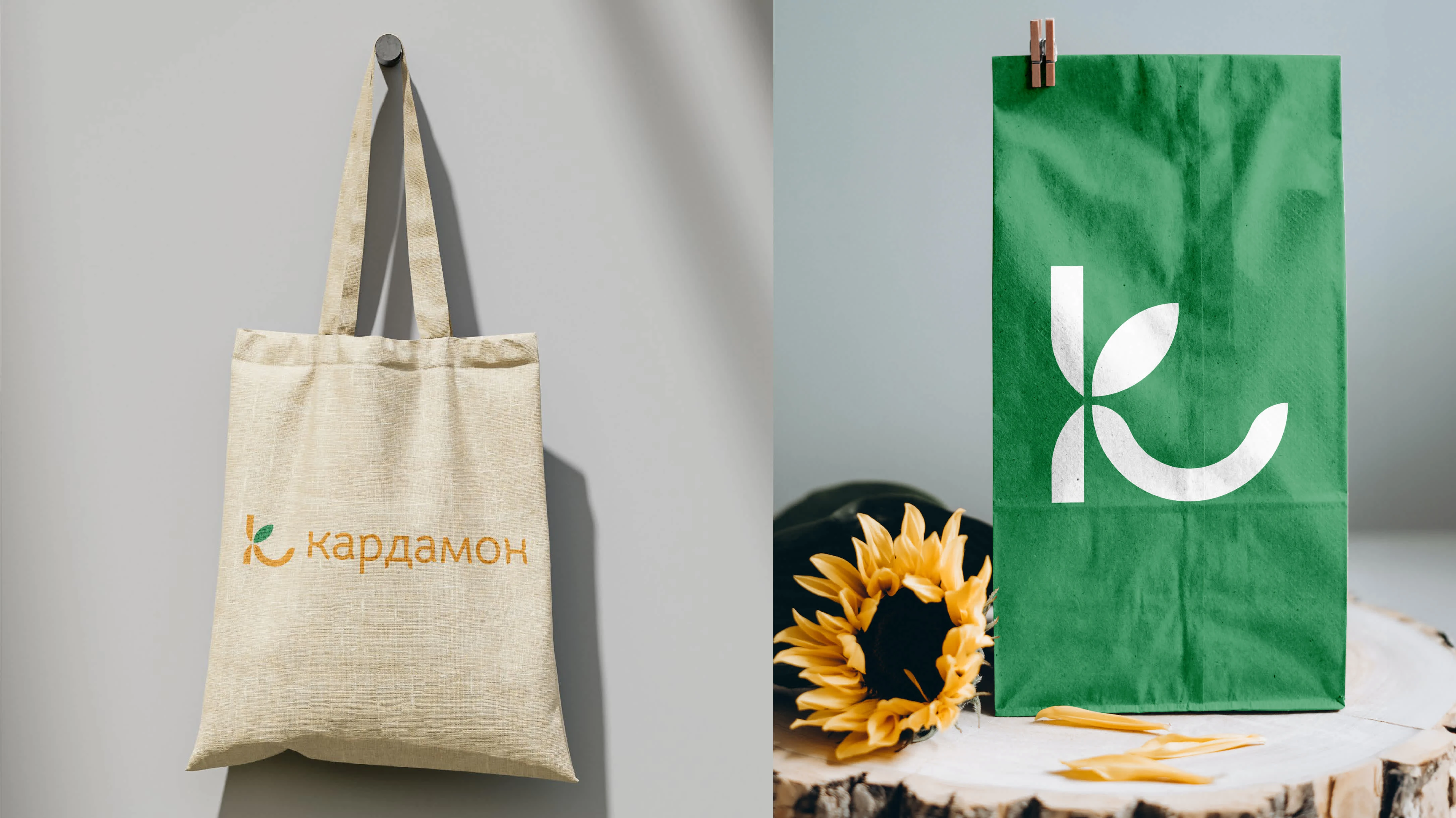 The task is to create a logo for a spice shop called "Cardamon." The client wanted a hint of ethnic style and authenticity. The solution – based on the brief analysis, the decision was made to use the letter "K" as the foundation of the logo's form. The lower leg of the "K" represents a plate that could hold spices, while the upper green part represents a cardamon pod with seeds.