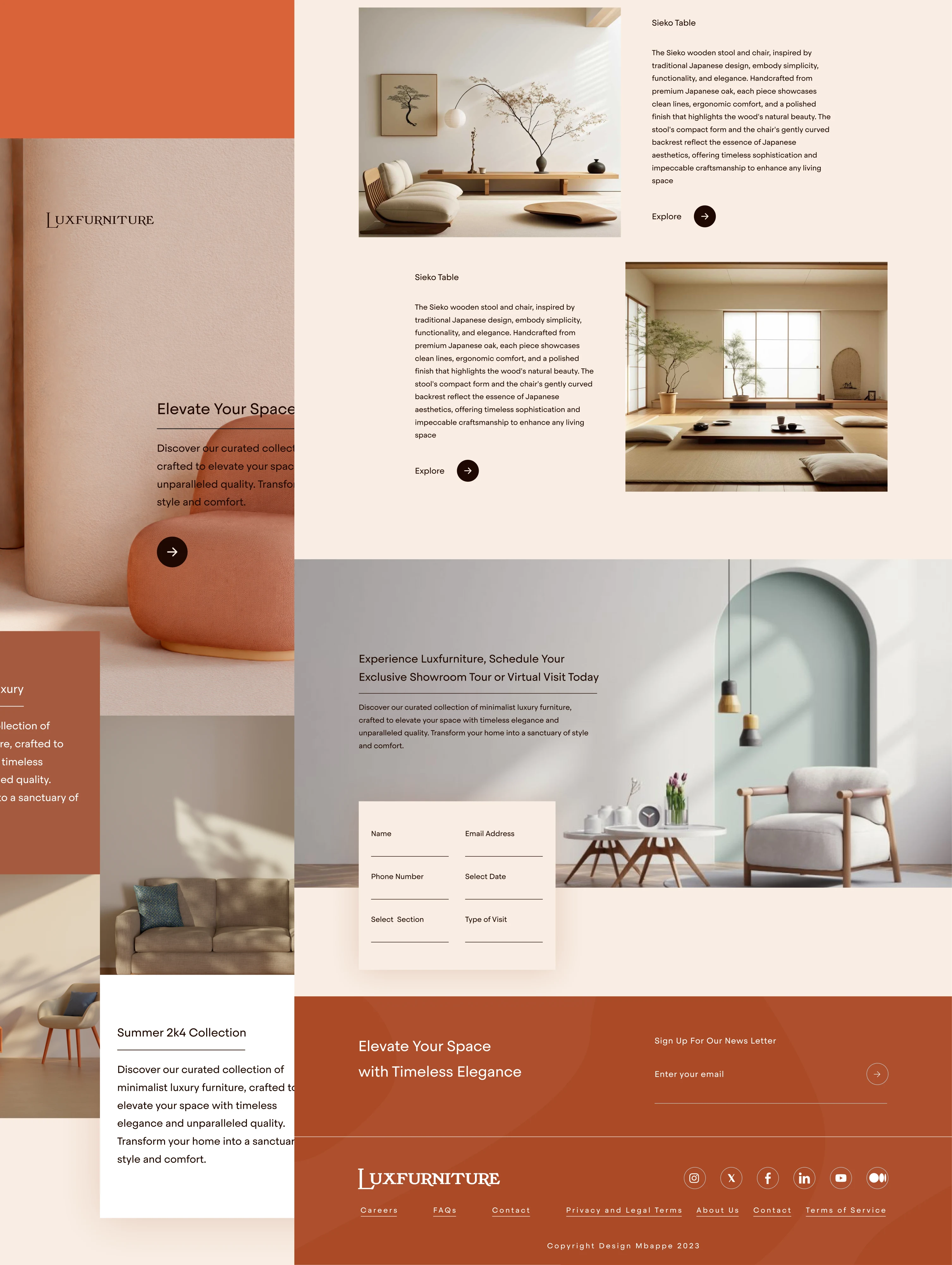 Modern luxury landing page for Luxfurniture, elegant design, premium visuals, and seamless navigation that elevated brand presence and engagement.