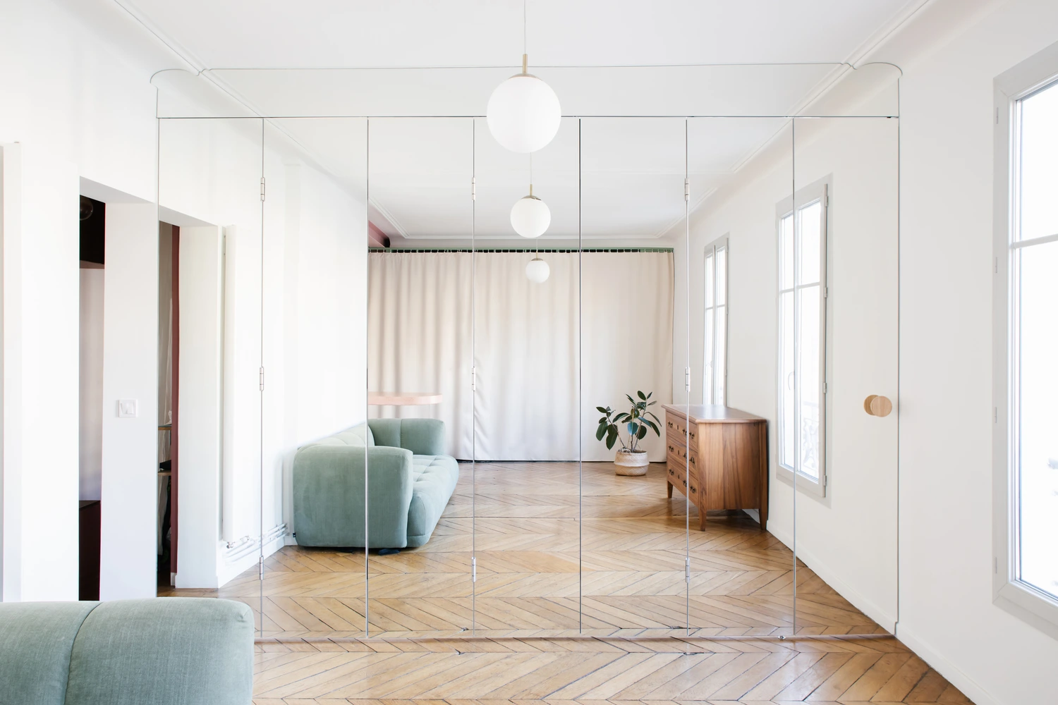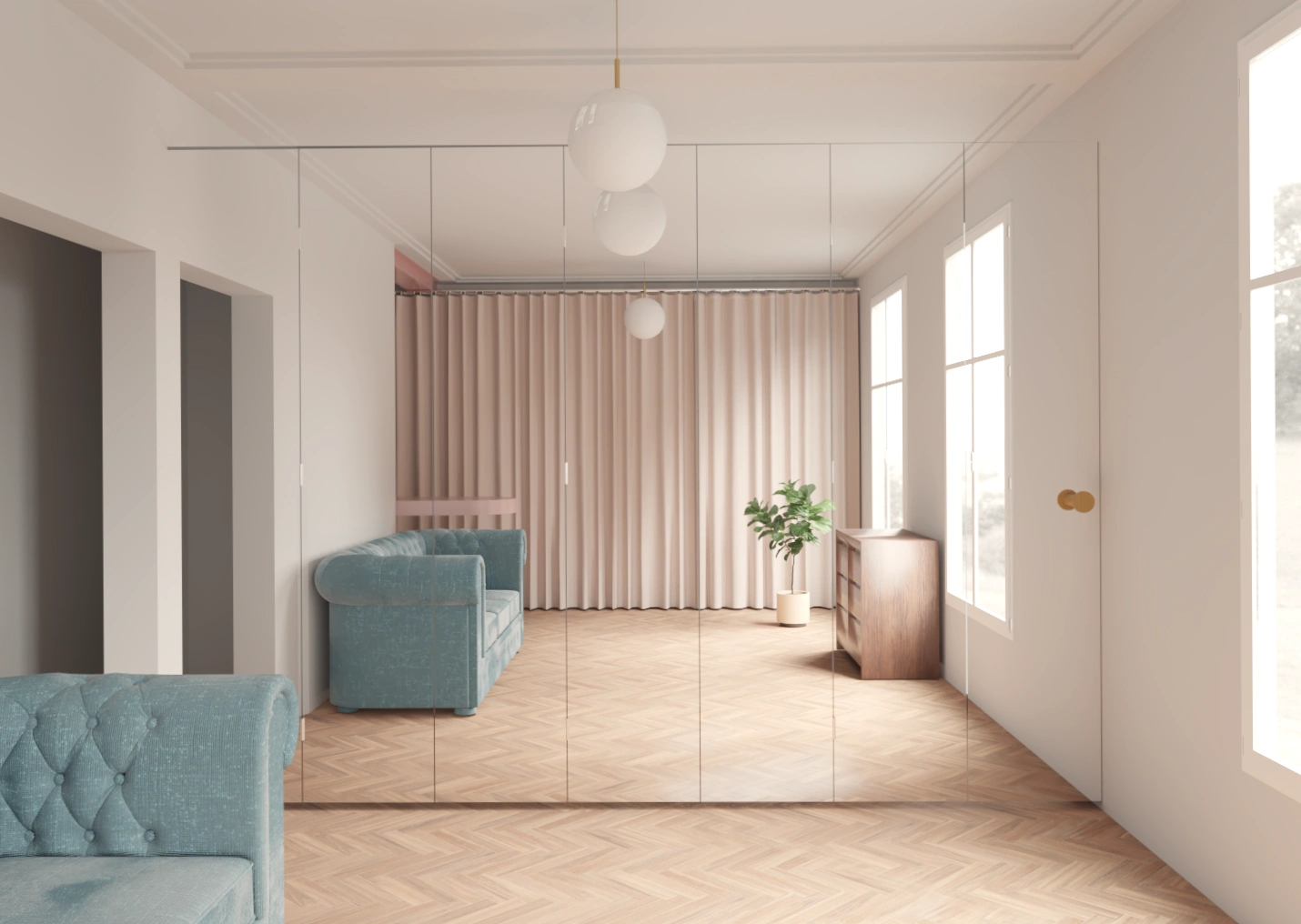Interior scene of the Villete apartment designed by Miogui architecture, based on an interior photograph of the project taken by Philippe Billard.