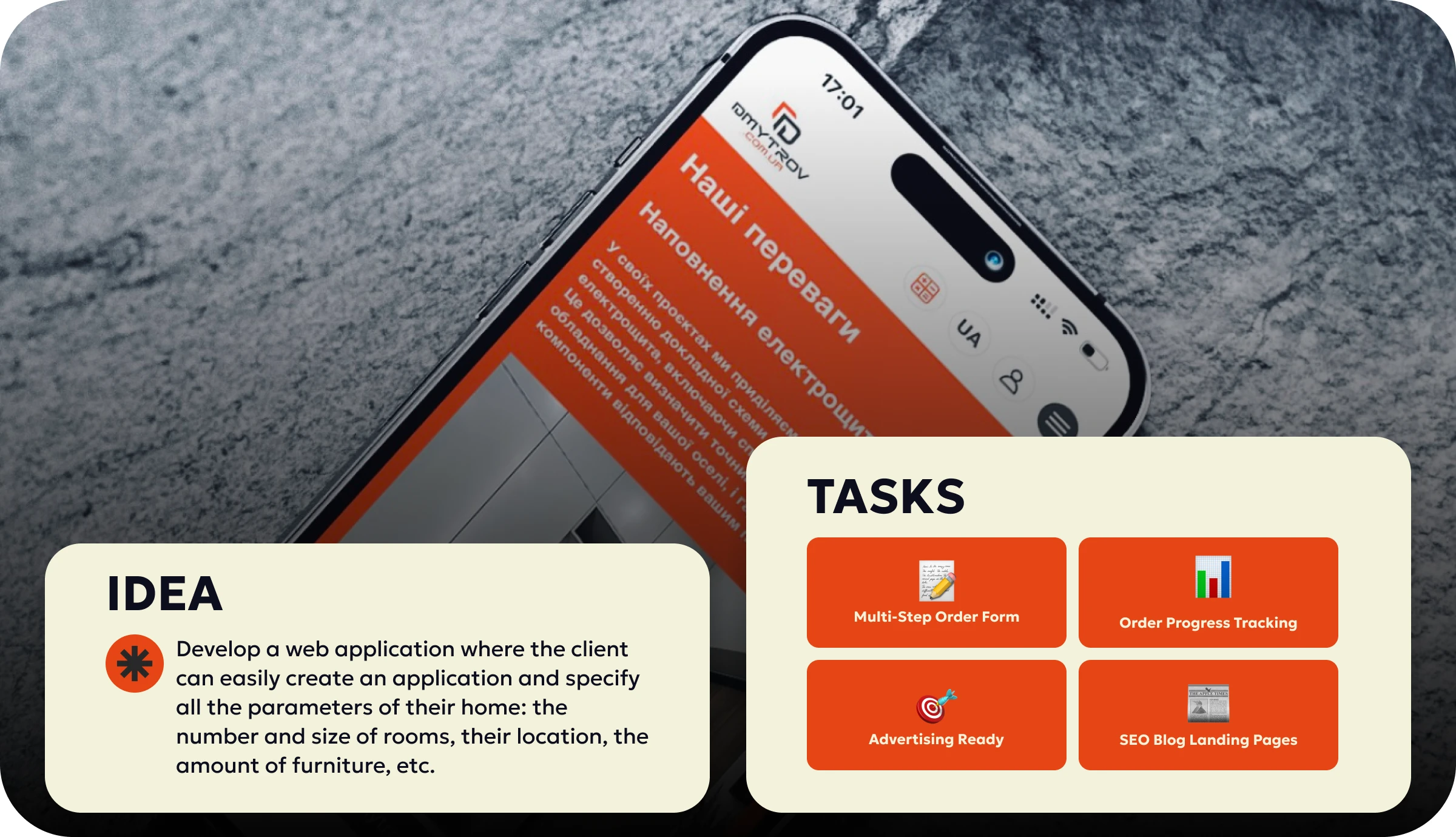 π I developed a web app for an architecture studio featuring an interactive multi-step form and a powerful admin panel. The solution saved over 40+ hours per month, reduced onboarding costs by $800/month, and boosted client satisfaction by speeding up the briefing process