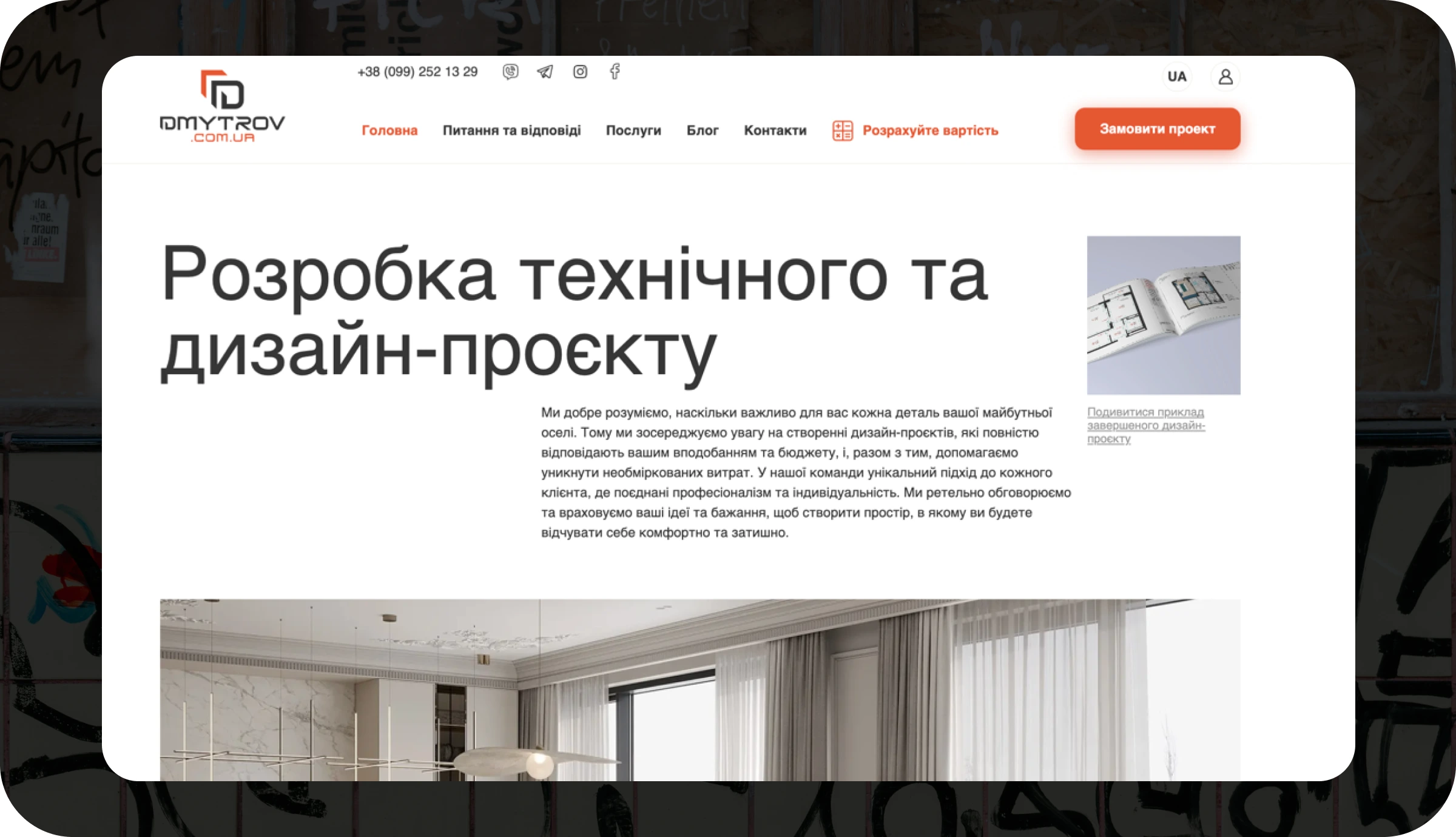 On the recommendation of another freelance exchange, I was contacted by a client who needed to create a website for his company that designs projects for houses and apartments π