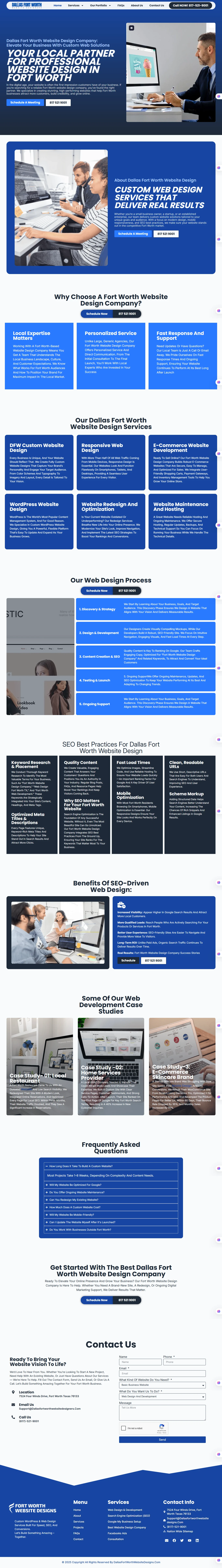 The company's mission is to deliver measurable value through innovative digital solutions, creating unique, high-performing websites that enhance search engine visibility and convert visitors into customers. Services include custom website design tailored to brand identity, responsive development for cross-device compatibility, e-commerce solutions with secure payment integrations, WordPress-based content management systems, website redesigns for improved navigation and SEO, and ongoing maintenance with secure hosting and technical support. Unique strengths lie in their local expertise, personalized client communication, and built-in SEO practices, such as keyword optimization for terms like "Fort Worth website design company," which drive qualified leads and long-term ROI.