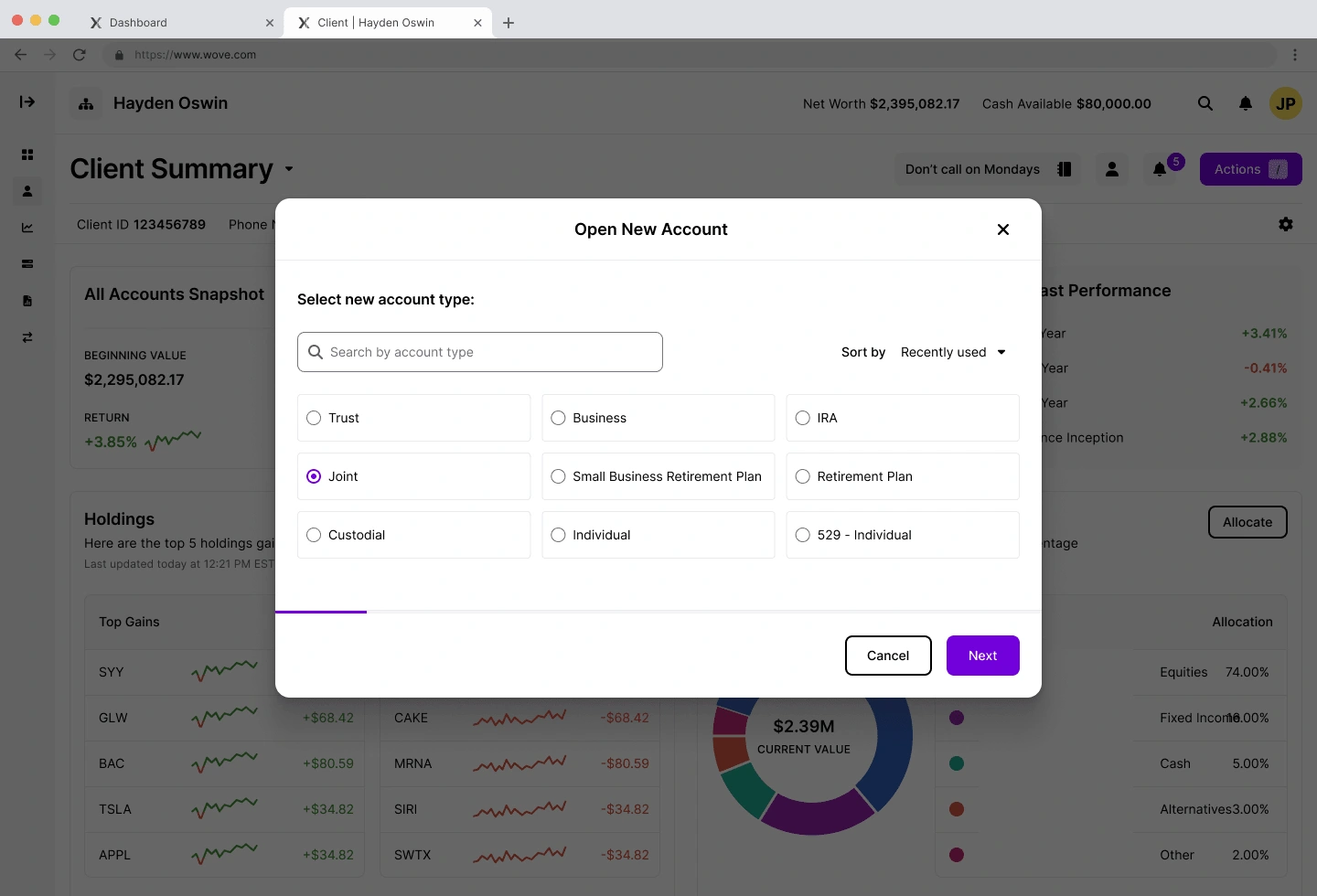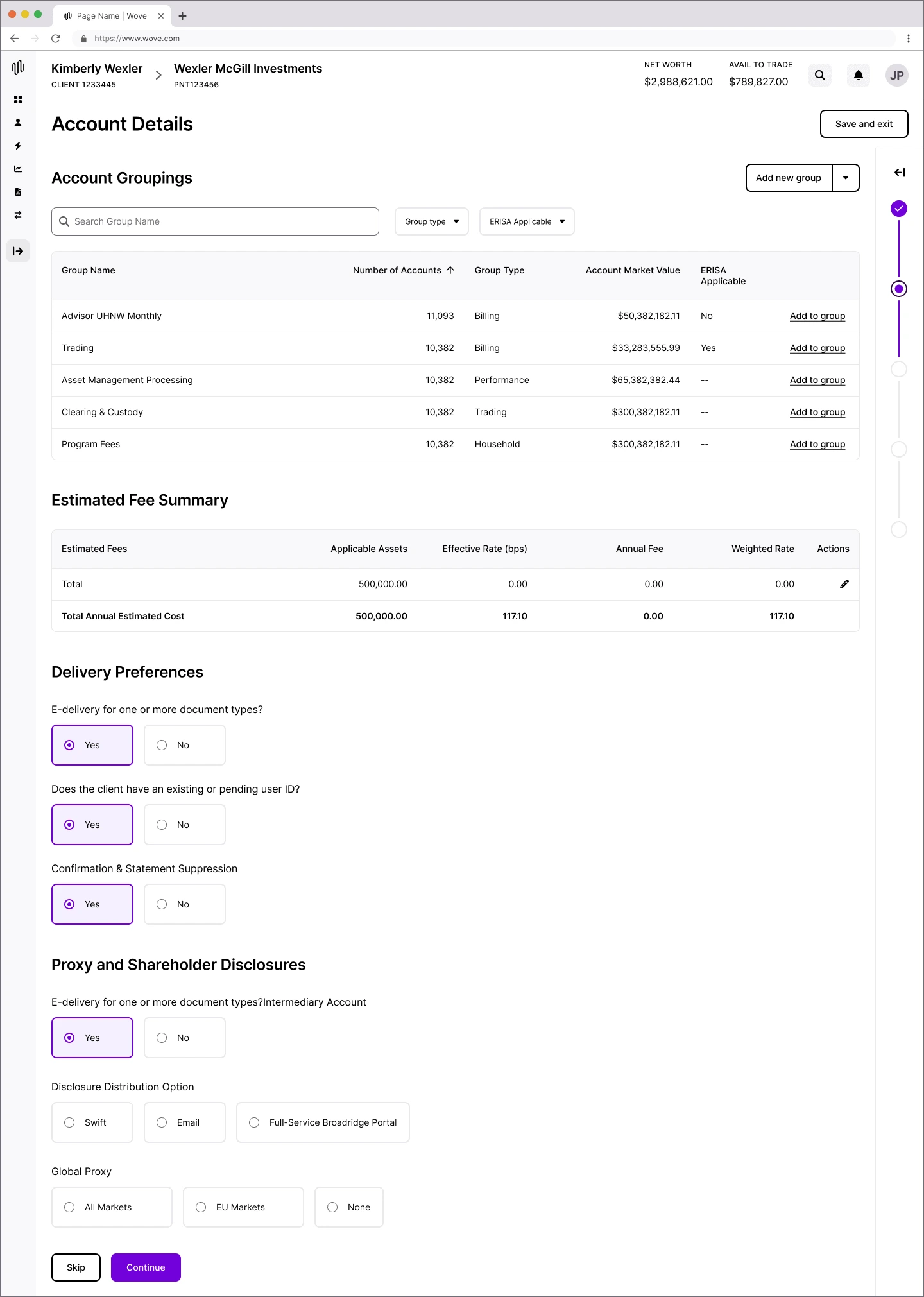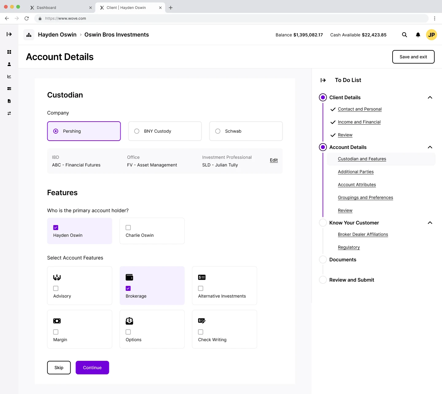 This project was part of BNY Pershing's initiative to integrate its platforms into a single solution, Wove, with a focus on enhancing the New Account Opening (NAO) process. The aim was to improve user experience, streamline workflows, and deliver an advanced platform for financial professionals and investors.