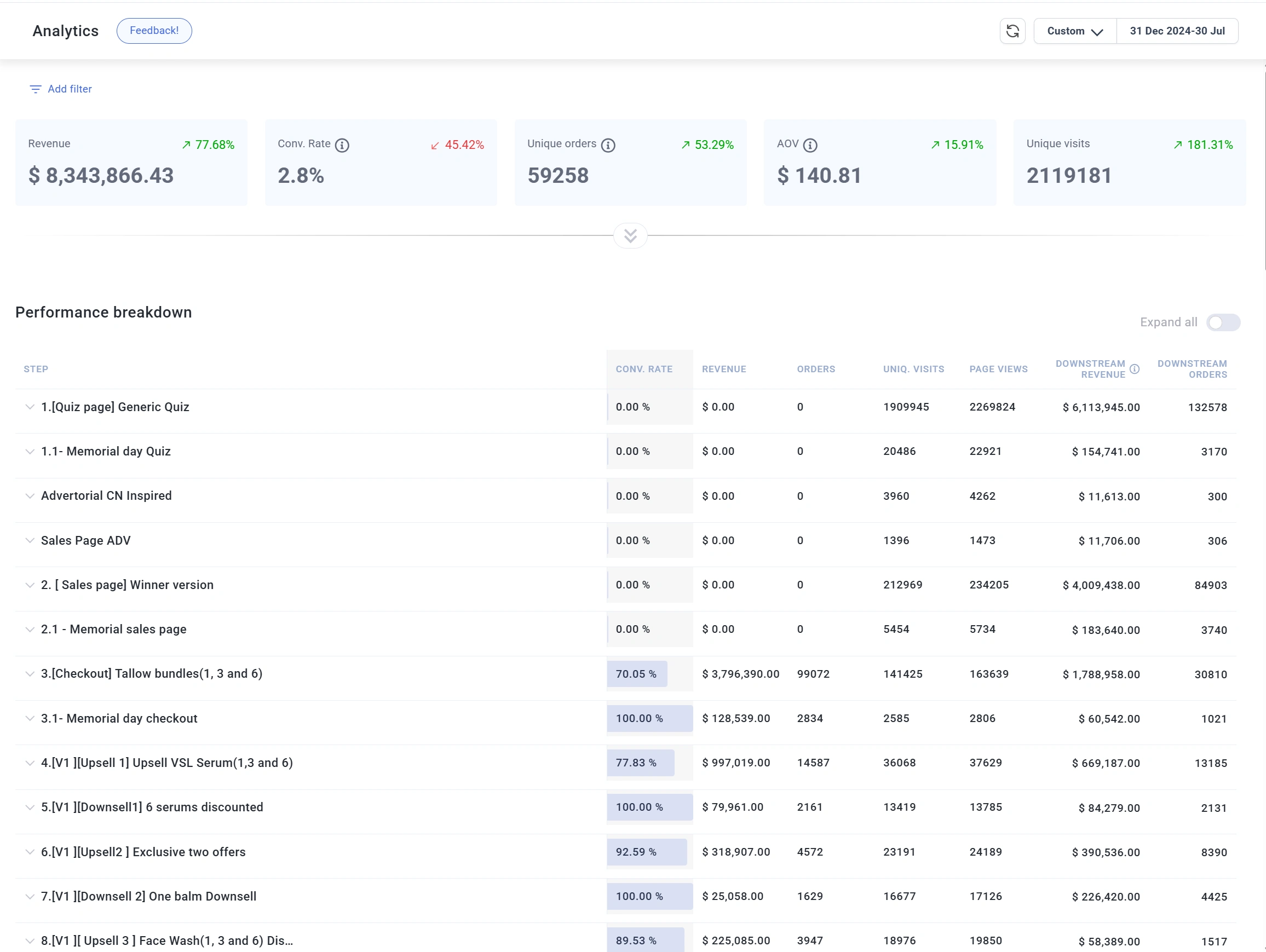 Our Solution: Built a proper CRO machine from scratch. Created a testing roadmap covering every touchpoint – quiz, sales pages, checkout, upsells. Implemented the PXL prioritization framework to test what actually mattered.