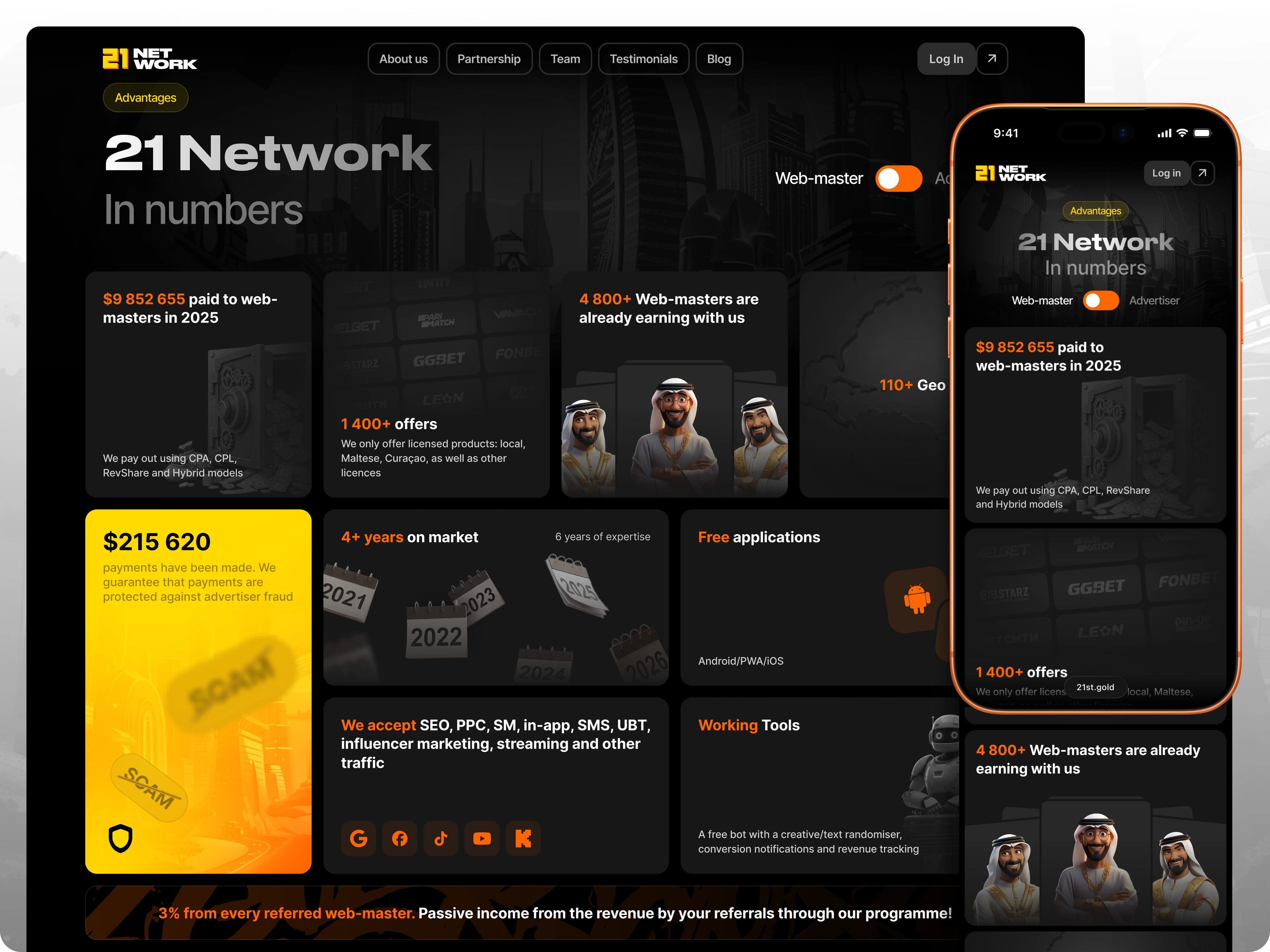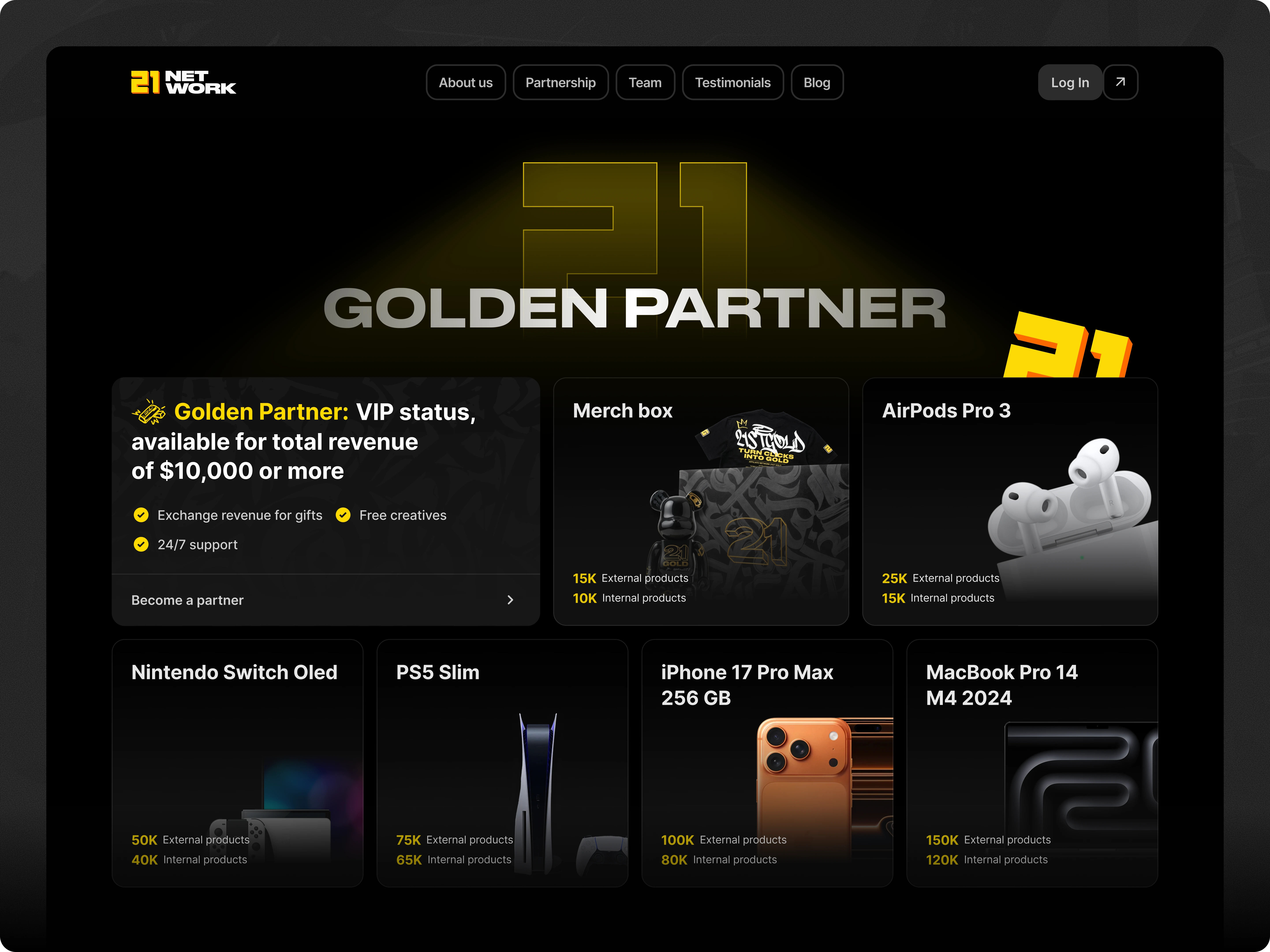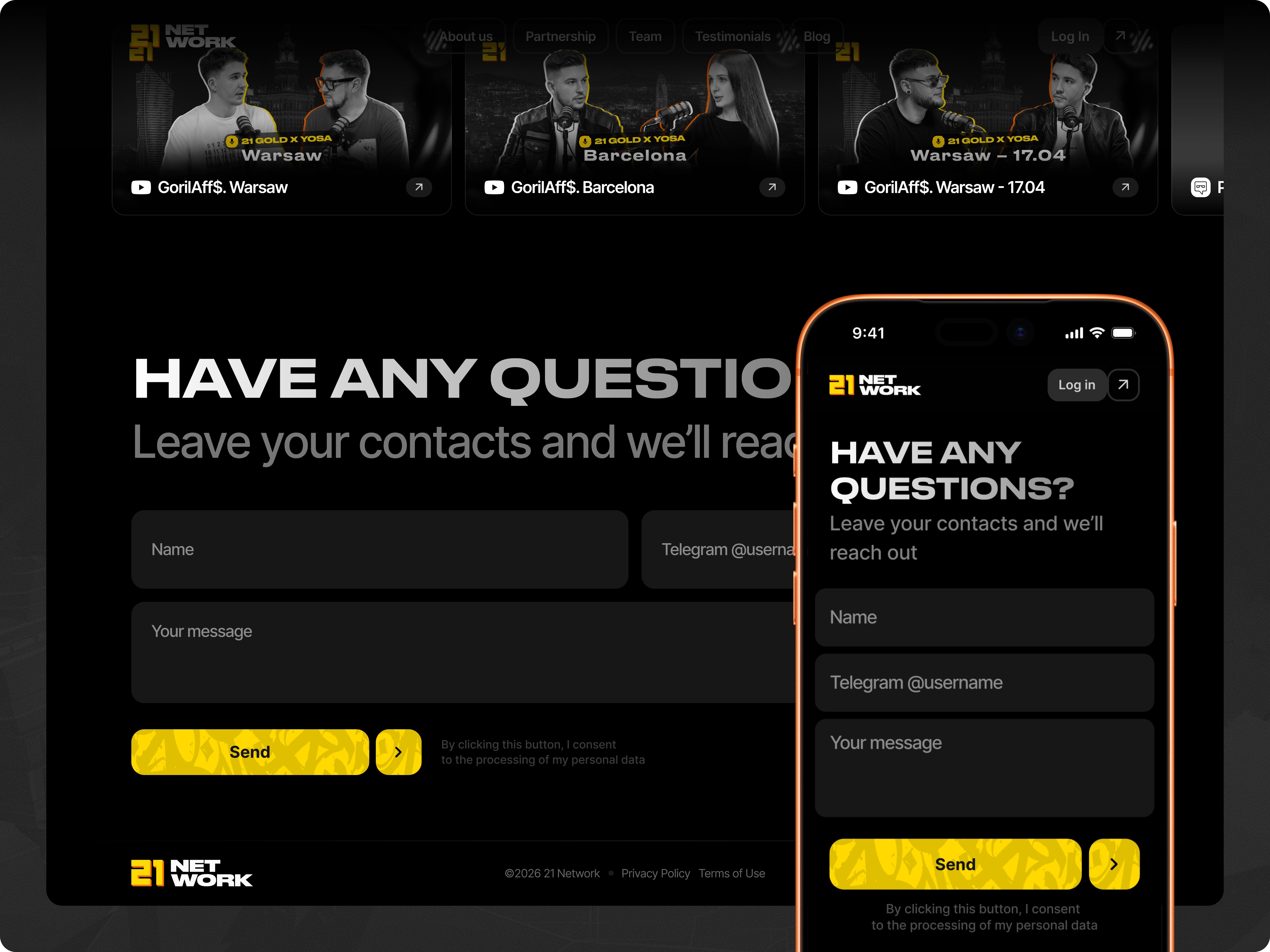 From blank canvas to live site – full redesign of 21 Network: new identity, UX flow, UI in Figma, built in Framer with custom illustrations and motion.