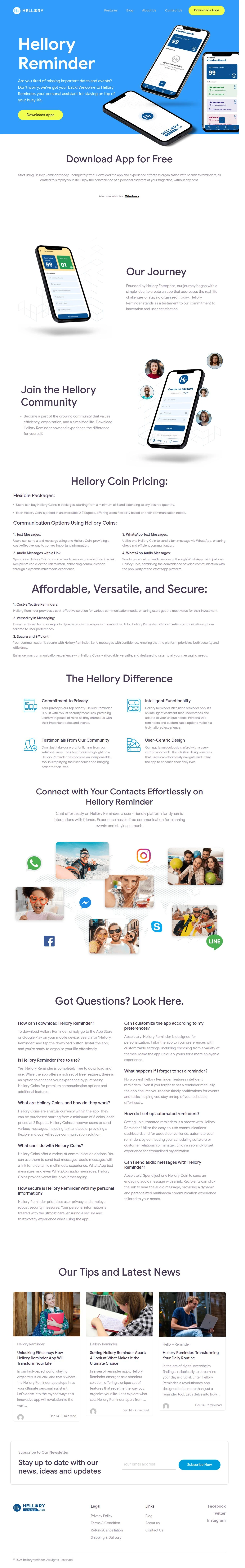Content: HelloRy Reminder simplifies your schedule by sending timely alerts for appointments, tasks, and events. Our smart reminder system helps you stay organized, reducing missed deadlines and boosting productivity. Whether personal or professional, HelloRy adapts to your needs with easy setup and seamless notifications. Stay ahead effortlessly with our intuitive platform.