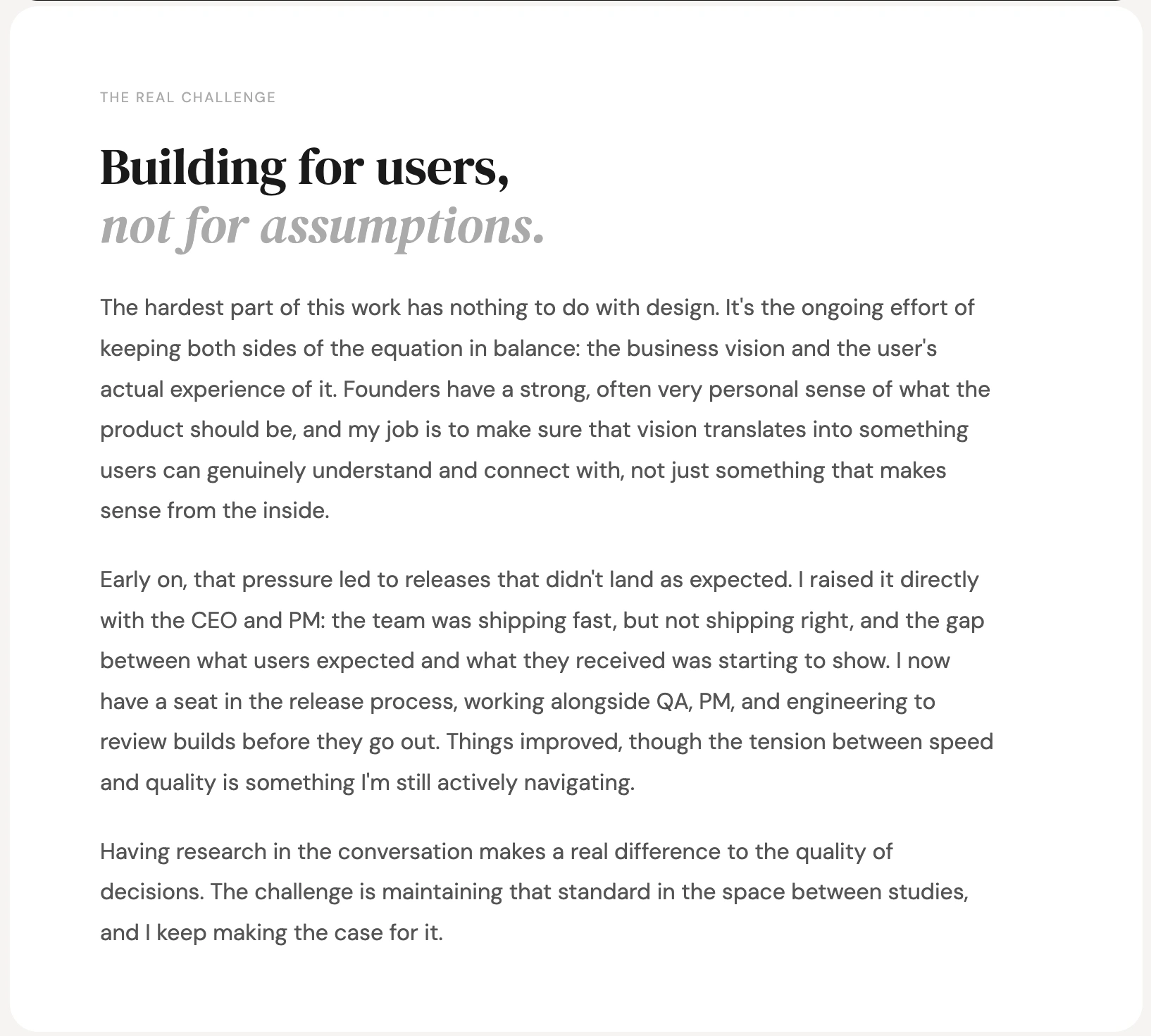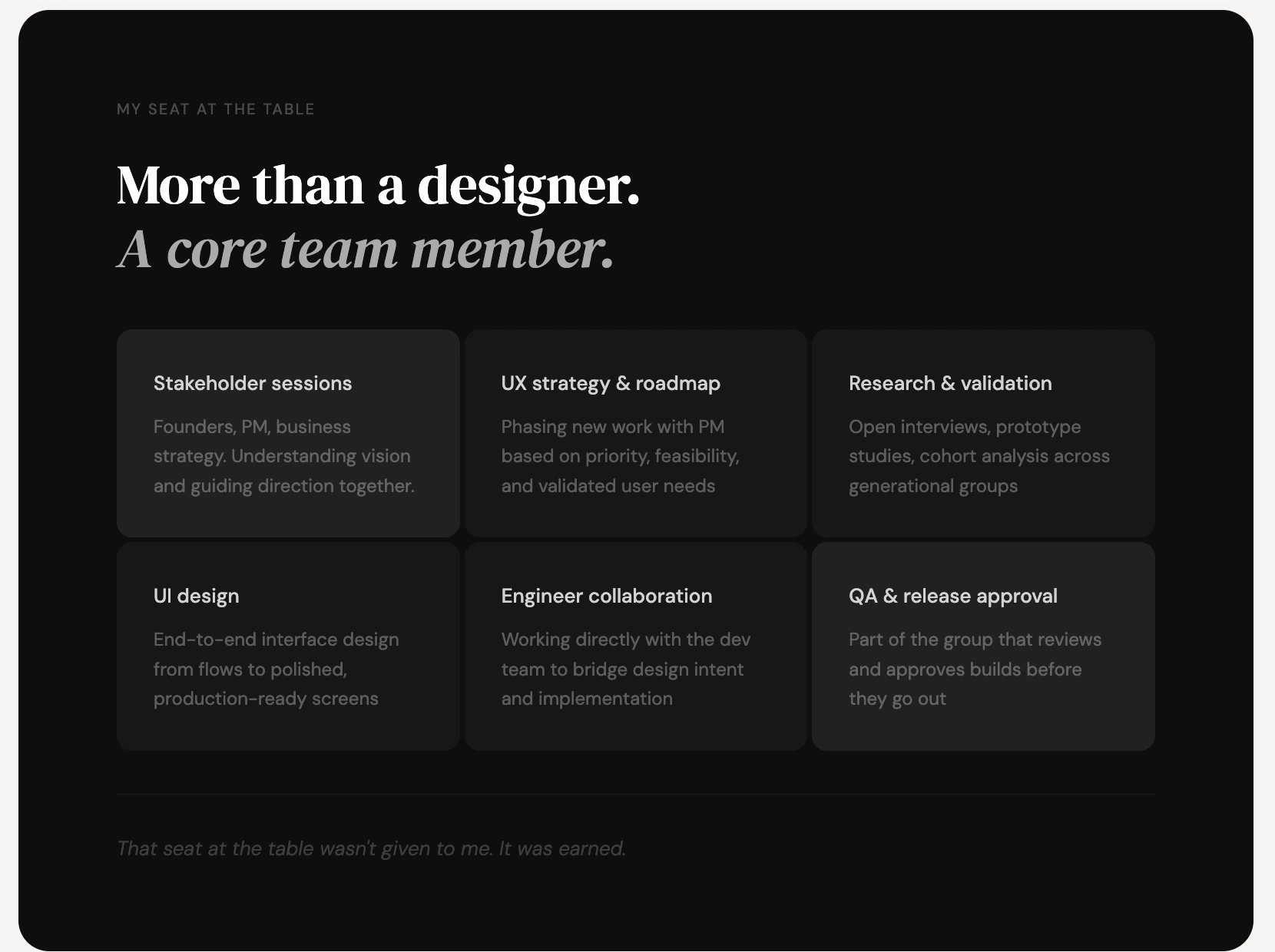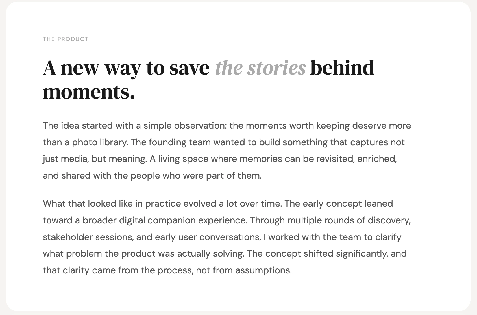 2-year design partnership on a consumer mobile app in beta. Led UX strategy, research, prototype validation and UI design. Worked embedded with founders, PM and engineering from early concept to launch.