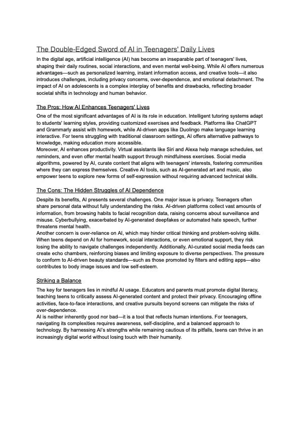 Translating example about teenager and the developing with AI
