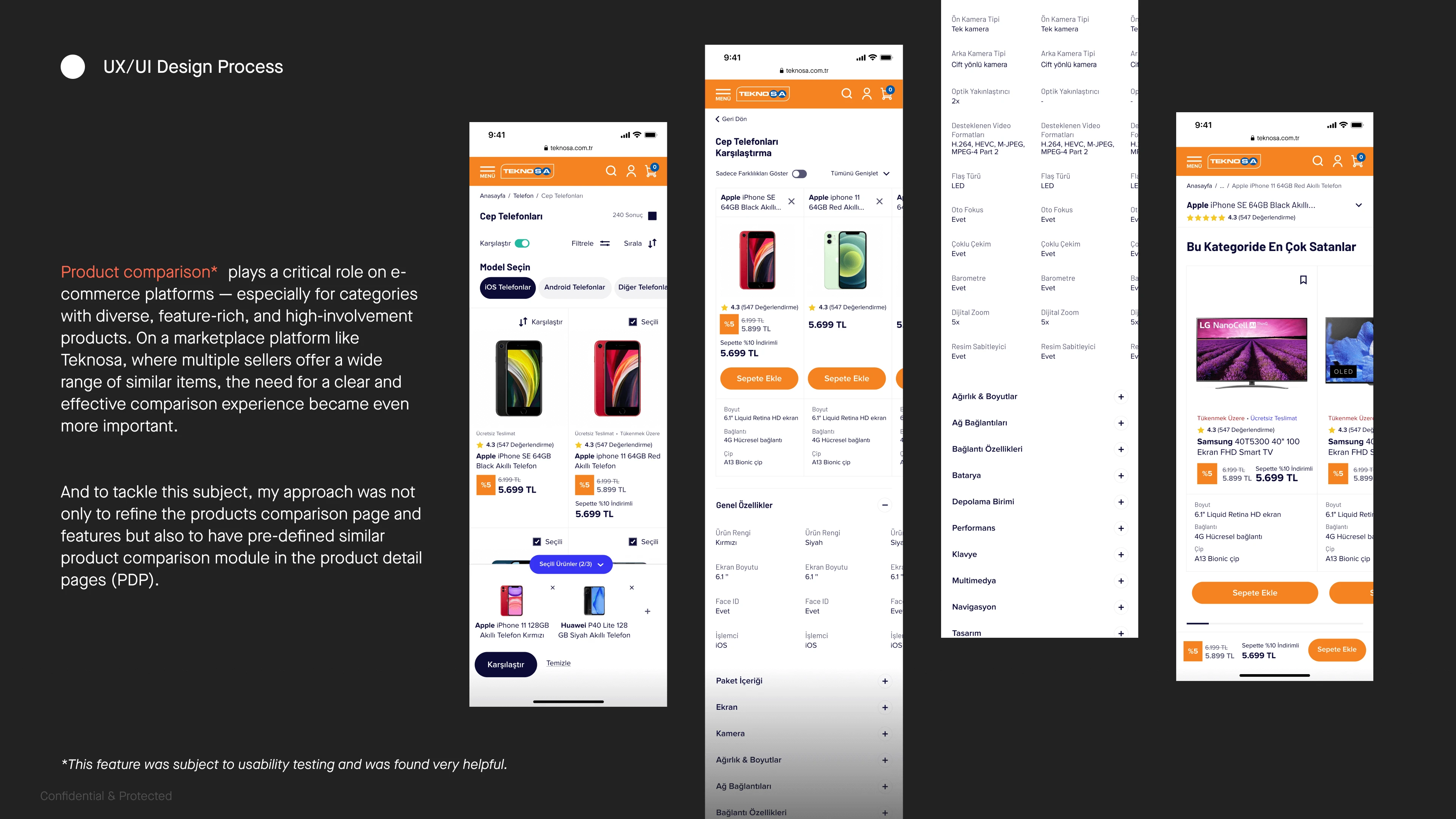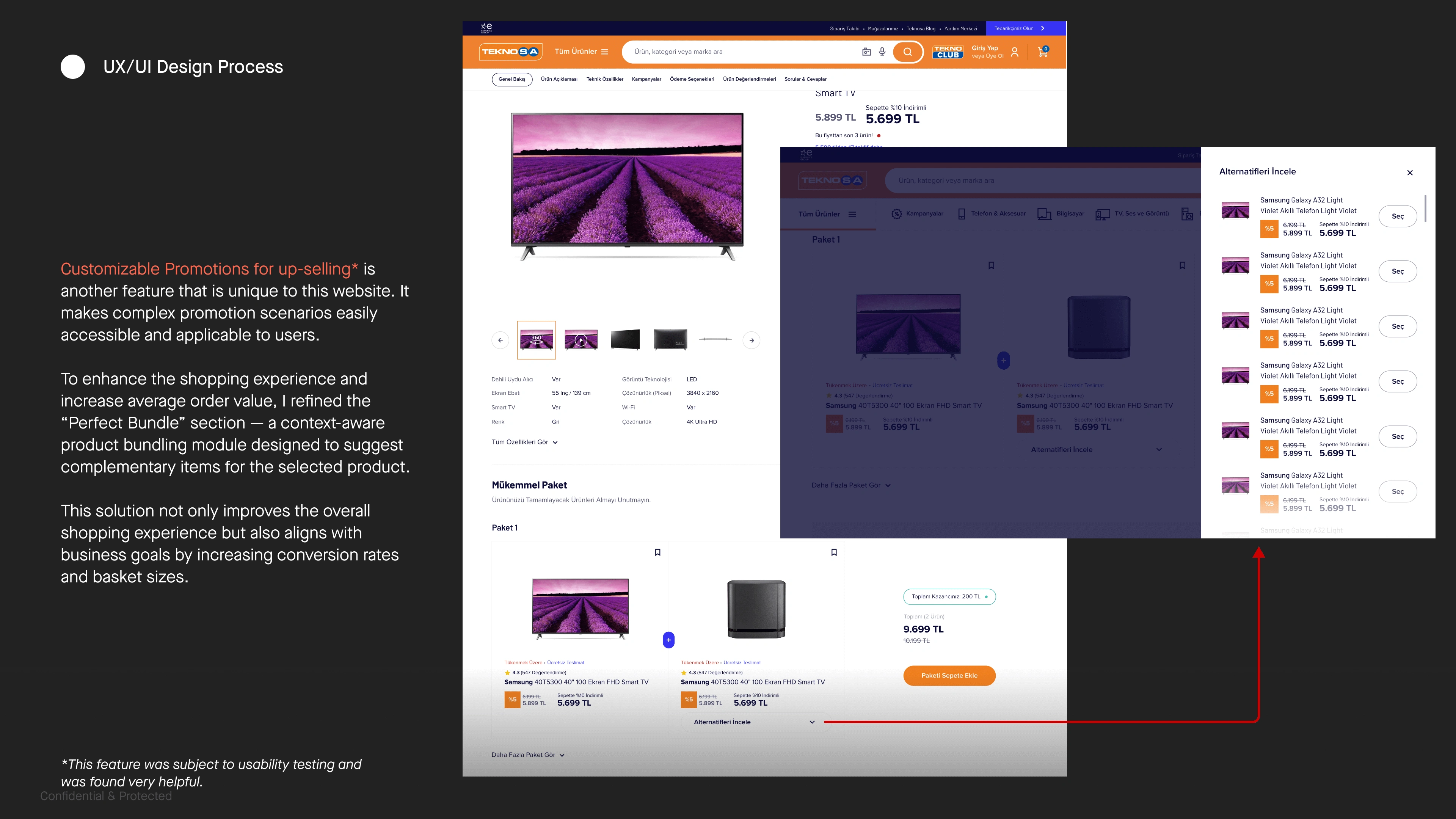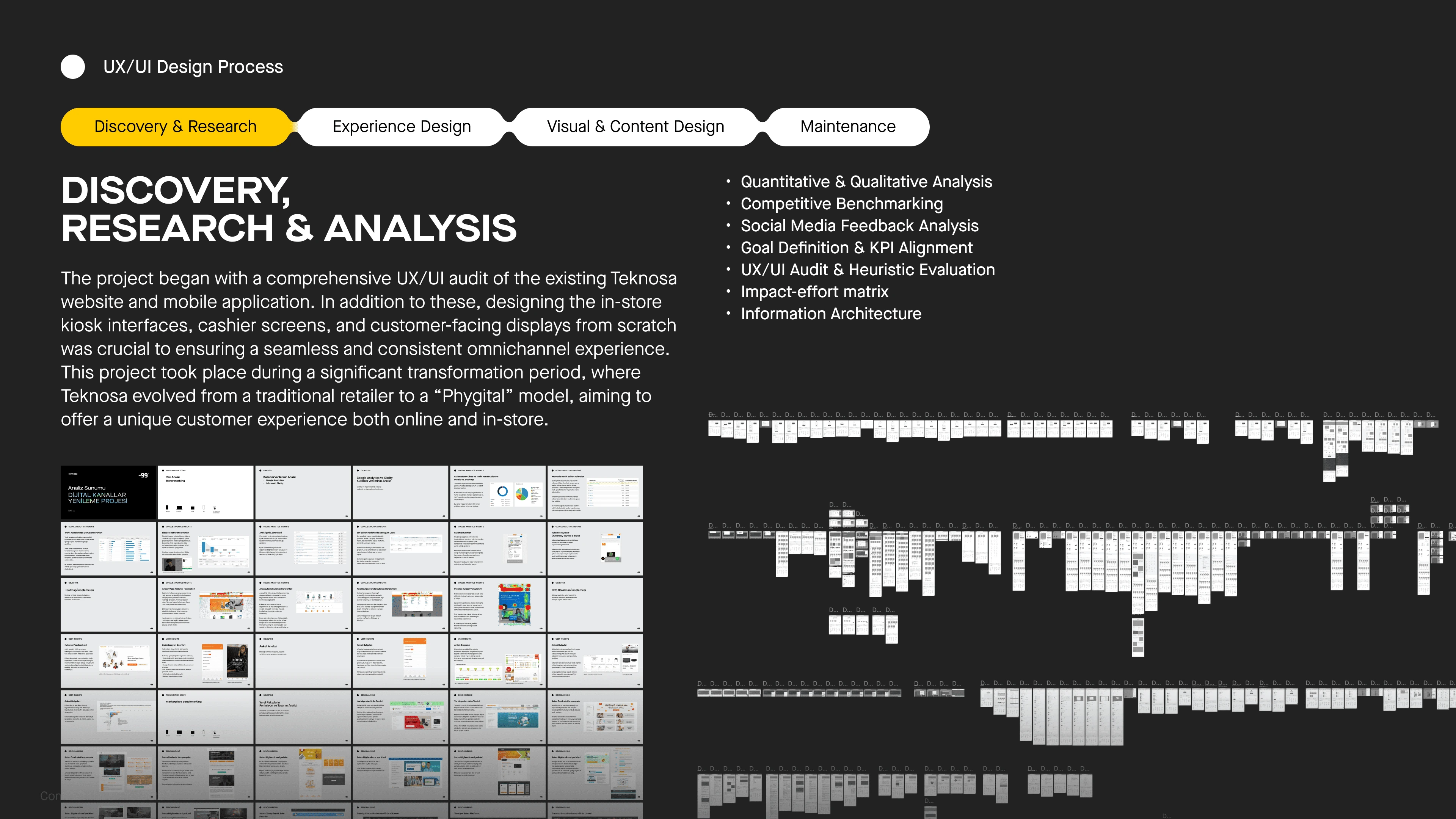Based on their takeaways, the project began with a comprehensive UX/UI audit of the existing Teknosa website and mobile application. In addition to these, designing the in-store kiosk interfaces, cashier screens, and customer-facing displays from scratch was crucial to ensuring a seamless and consistent omnichannel experience. This project took place during a significant transformation period, where Teknosa evolved from a traditional retailer to a “Phygital” model, aiming to offer a unique customer experience both online and in-store.