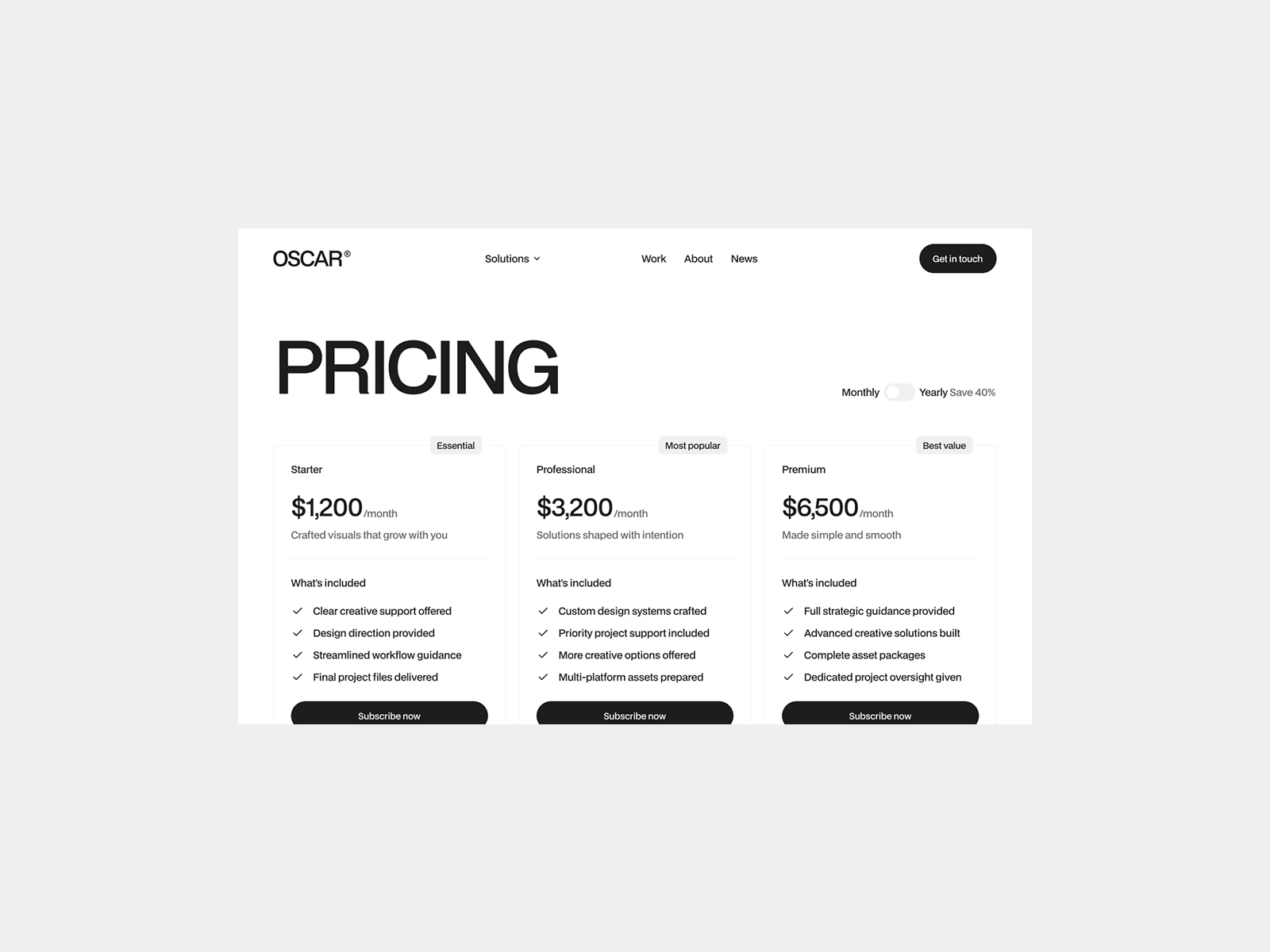 Create a modern website for creative agencies that tells their brand story in an engaging, focused way. The challenge was building an interactive experience that captivates without overwhelming, striking the balance between dynamic and distracting.