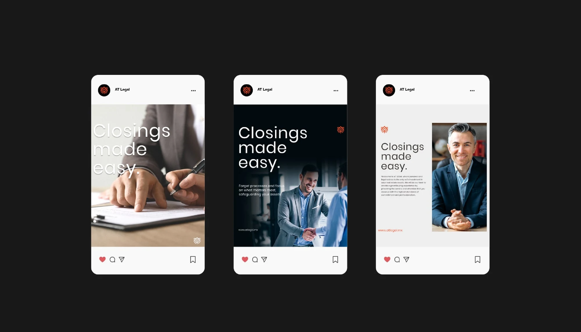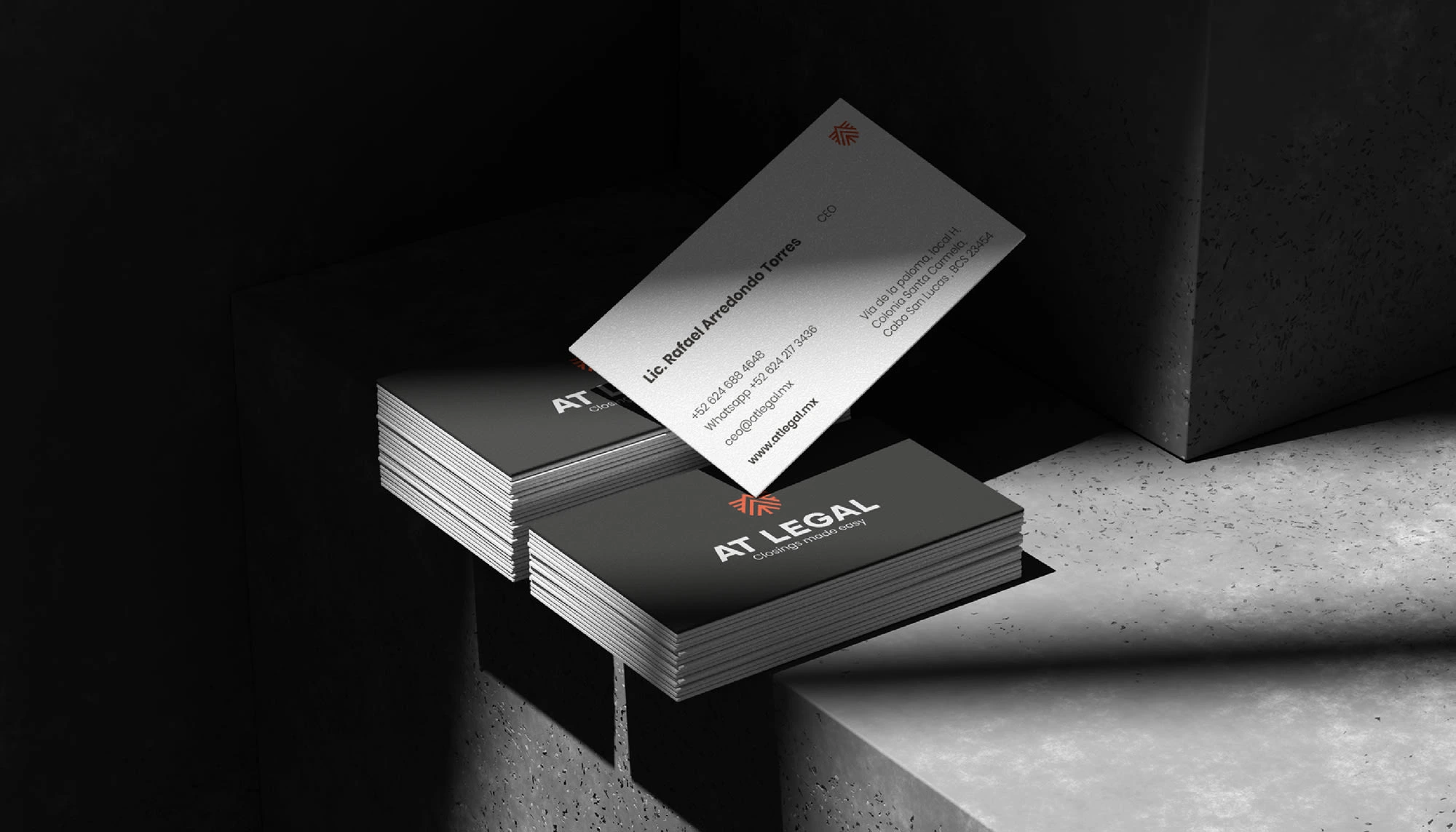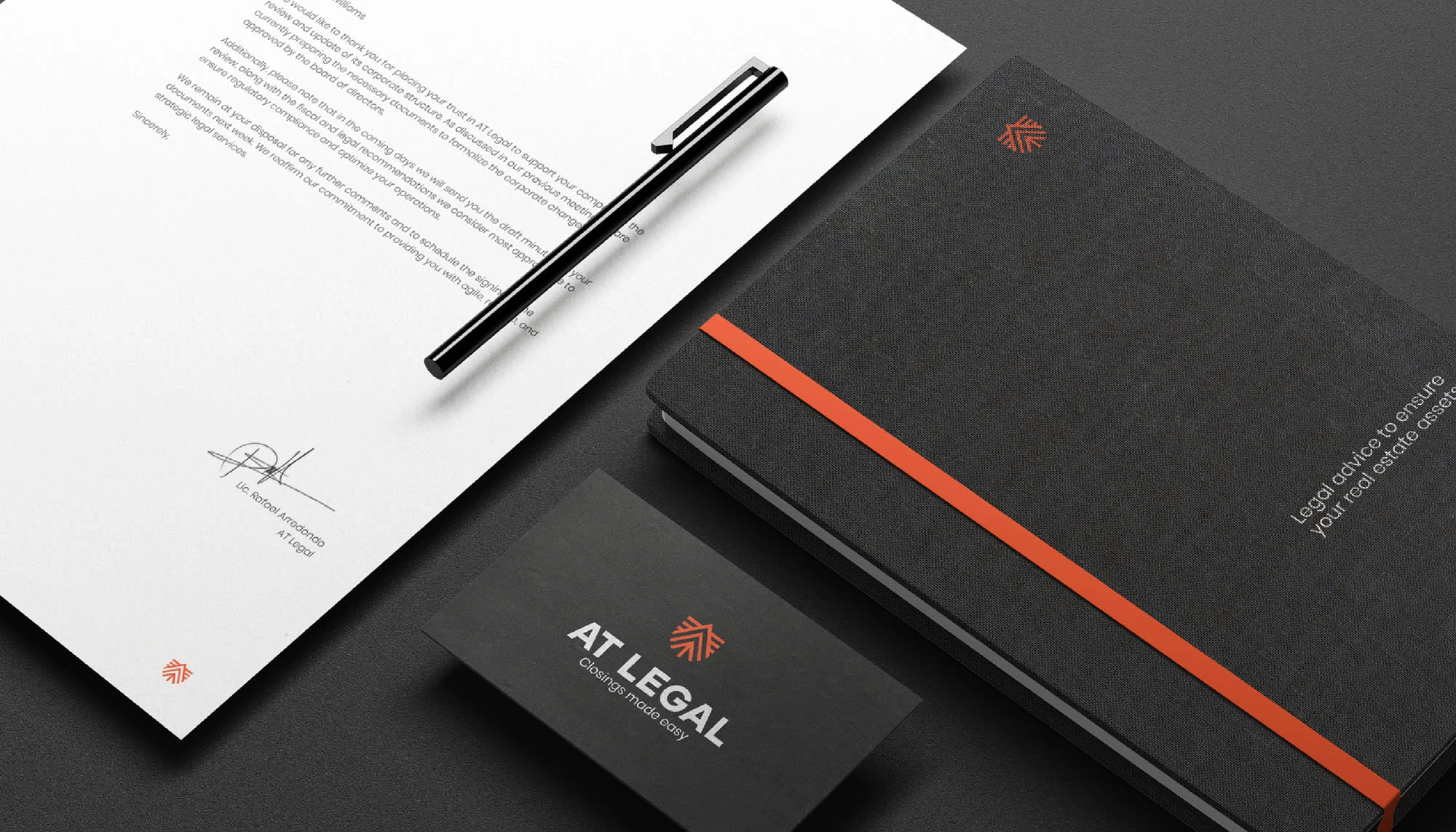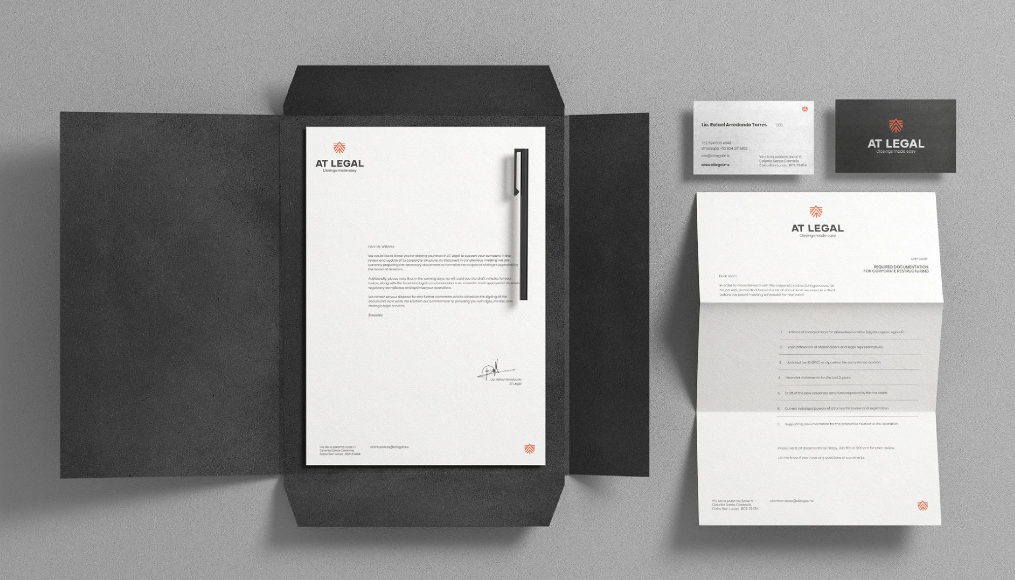 Brand strategy & identity for AT Legal, a law firm. A refined system that conveys credibility, clarity & professionalism.