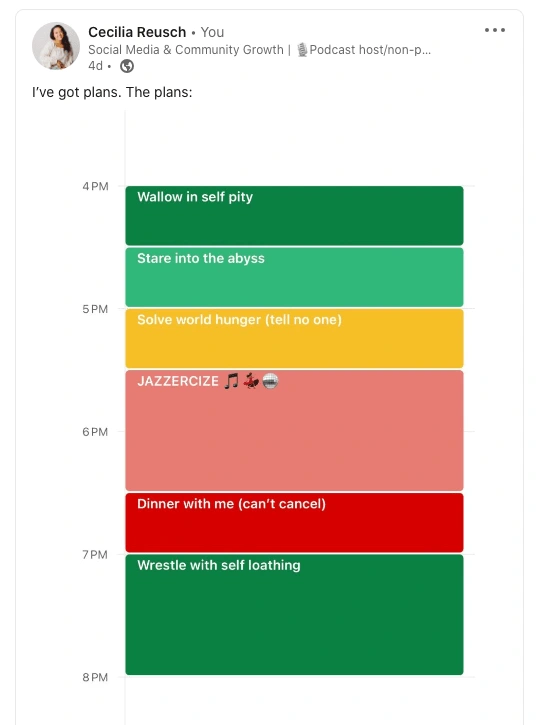 Linkedin is a melting pot. Corporate jargon to your left, candid crying to your right. It's a playground I can't get enough of.