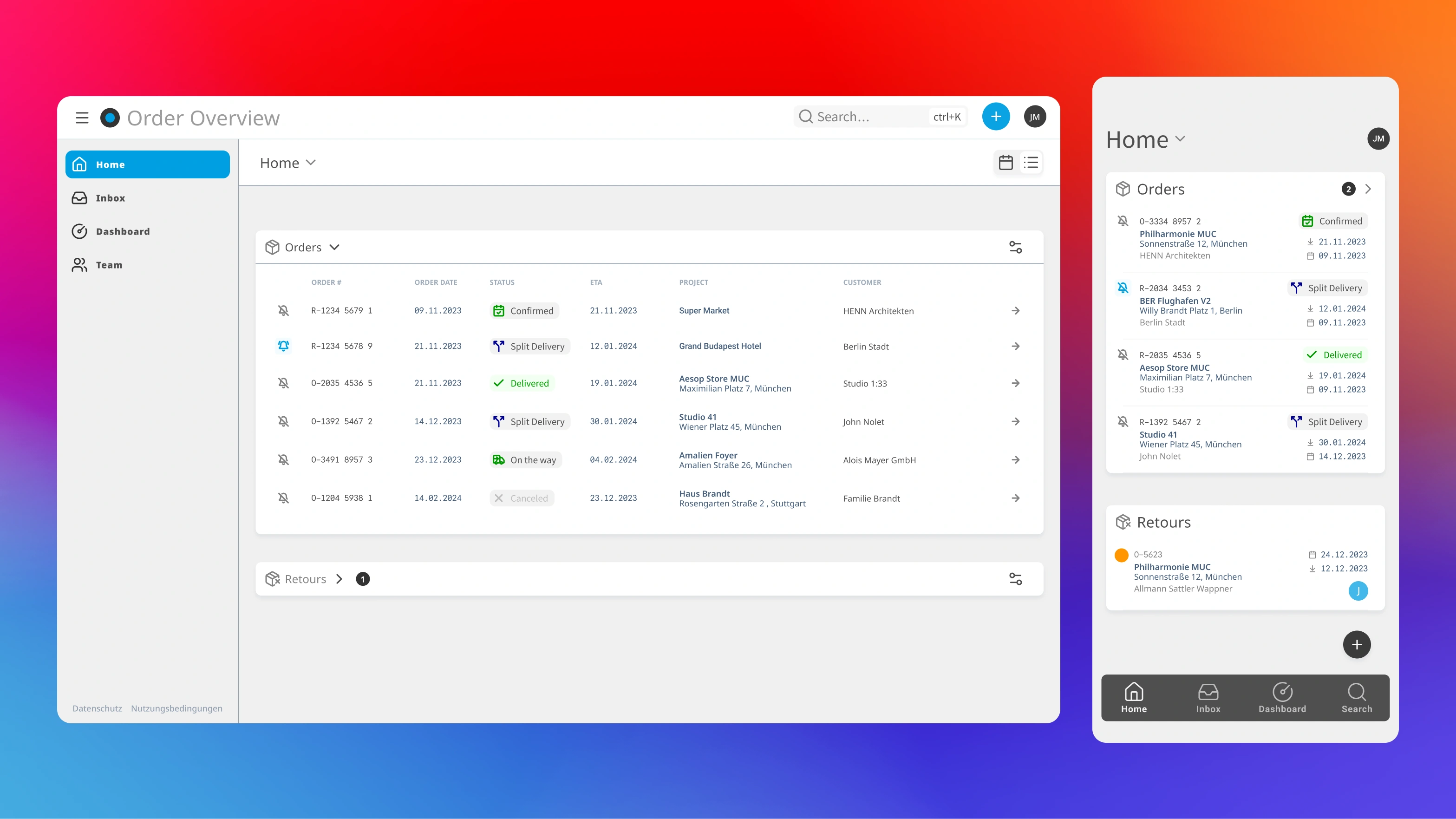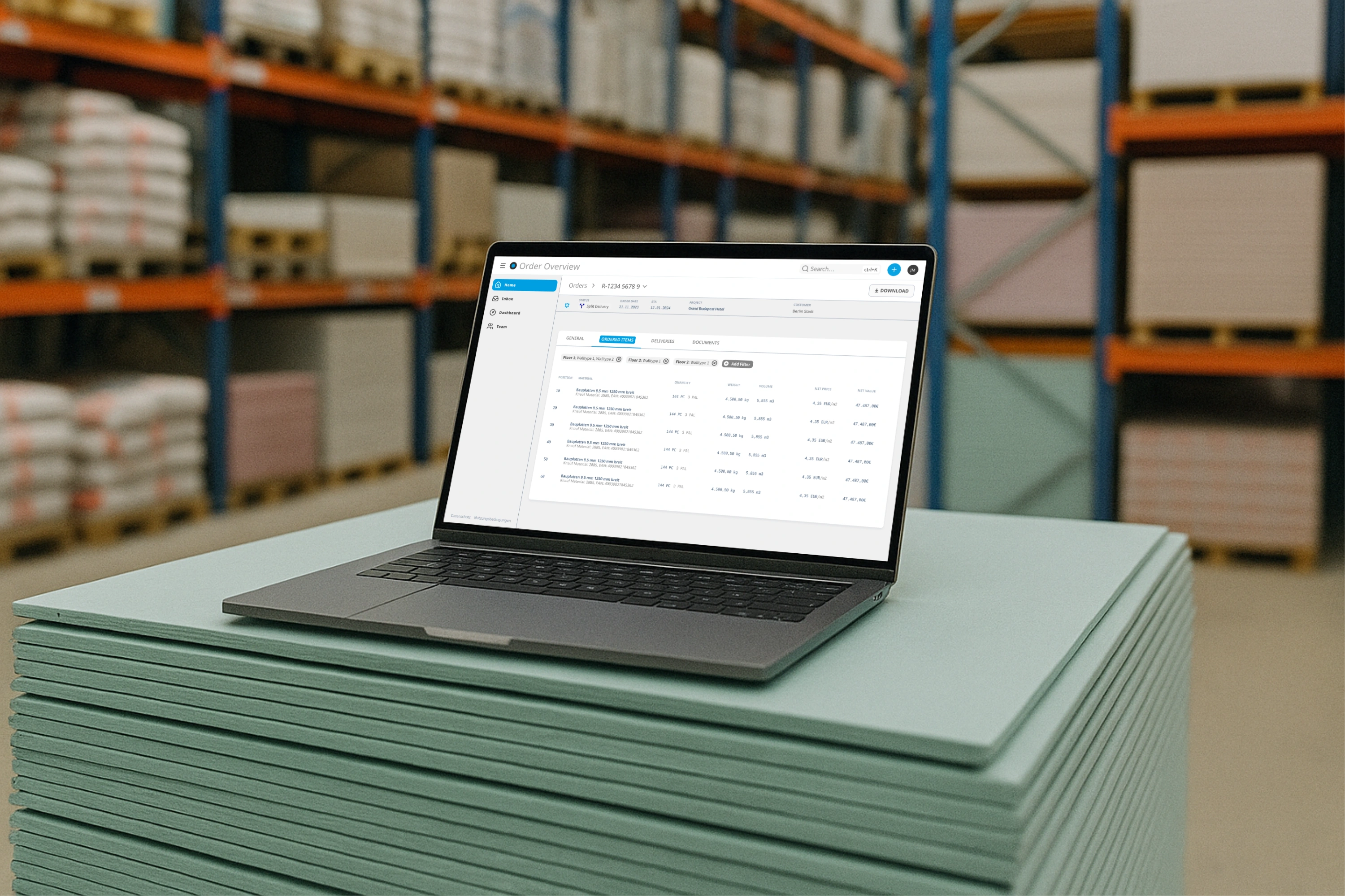 B2B SaaS order tracking platform for global leader in the construction industry. Helping construction applicators & dealers manage logistics and warehouse.