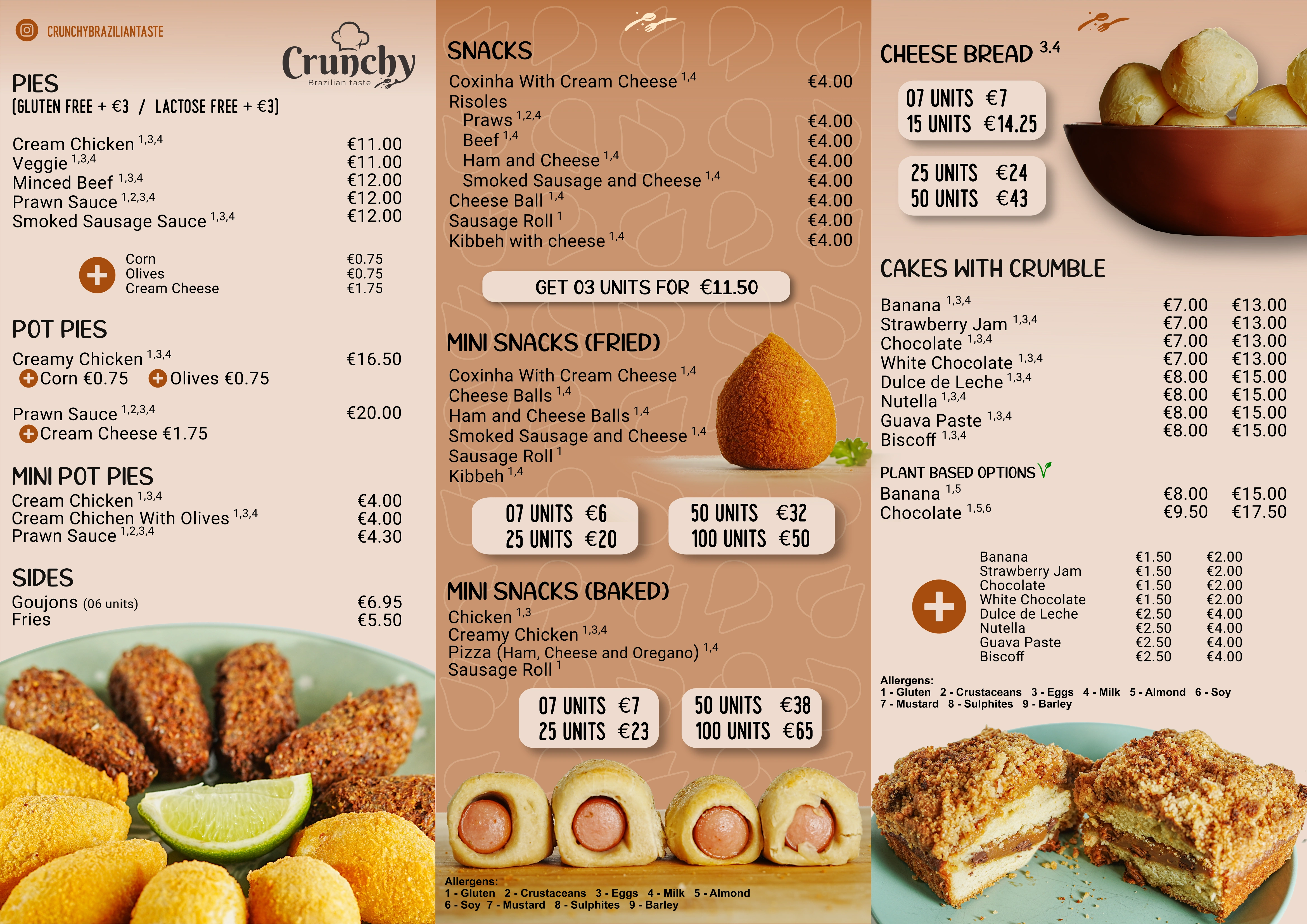 Professional design for menus, brochures, flyers, and printed marketing materials created for restaurants, cafés, and hospitality brands across Dublin.