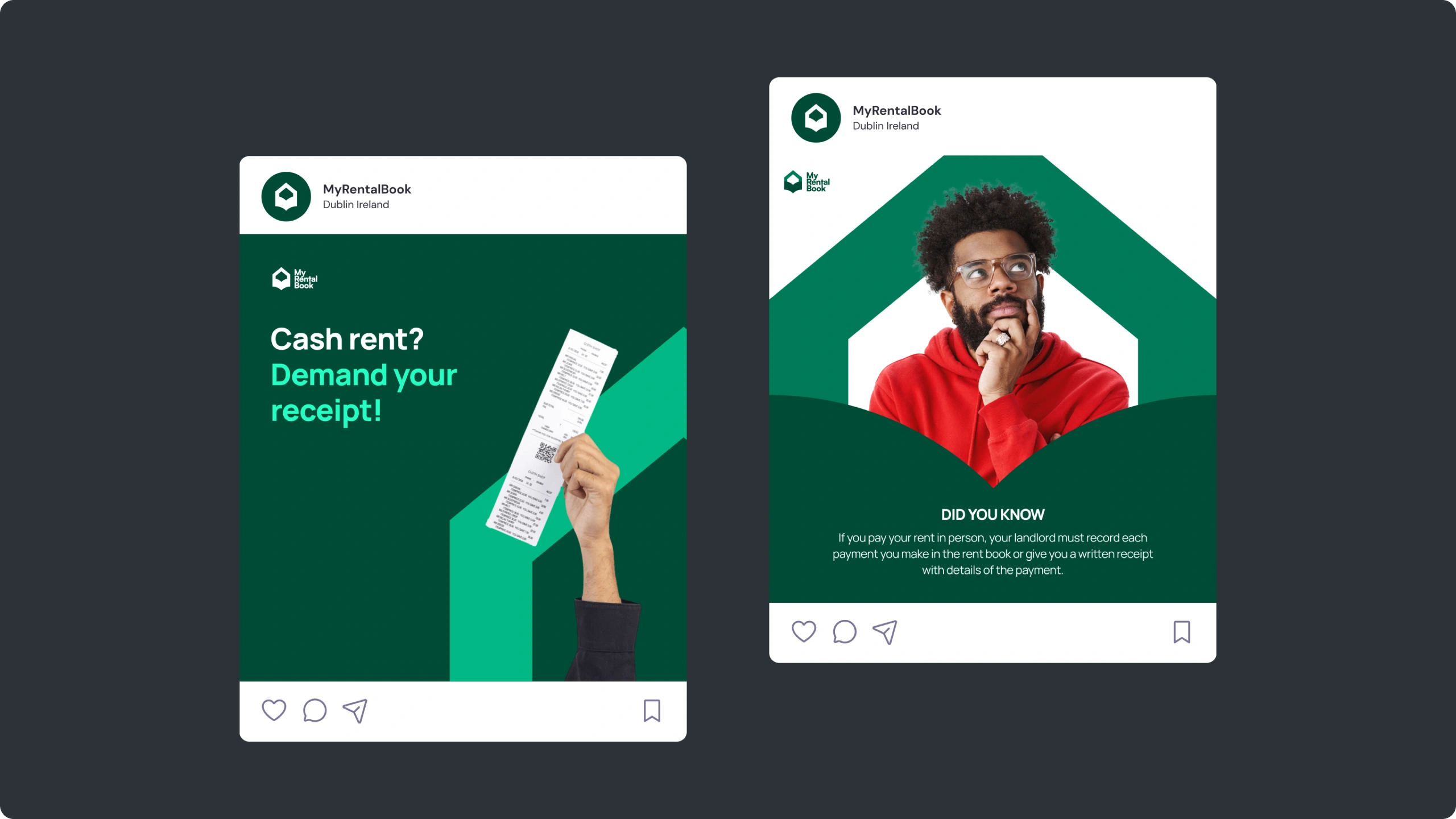 Translated brand sensibility into social media designs that highlighted key benefits, online rent tracking, tenant-landlord communication, and legal compliance. The tone was approachable yet confident.