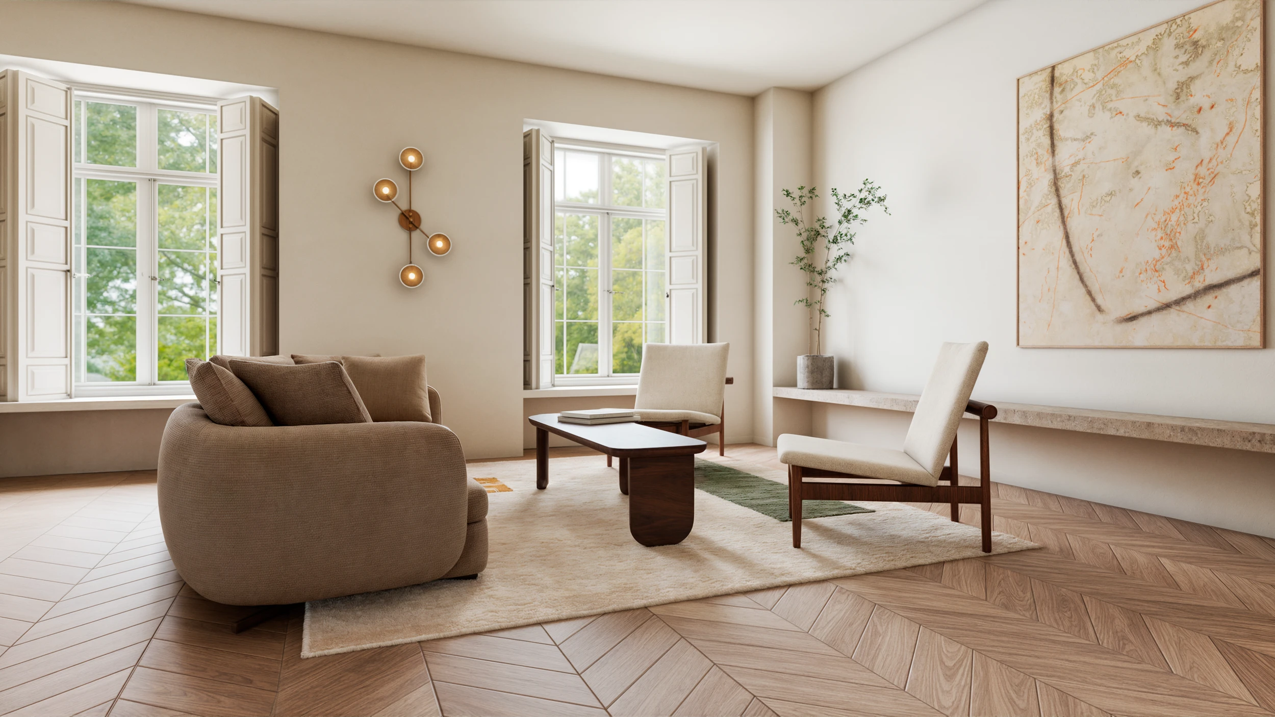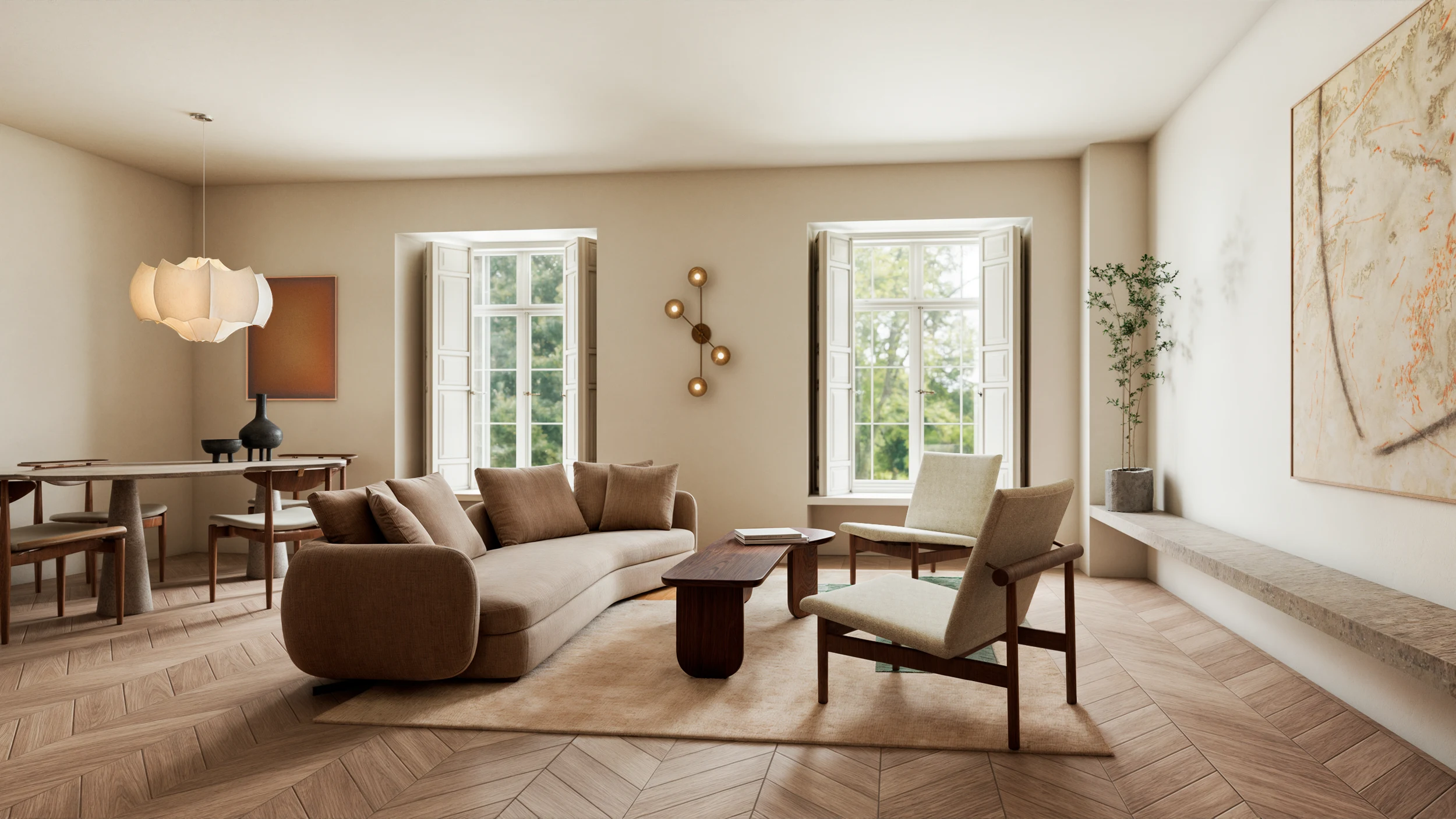 For this project, I was hired to design and visualize the interiors of a cozy, minimalist apartment located in Paris. The apartment featured a compact layout, so the design focused on optimizing space without sacrificing warmth or elegance.