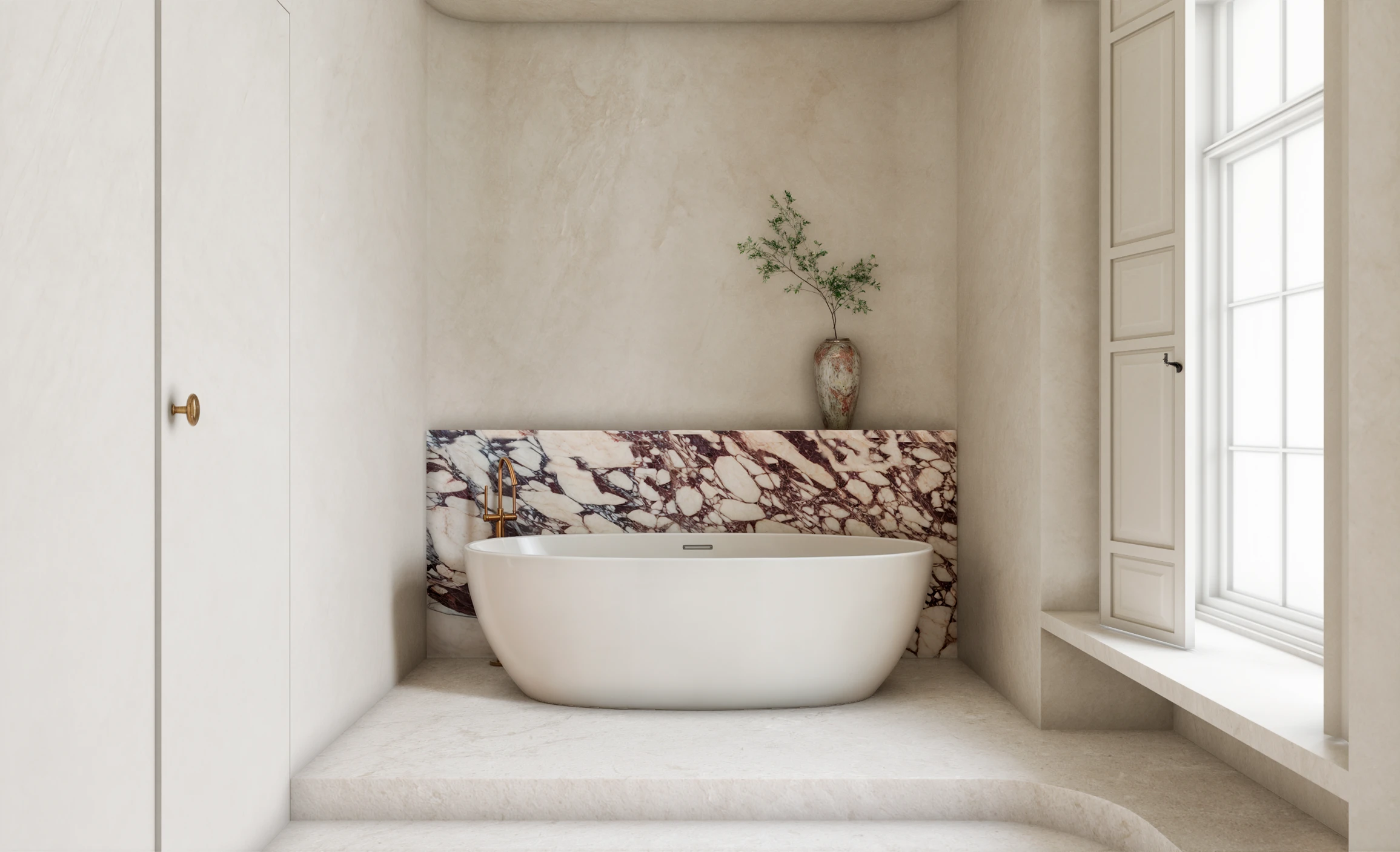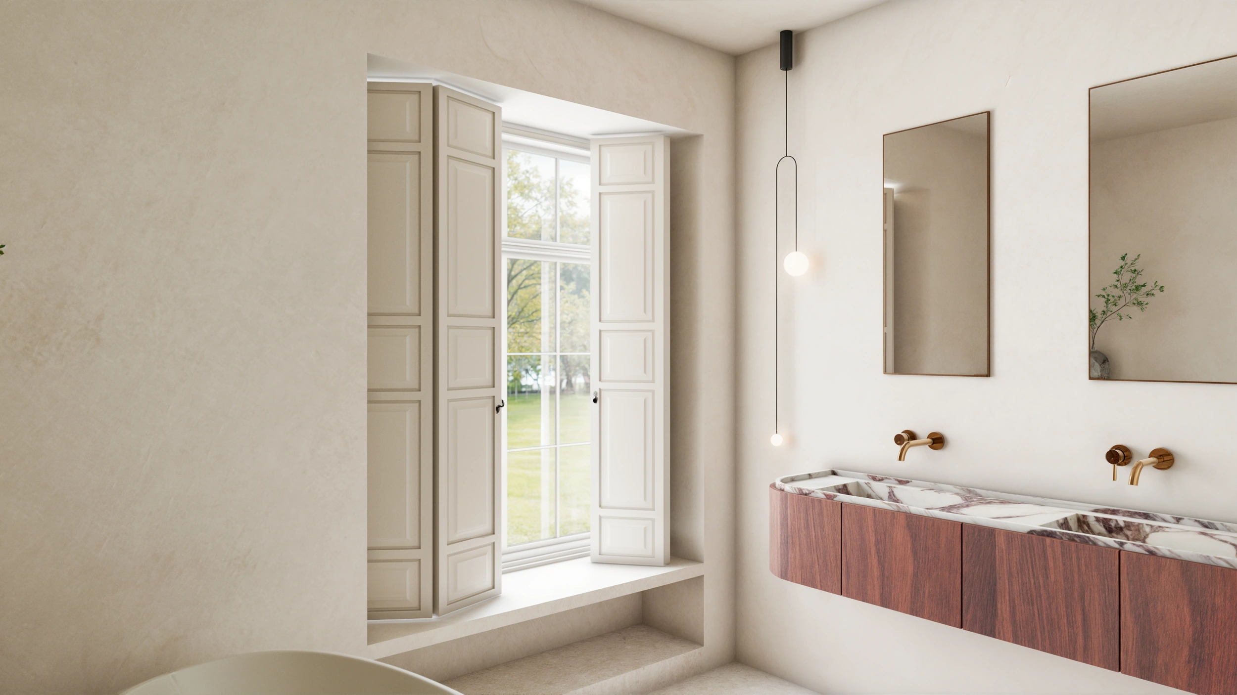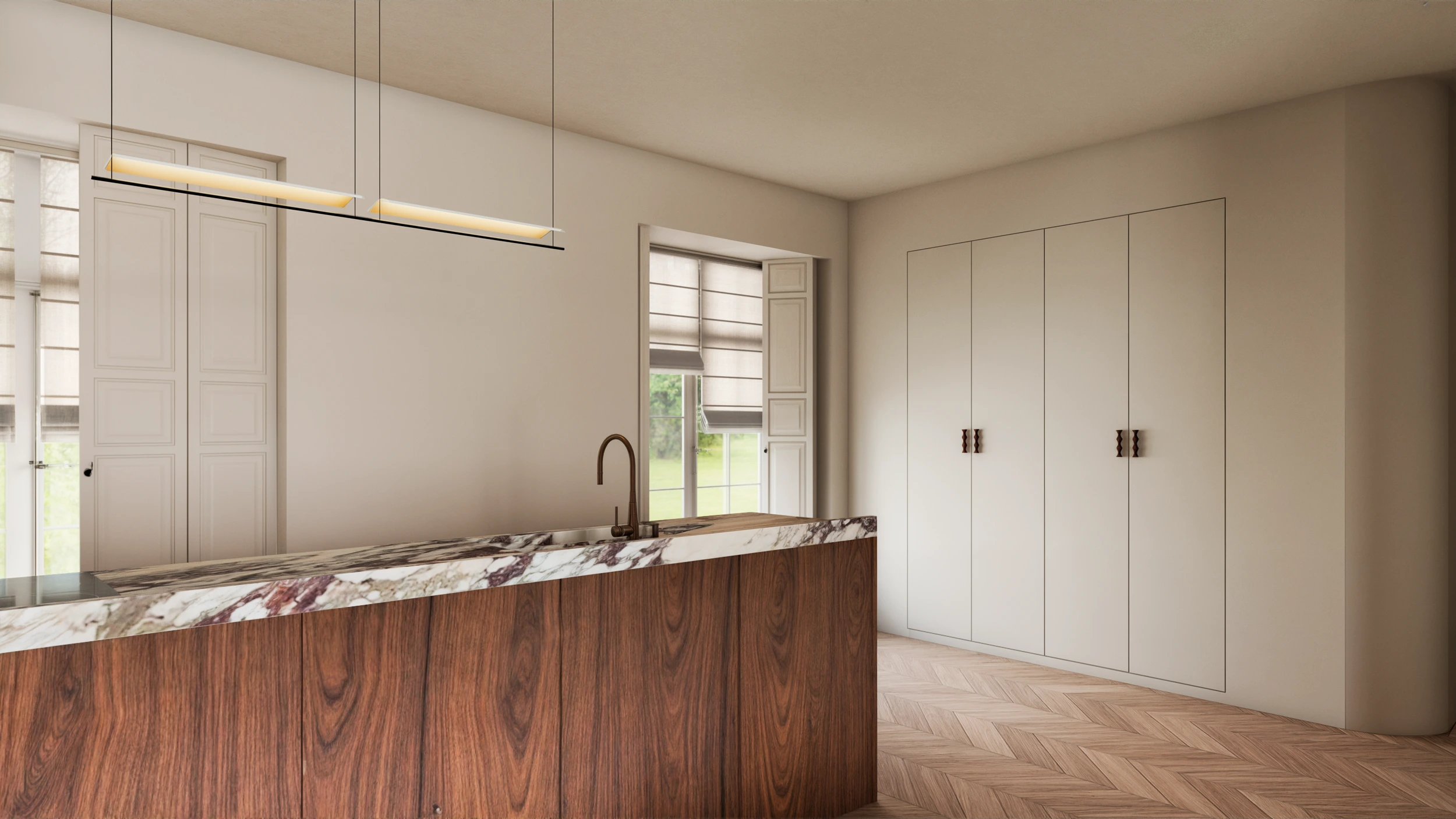 Photorealistic 3D renders were created to present the full design proposal, helping the client visualize the space and communicate the project's refined simplicity.