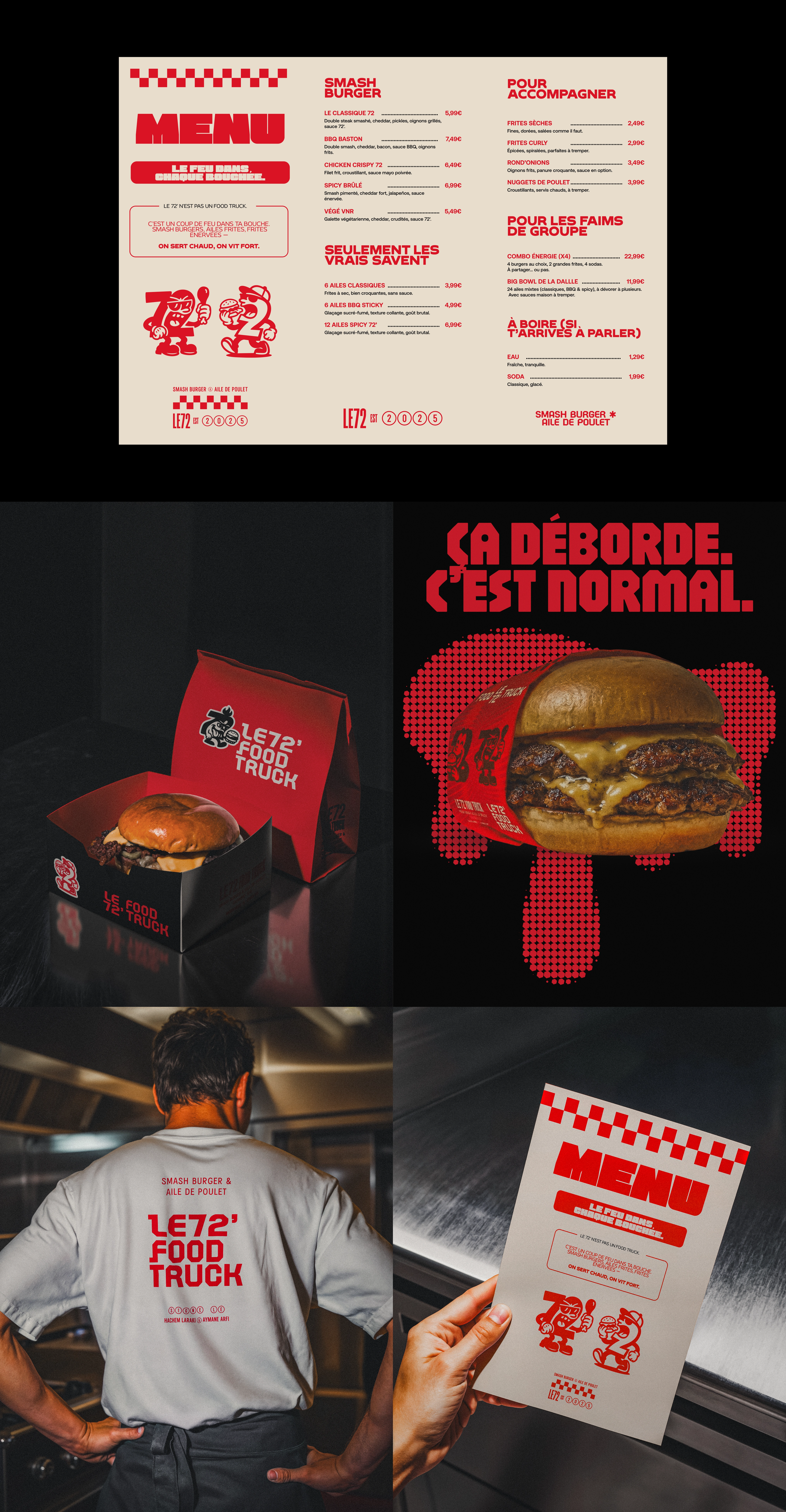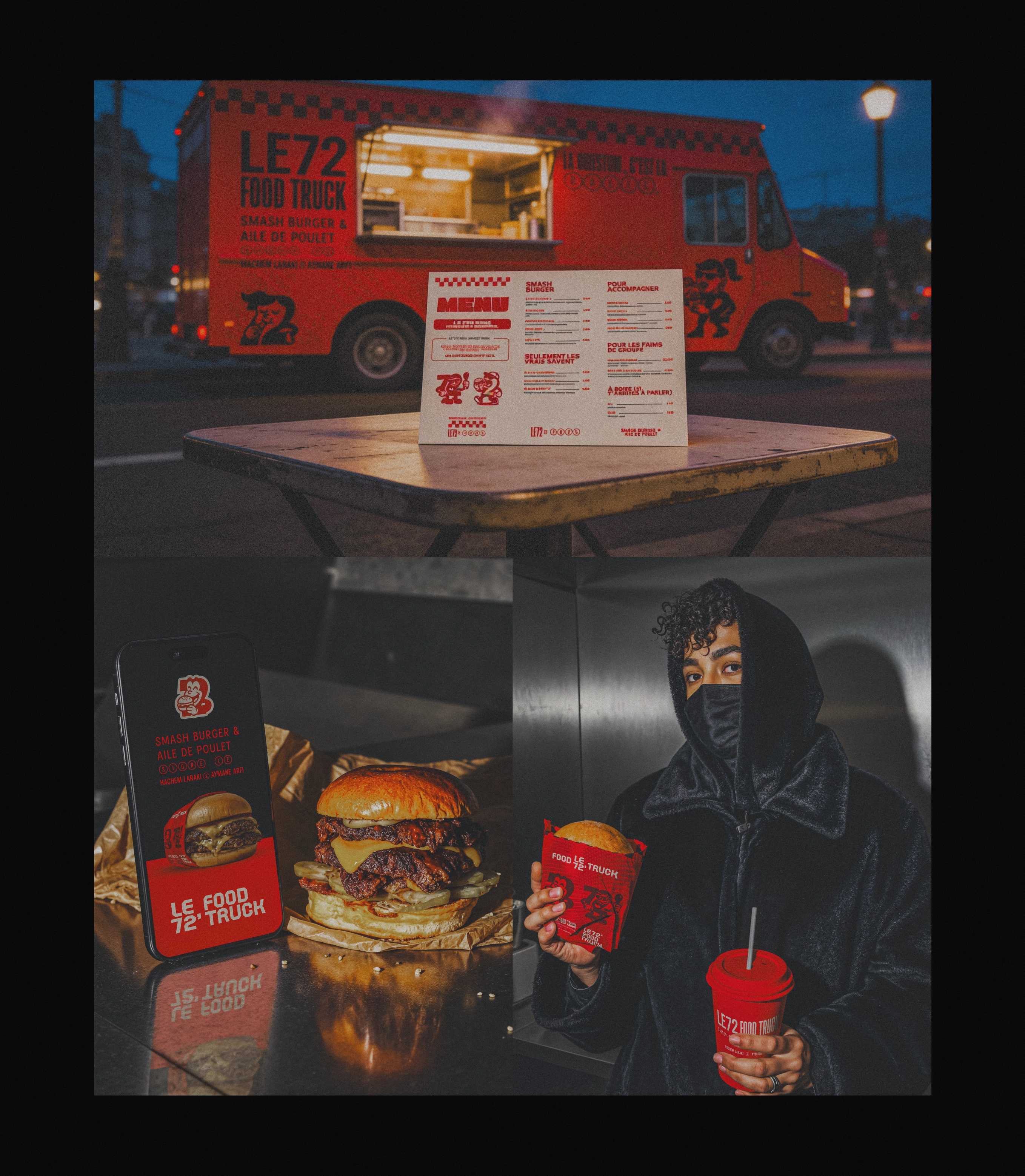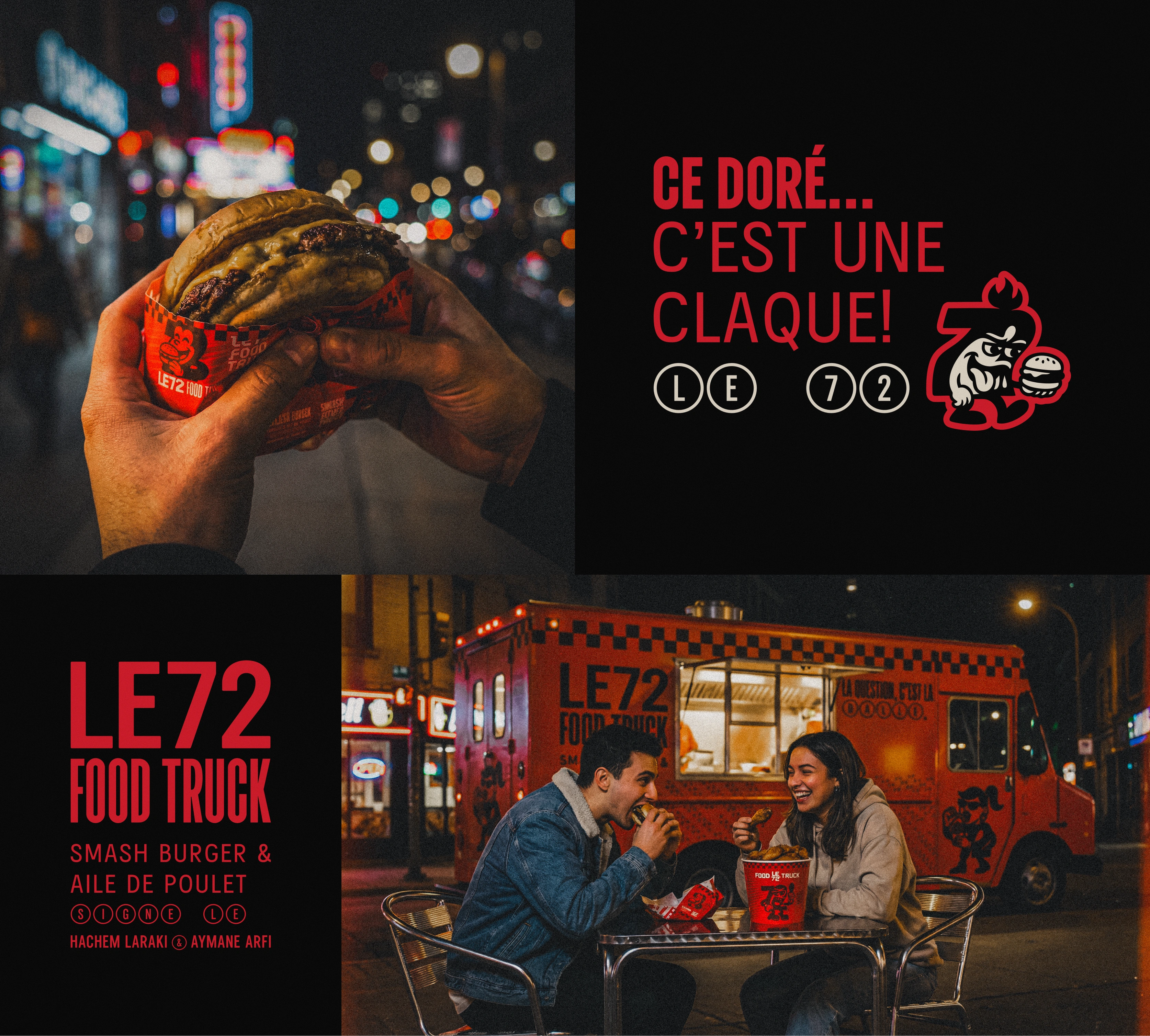 Le72’ Food Truck is a street food concept rooted in the nightlife of French cities, where food trucks become meeting points after dark. Focused exclusively on smash burgers and chicken wings, the brand exists in the space between street culture, everyday urban life, and shared moments on the pavement.
