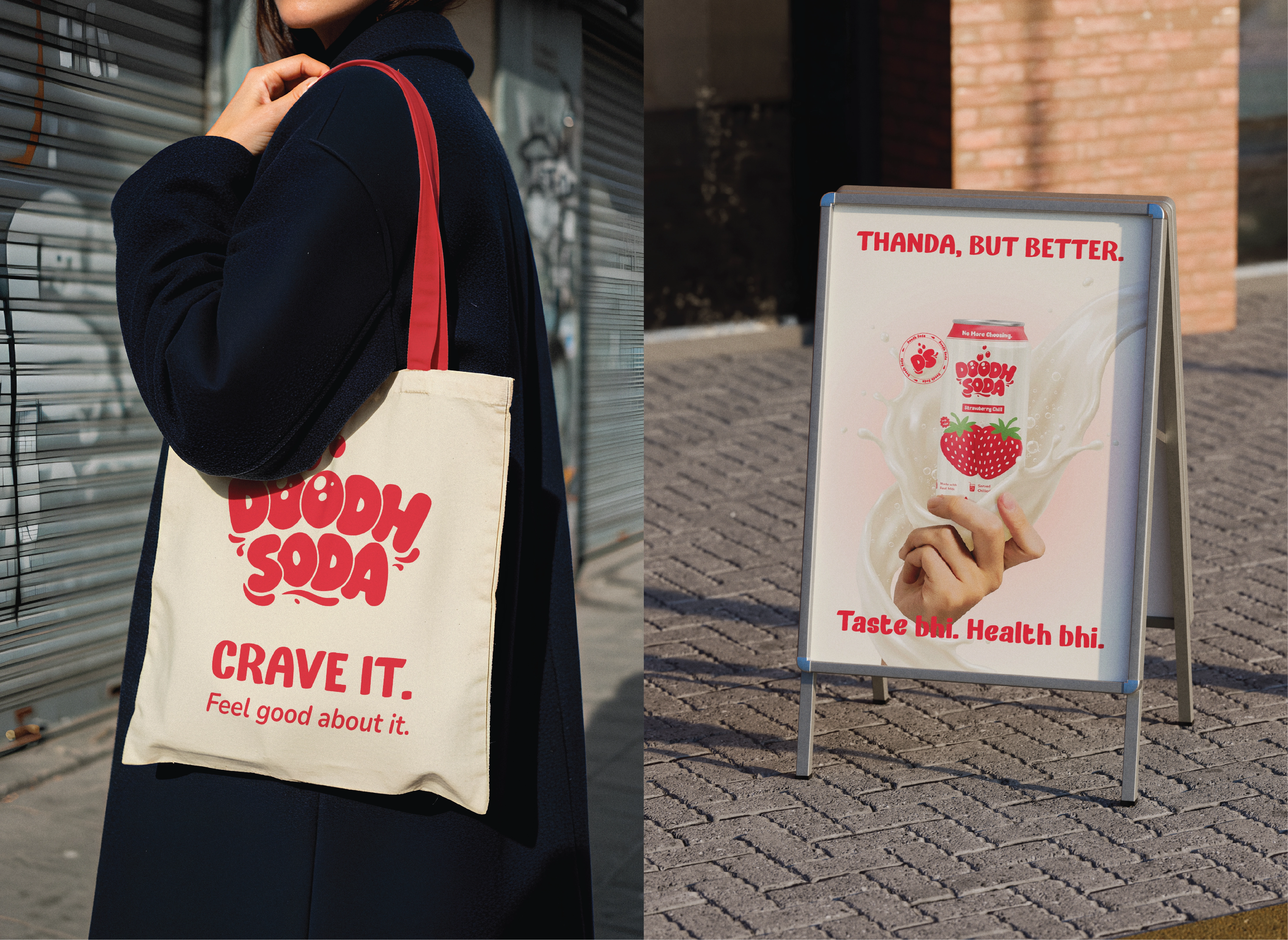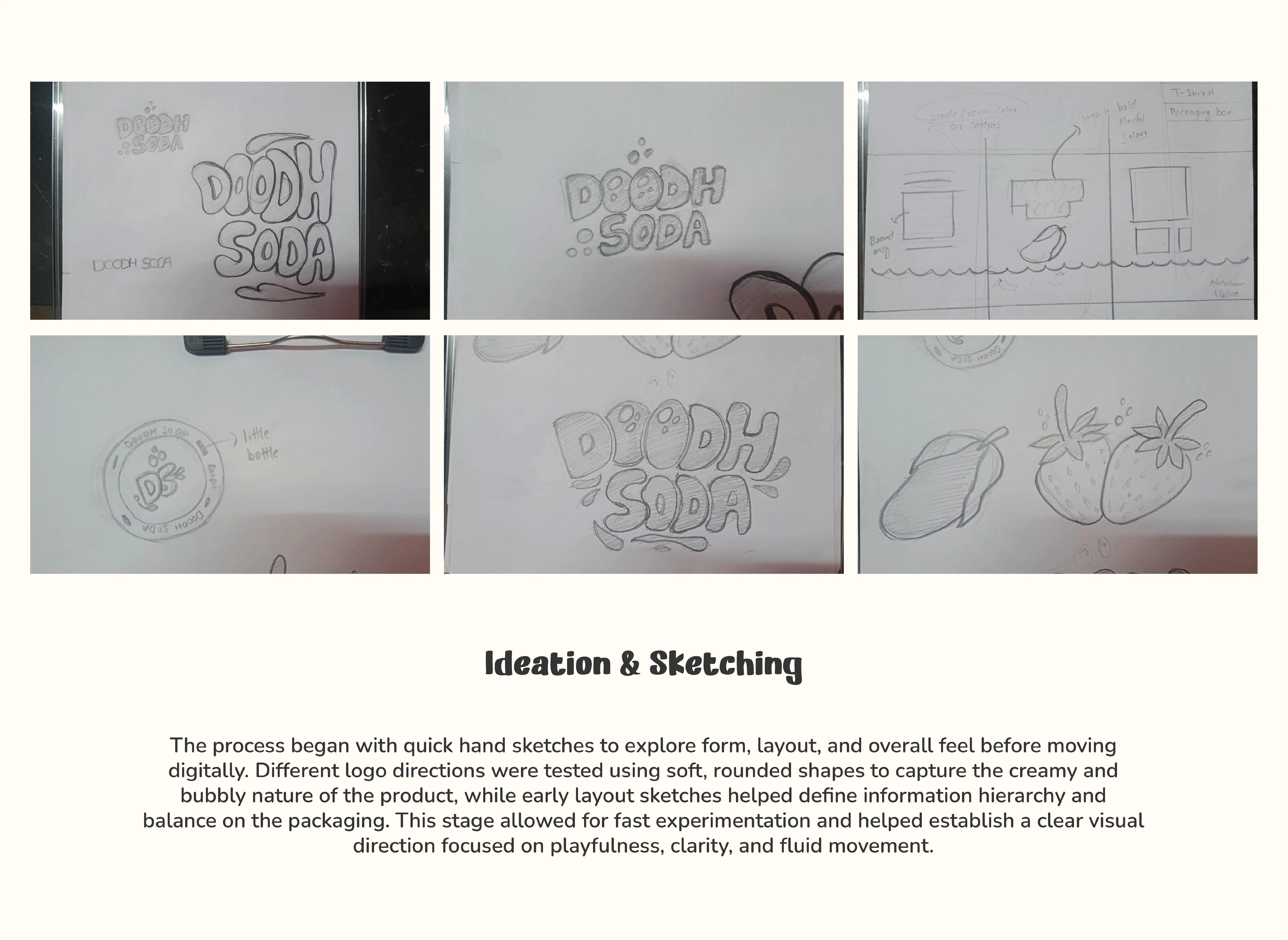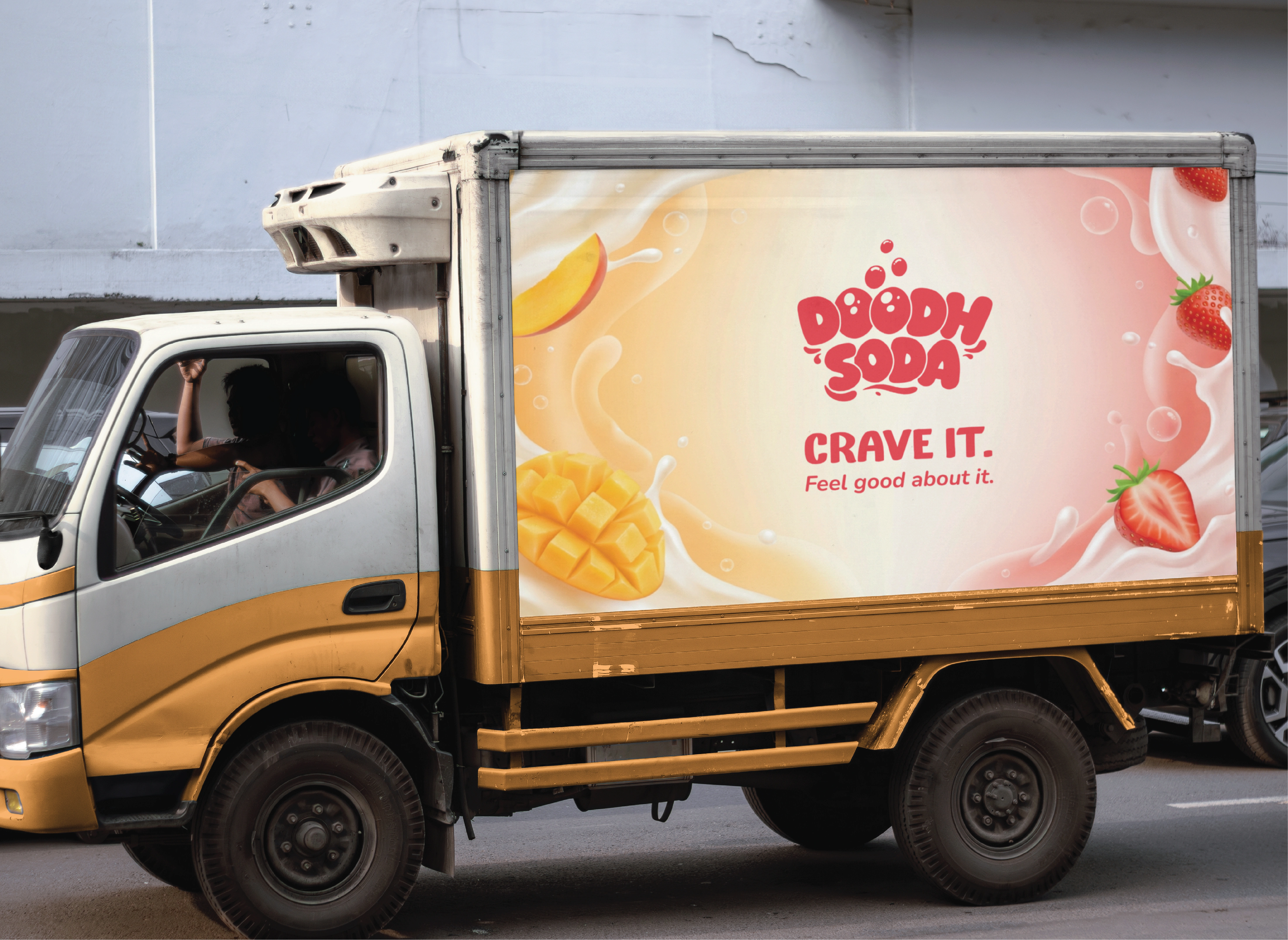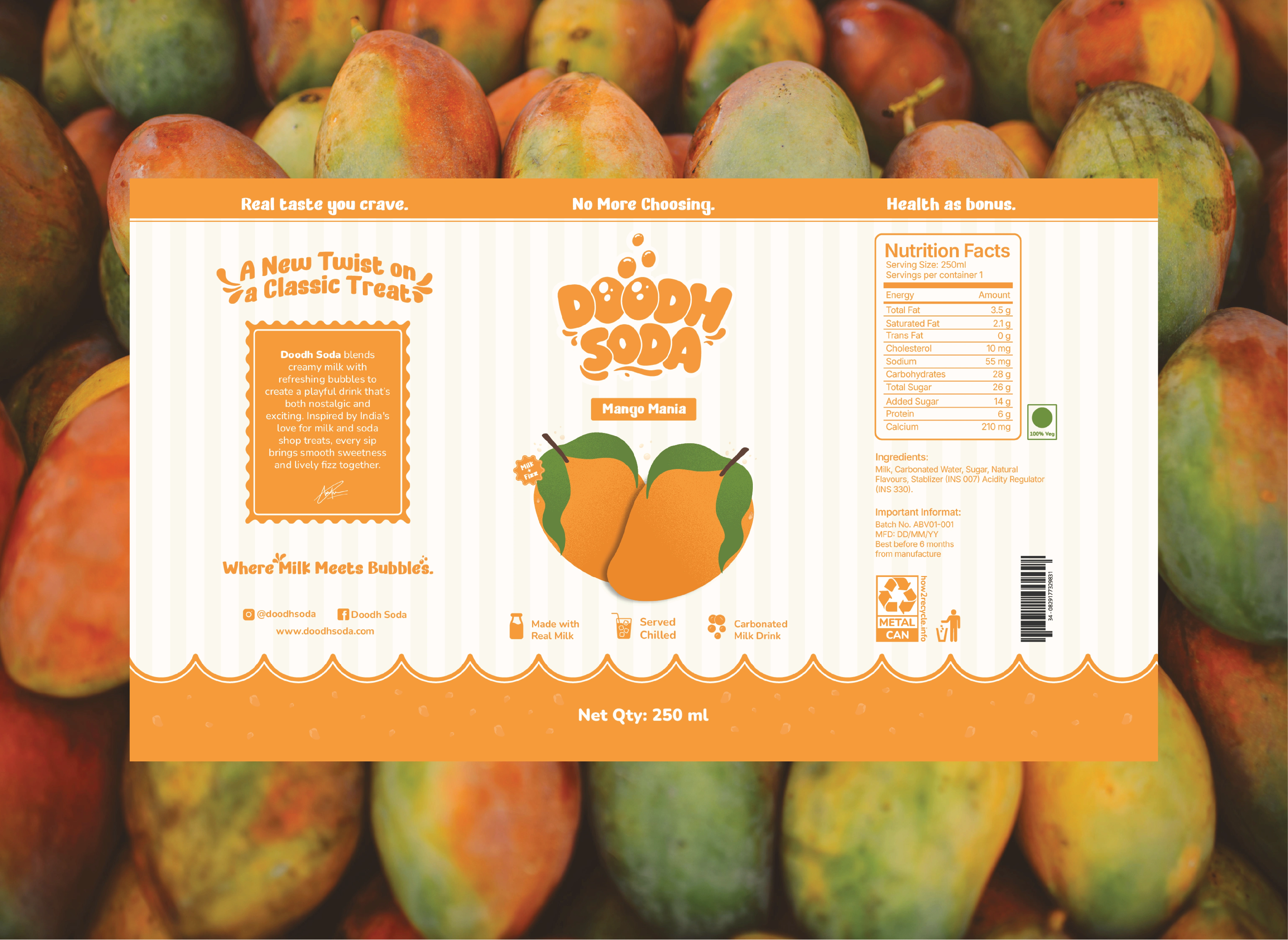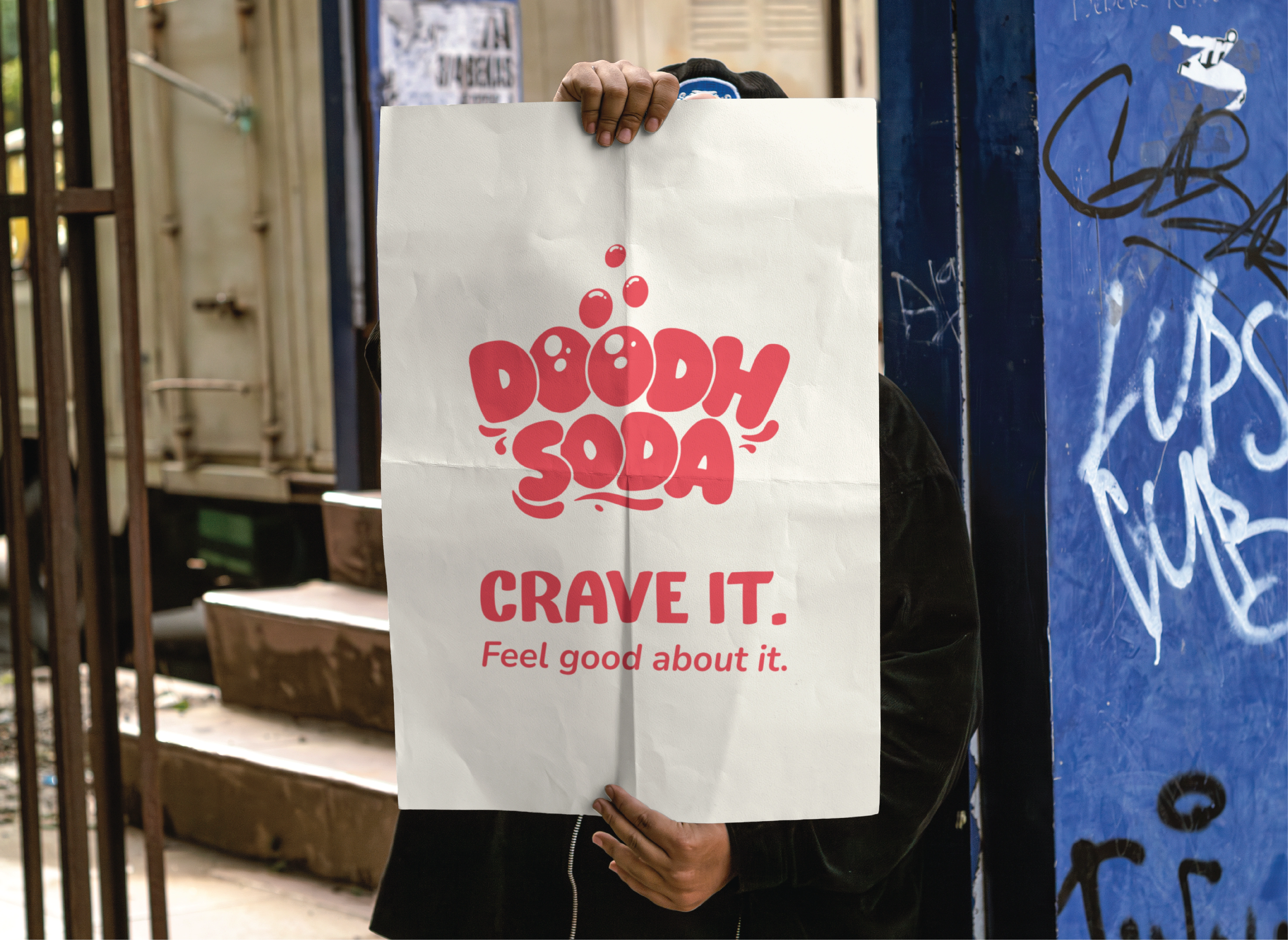A bold, playful can design for Doodh Soda blending milk's purity with fizzy fun. Clean whites, vibrant pops of color, and a retro twist on a desi classic.