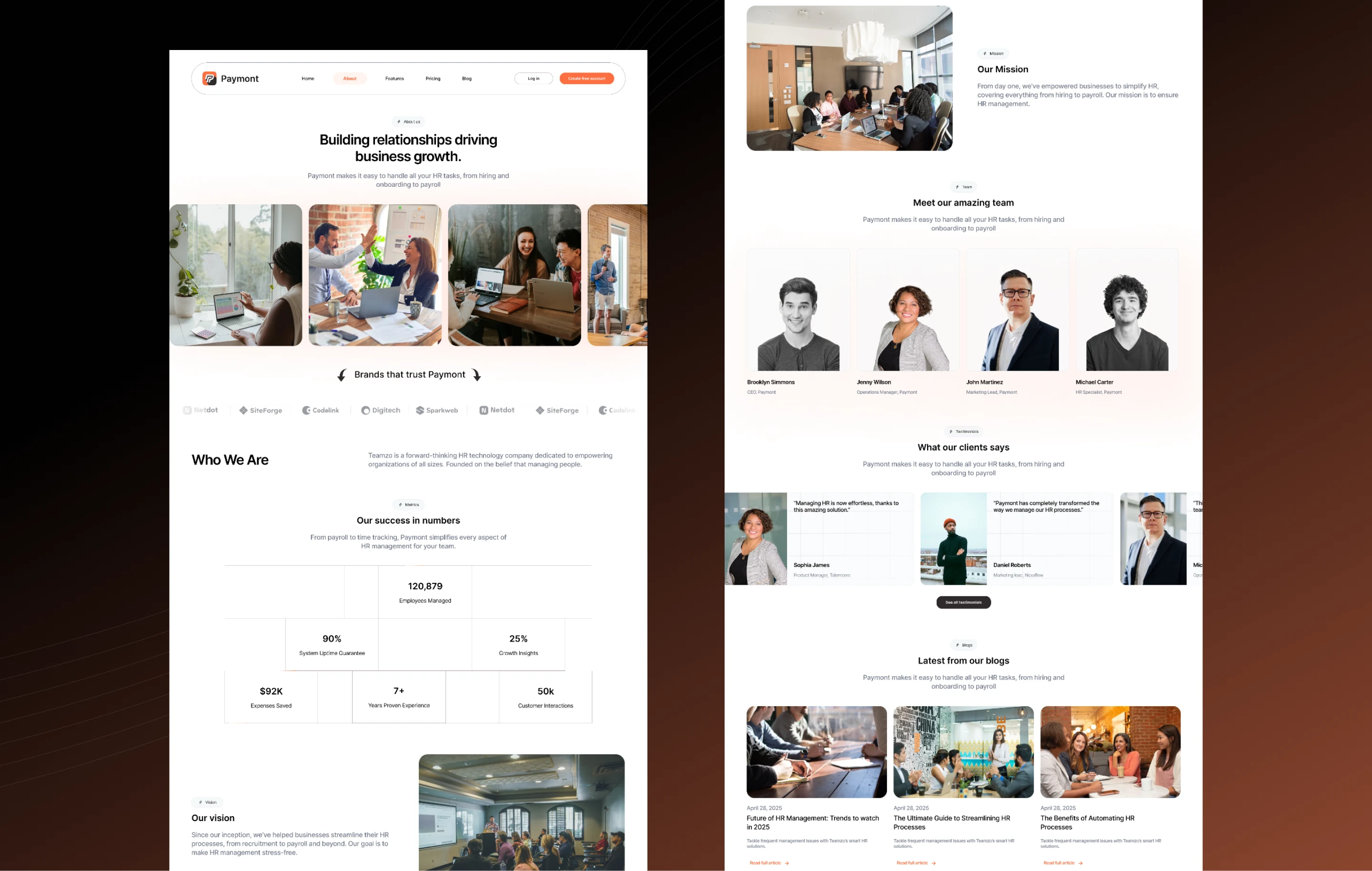About page design, presenting Paymont’s story, vision, and brand personality