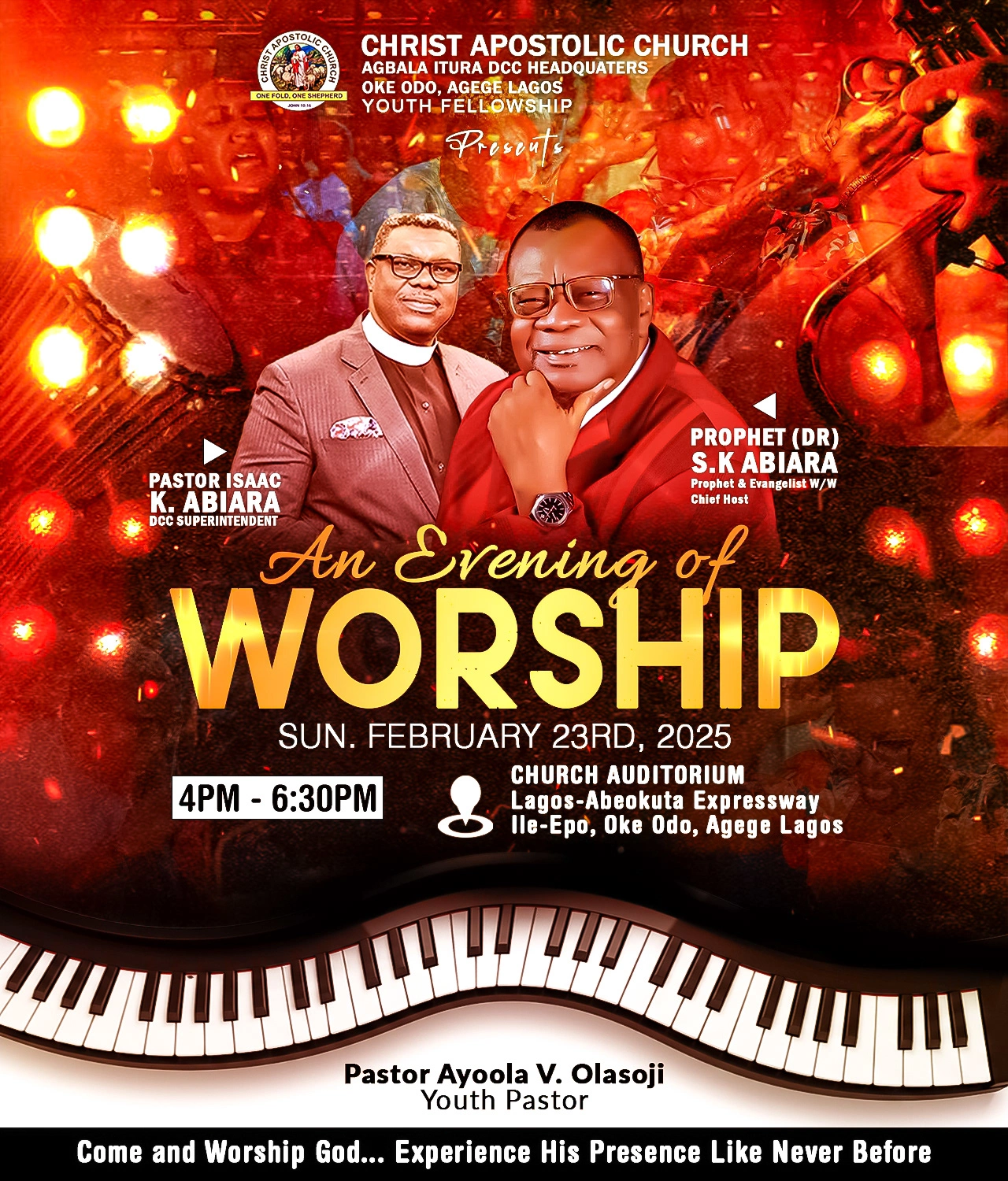 This flyer was designed for a Youth Fellowship worship event at Christ Apostolic Church, Agbala Itura DCC Headquarters.