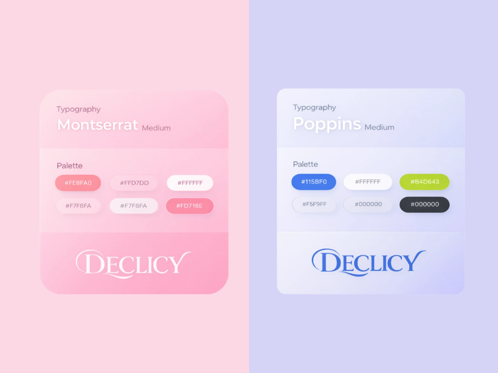 Mobile App: Soft pastel palette, card-based layouts, and friendly typography to create a supportive, motivating experience for female users.