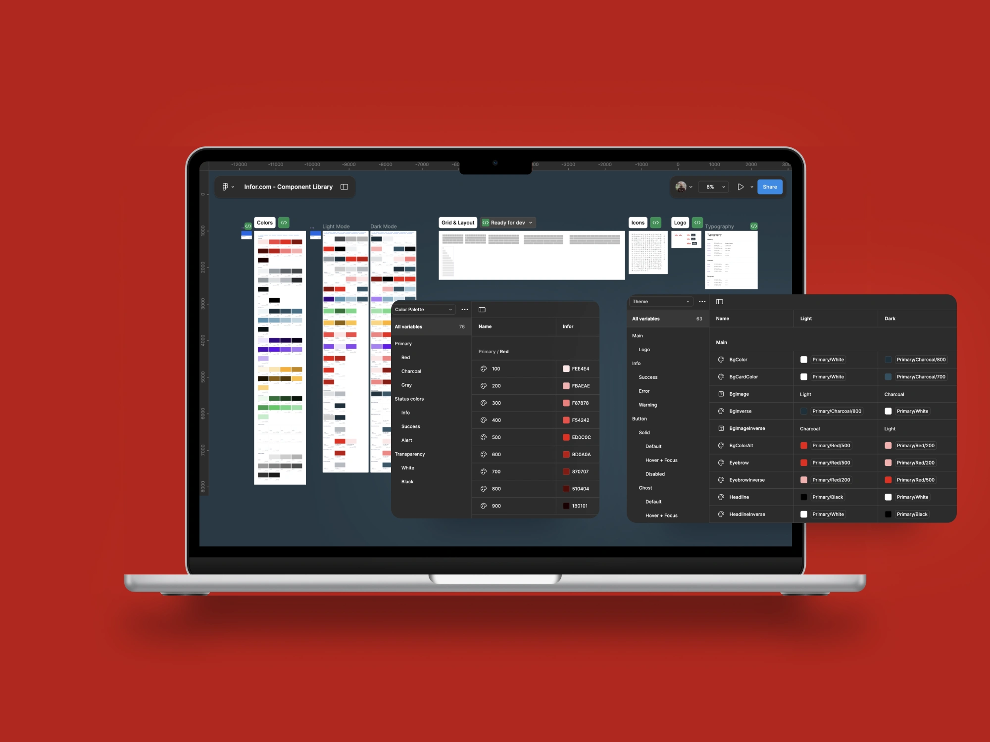 Design System for the corporative website. Dual theme, multi language, 4 device settings,