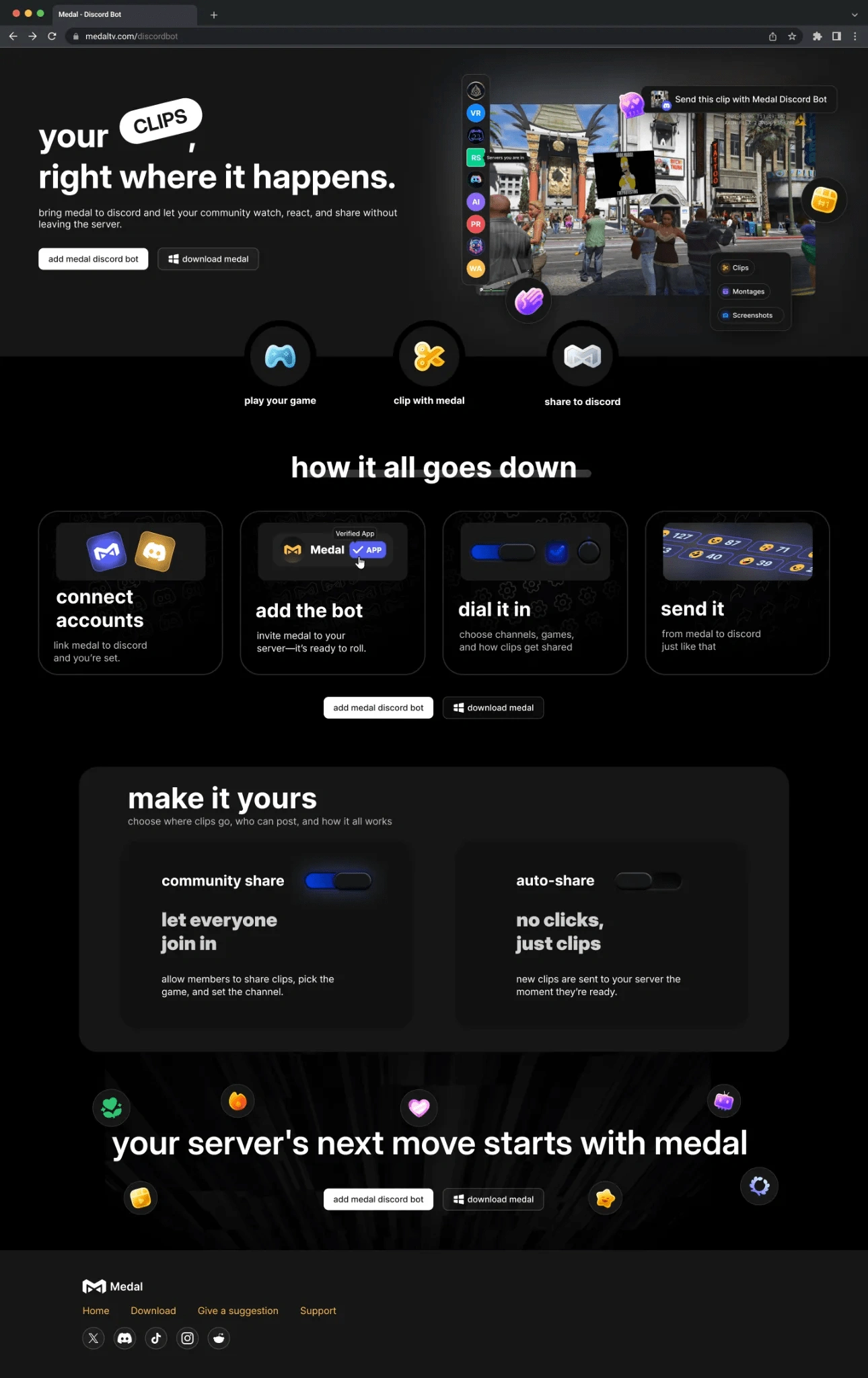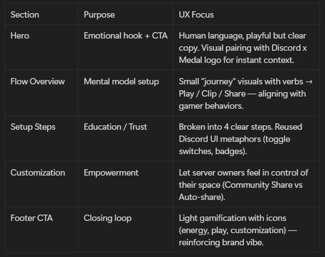 Designed UX for Medal's Discord bot integration, enhancing user onboarding and engagement.