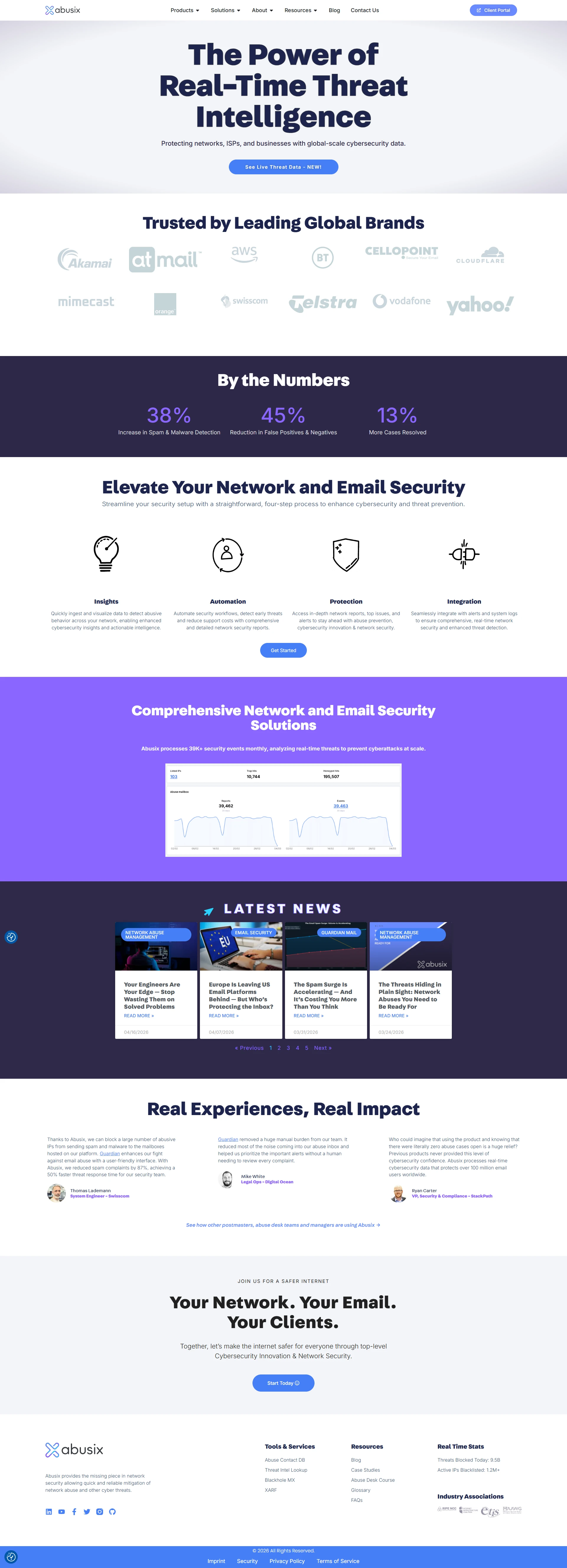 The website focuses on a clean, conversion-driven landing page experience, designed to clearly communicate Abusix’s services and drive user engagement. Here’s a breakdown of the key features: