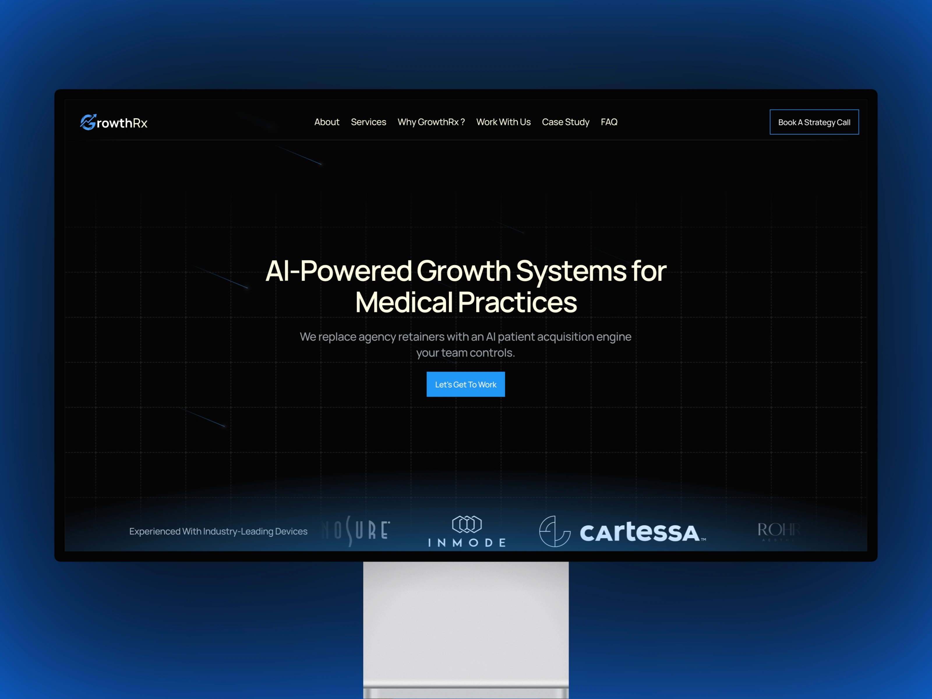 Customized the Photon template for GrowthRx with shimmering hero stars, sticky scroll effects, text color styles, and an embedded client form. Fully responsive.