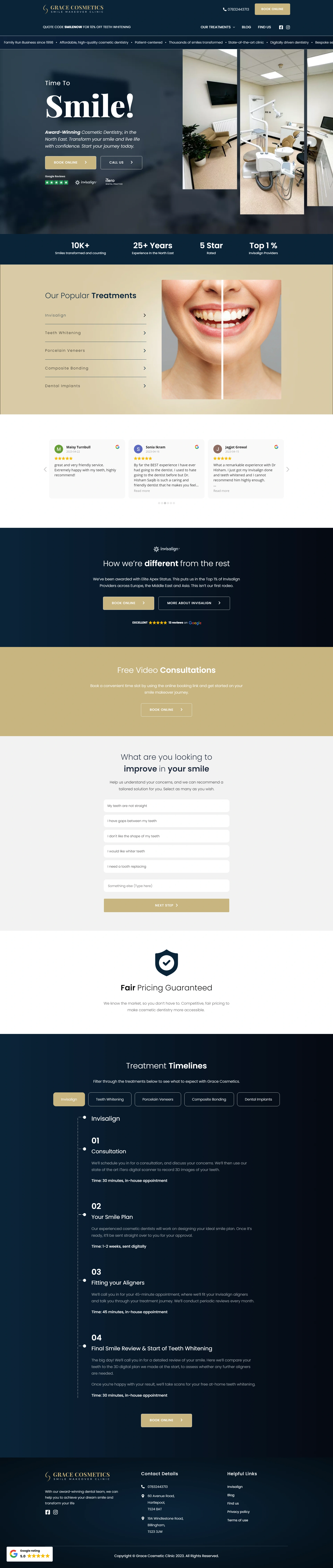 I built a highly interactive and visually polished dental website for Grace Cosmetics using WordPress and Elementor.