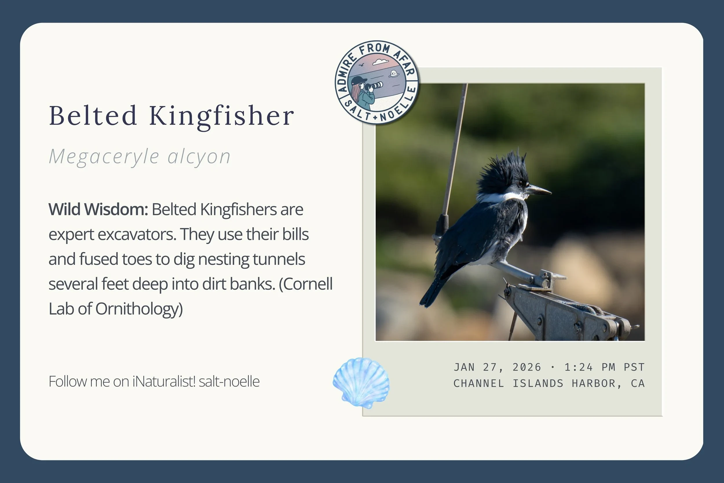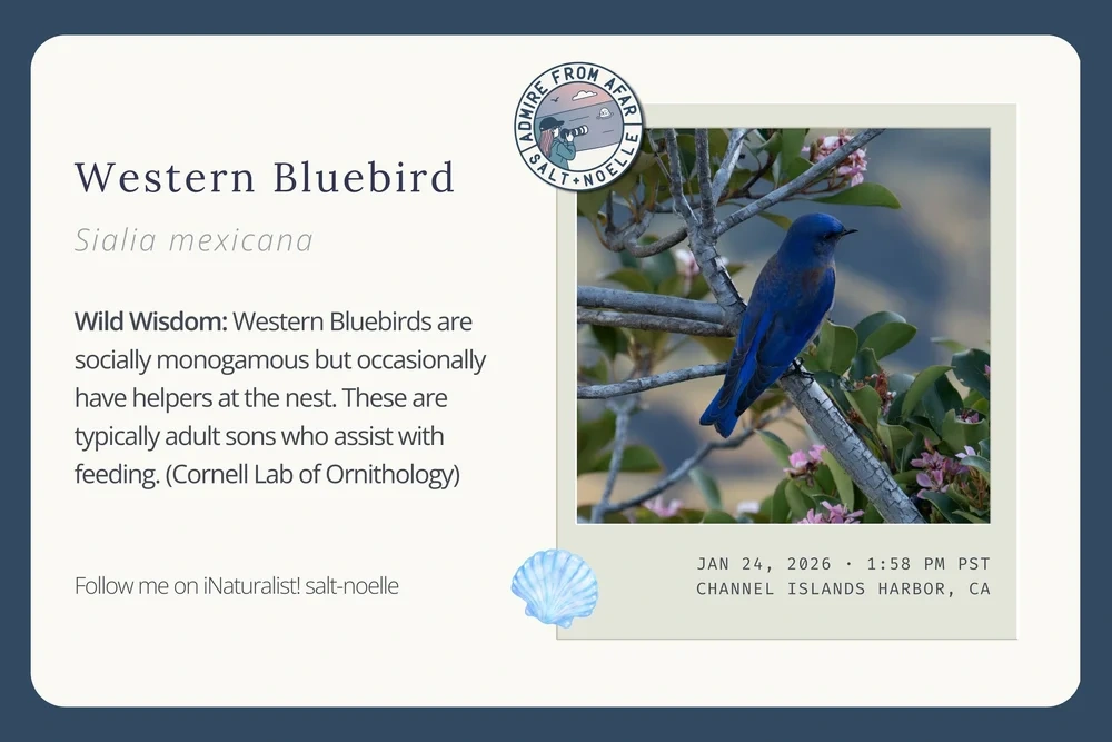 In this collection, you’ll find iNaturalist Observation Cards. Each week, I’ll highlight a few favorite sightings from my iNaturalist logs. These cards are my way of quickly documenting the moments that stood out. I don’t spend much time editing or polishing them, so I can share what I see while it’s still fresh. Every card includes a scientific fact and a link to the full observation. While many sightings happen at the harbor, others come from trails, new coastlines, or wherever curiosity leads. For me, these cards create a visual record of the week’s discoveries; a creative way to look back and see how the story of place and wildlife unfolds over time.