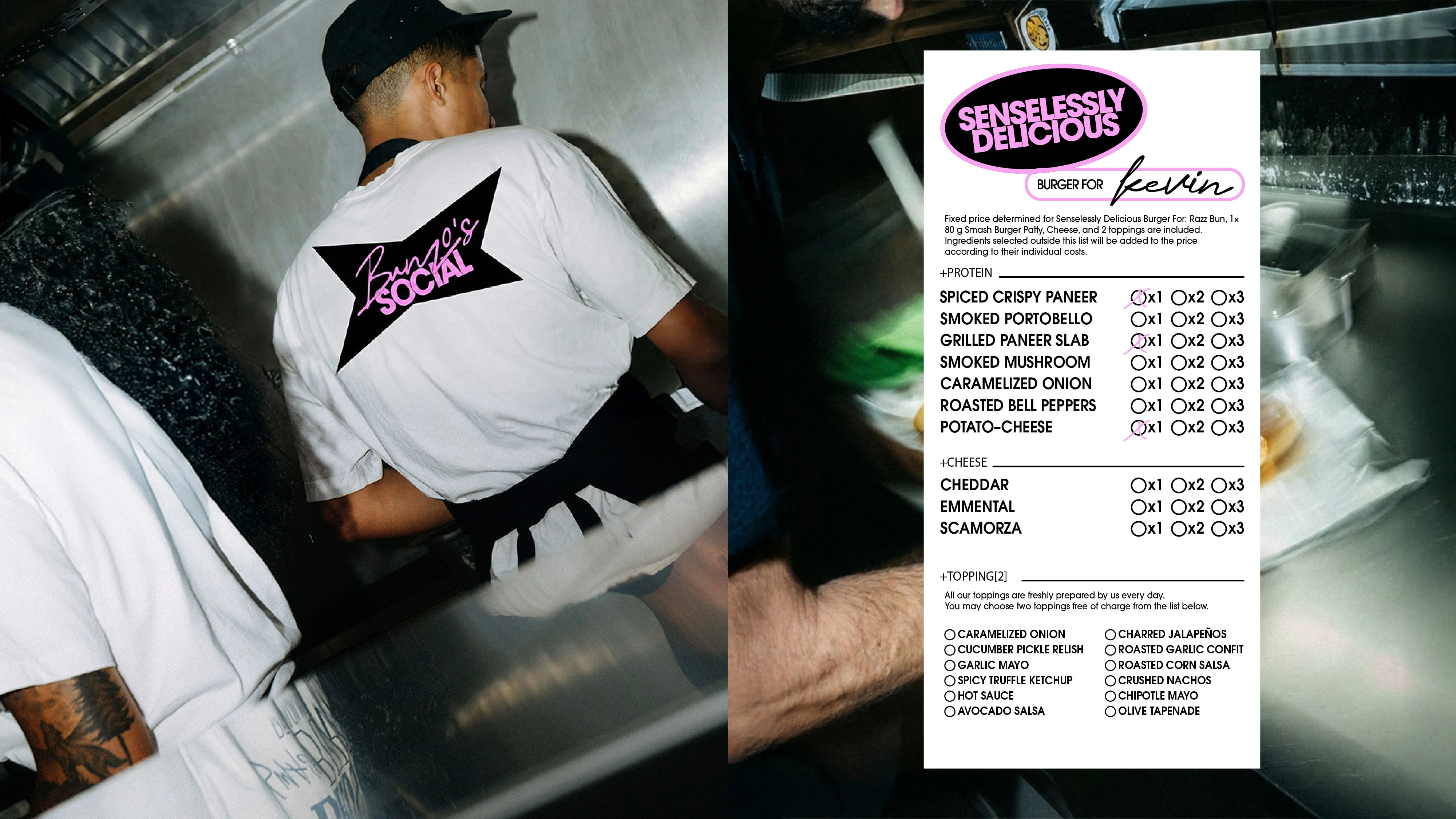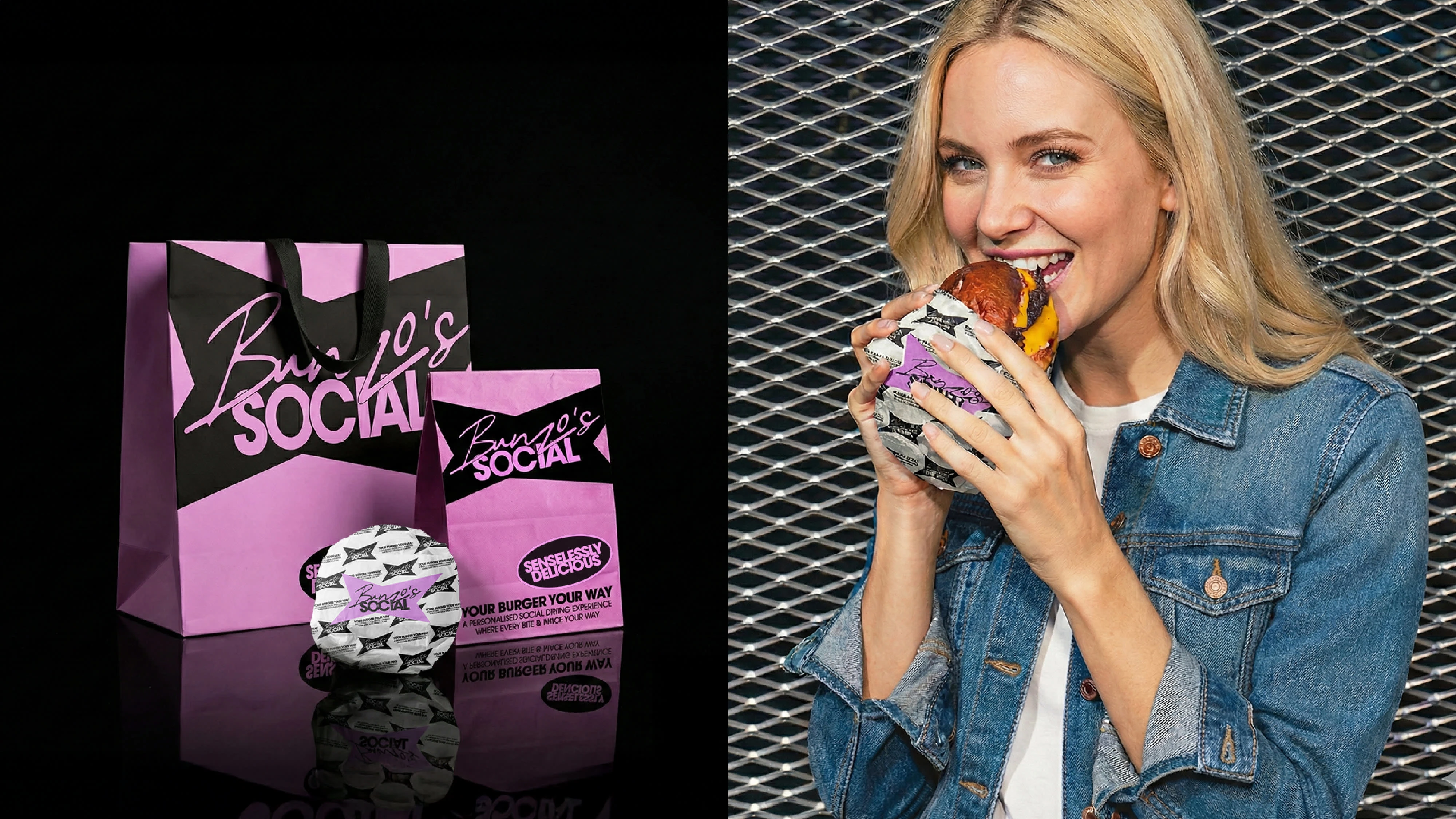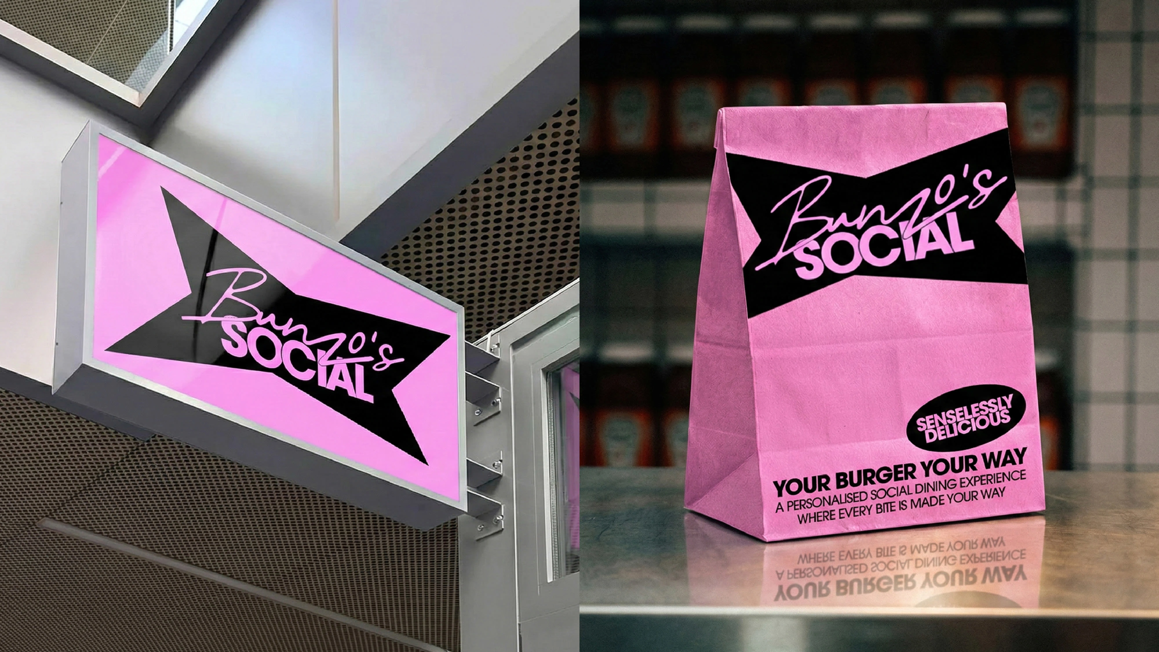 Senselessly delicious, Bunzo's Social is a full brand identity & an irreverent energy that hits every surface from the bag to the apron.