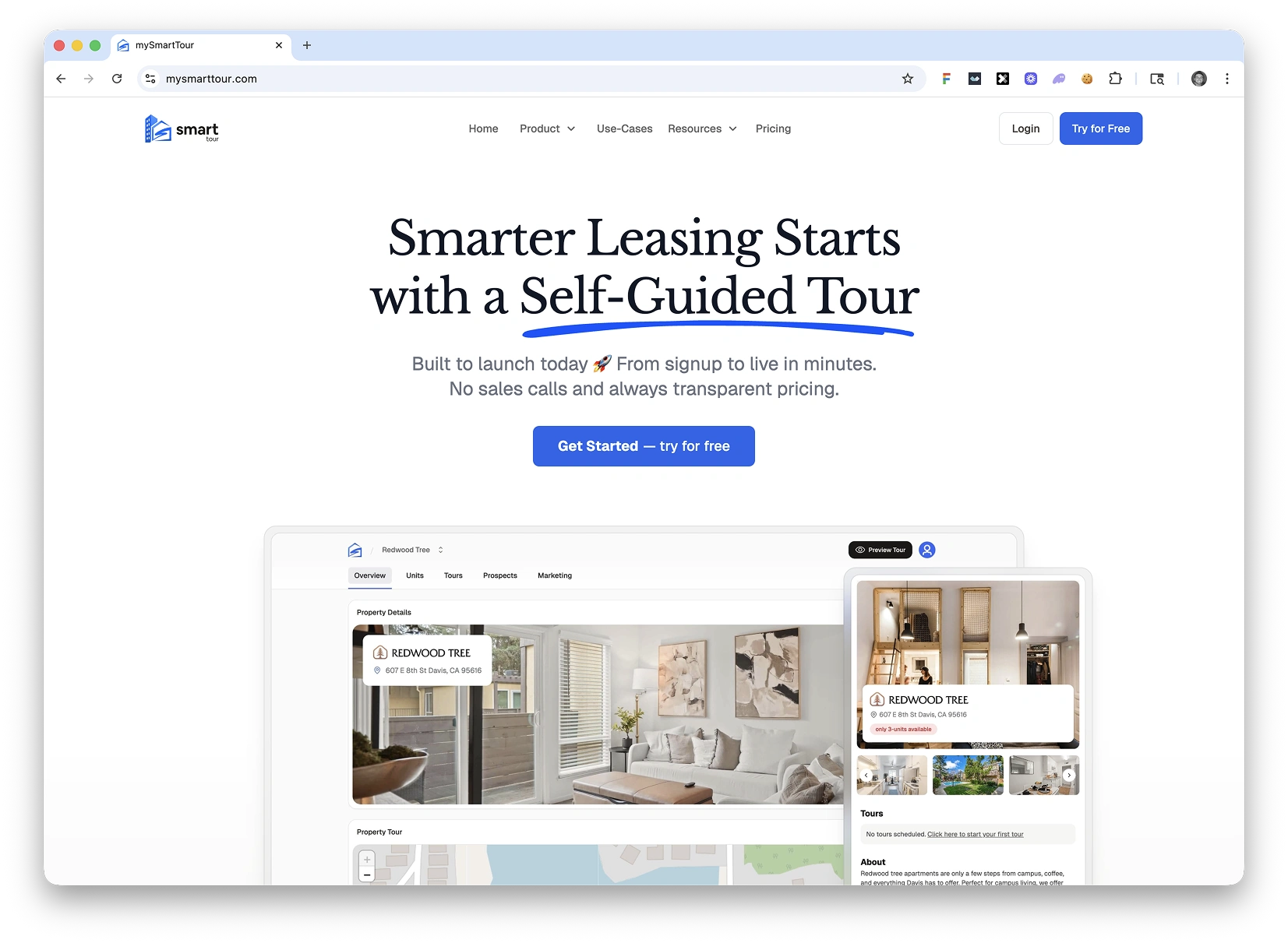 MySmartTour is a project I built for a client. It's a self-guided tour platform. It allows property managers and owners to create self-guided tours of their property.
