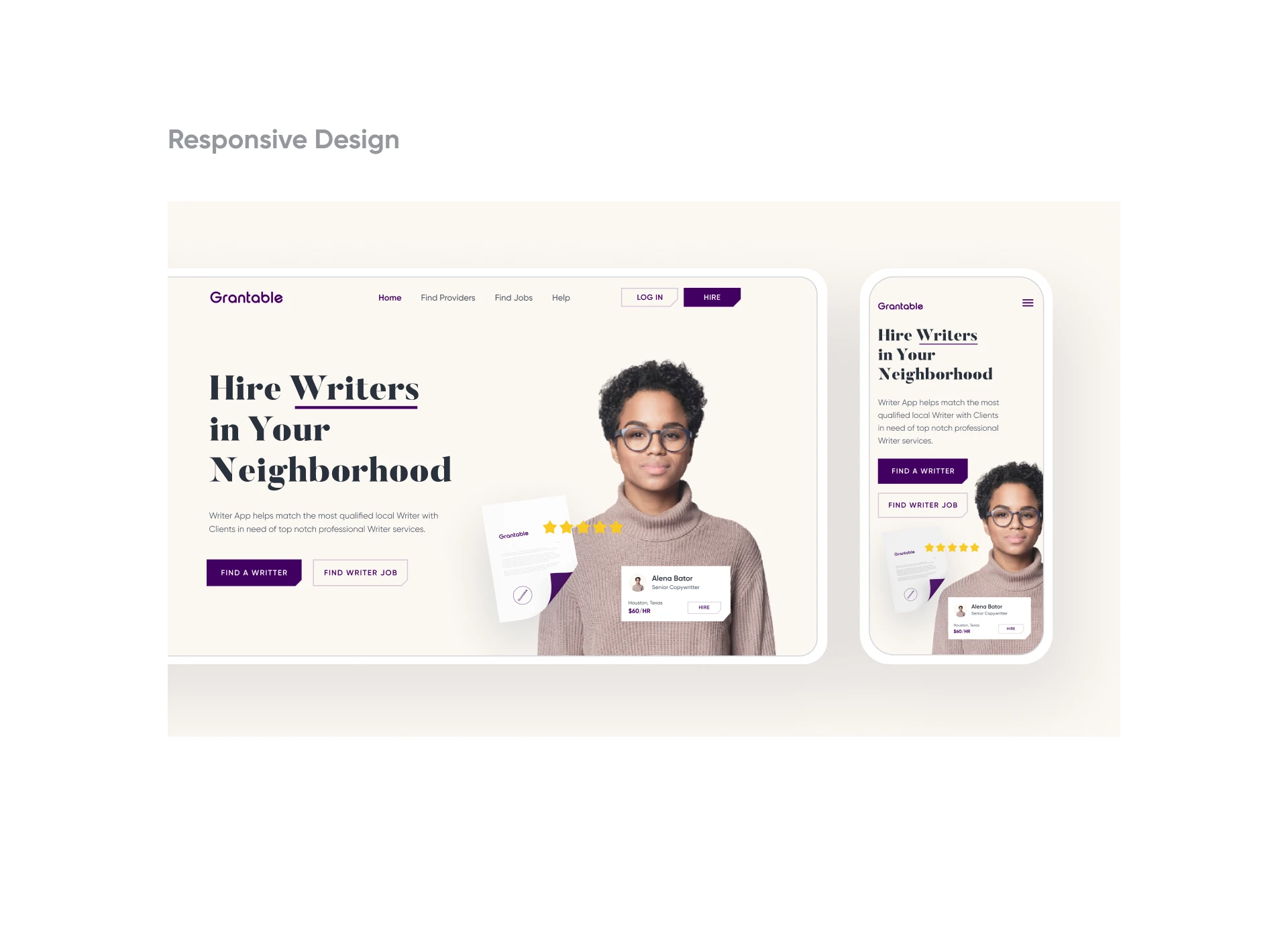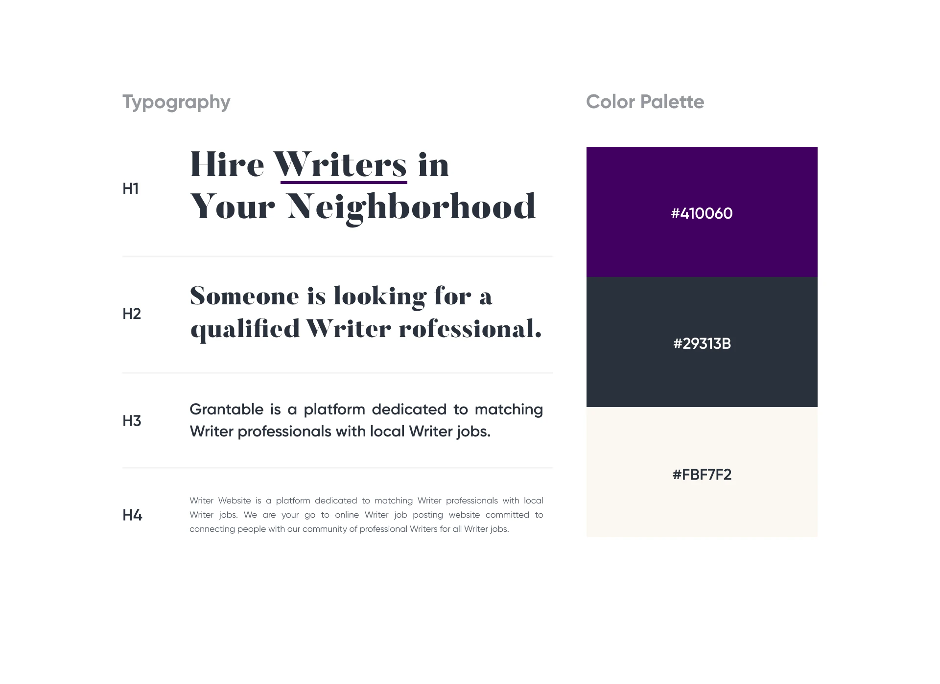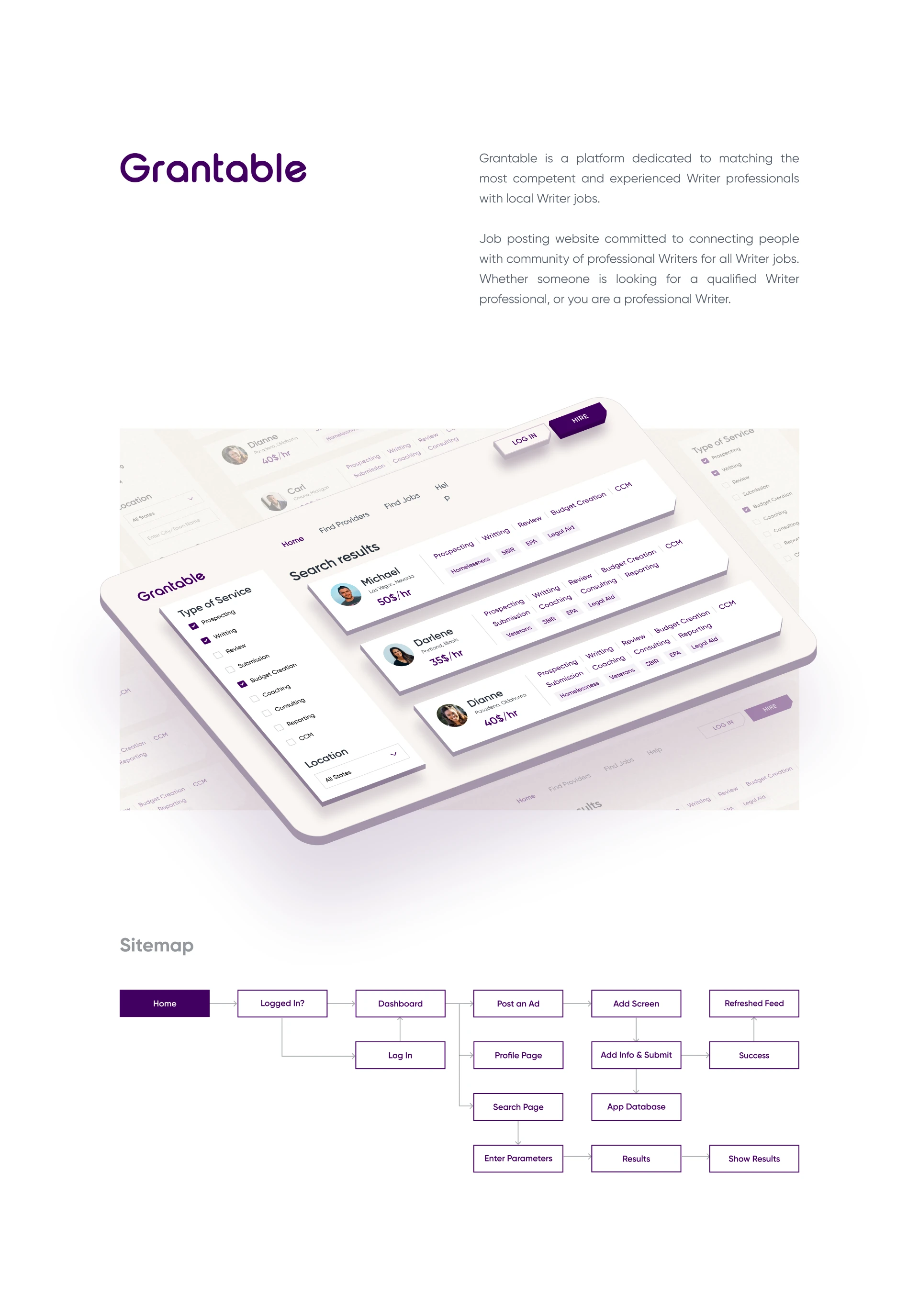 Website design for Grantable, a job posting platform committed to connecting people with community of professional Writers for all Writer jobs.